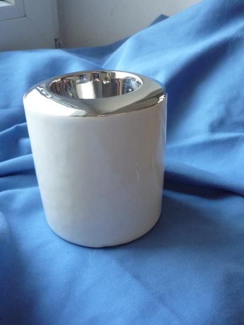 49. Buteleczka ozdobna wys. 15,5 cm w jednym miejscu niewielkie uszkodzenie powłoki (na zdjęciu z lewej strony) cena wyw. 3 zł 50. Świecznik metalowy na tealighty , ecru wys. 8,5 cm, średnica 8 cm cena wyw. 3 zł 51. "Patera" metalowa 34 x 24,5 cm ślady użytkowania (odbarwienia) cena wyw. 5 zł 52. Piersiówka stał nierdzewna NOWA cena wyw. 10 zł a/ b/ 53. Półmiski NRD ze złotym paseczkiem a/ większy 28 cm cena wyw. 7 zł Kupiła: Grażka123 KT 10,50 zł b/ 23 cm cena wyw. 5 zł (jeden sprzedany wcześniej) Kupiła: Grażka123 KT 7,50 zł