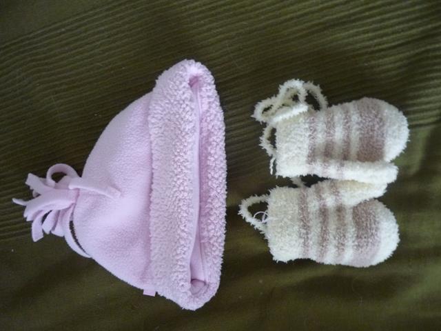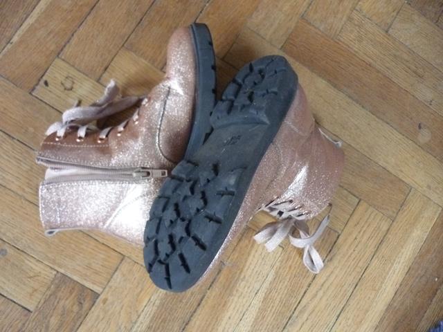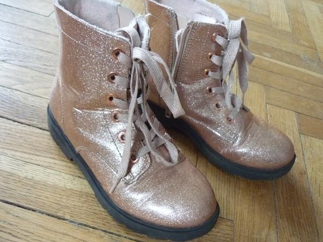 56. Buciki z połyskiem H&M wyłożone jakby flanelką, język grubszy rozm. 31 cena wyw. 8 zł 57. a/ różowa ciepłą czapeczka 3-6 mies. 44 cm; cena wyw. 3 zł b/ rękawiczki, cena wyw. 3 zł 58. Poszewka Disney ok. 35 x 36 cm poliester, na suwak, cena wyw. 3 zł 59. Poszewka na dziecięcą kołderkę lub dużą poduszkę ok. 68 x 80 cm cena wyw. 5 zł