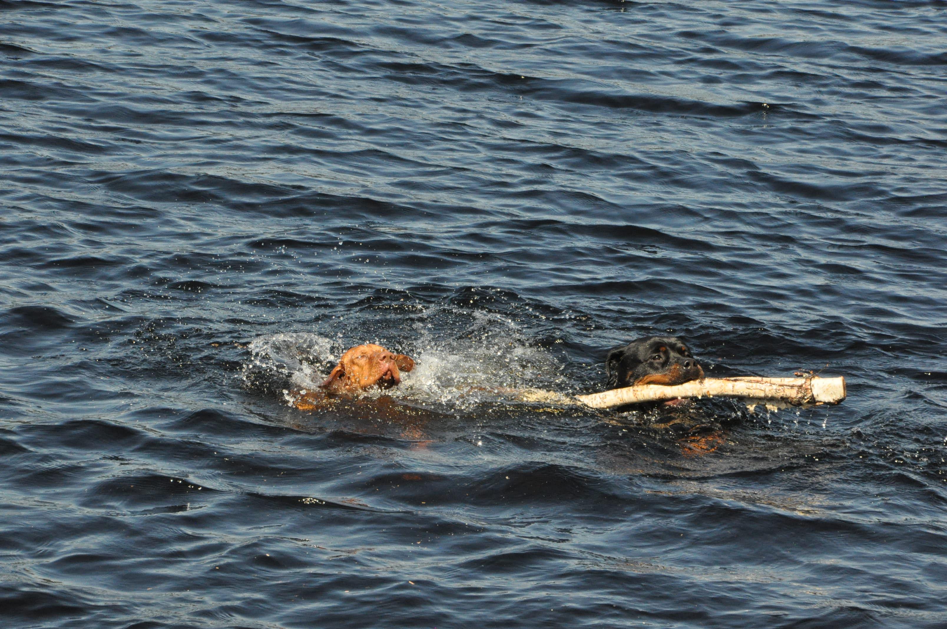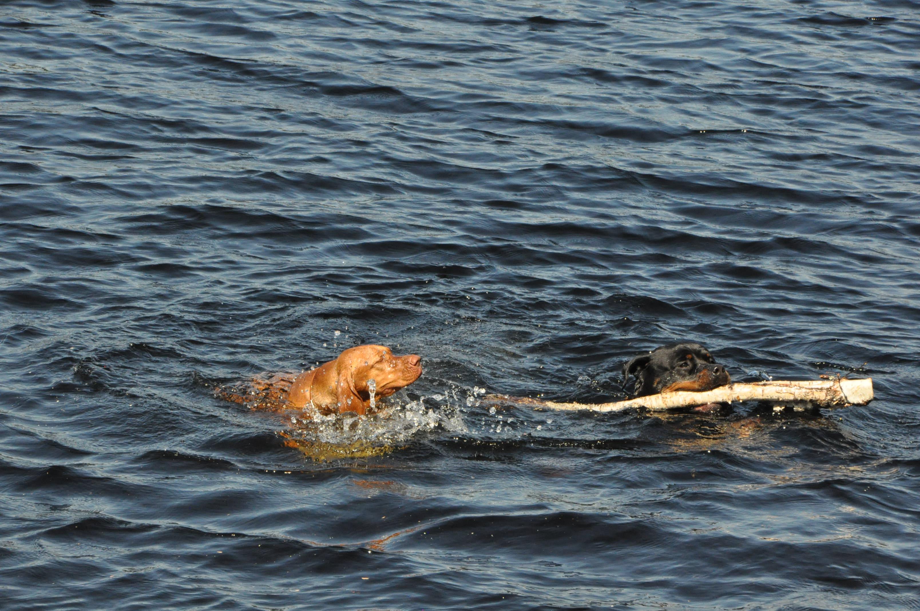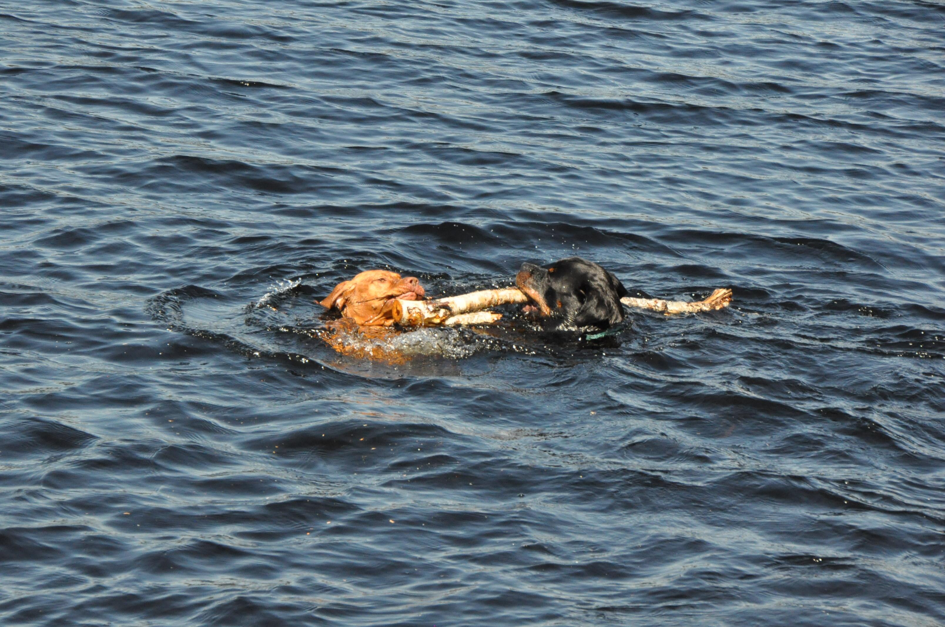 szybka akcja z patykiem w wodzie.... Tu udało się Hiro by jego było na górze... Java niby szybciej do niego dopłynęła ale jak dopadł go Hiro to Javka poszła pod wodę i straciła trochę rezonu. Chociaż na chwilę i potem Hiro już nie pozwolił sobie odebrać kija! :) wszystko oczywiście trwało kilkanaście sekund :) -