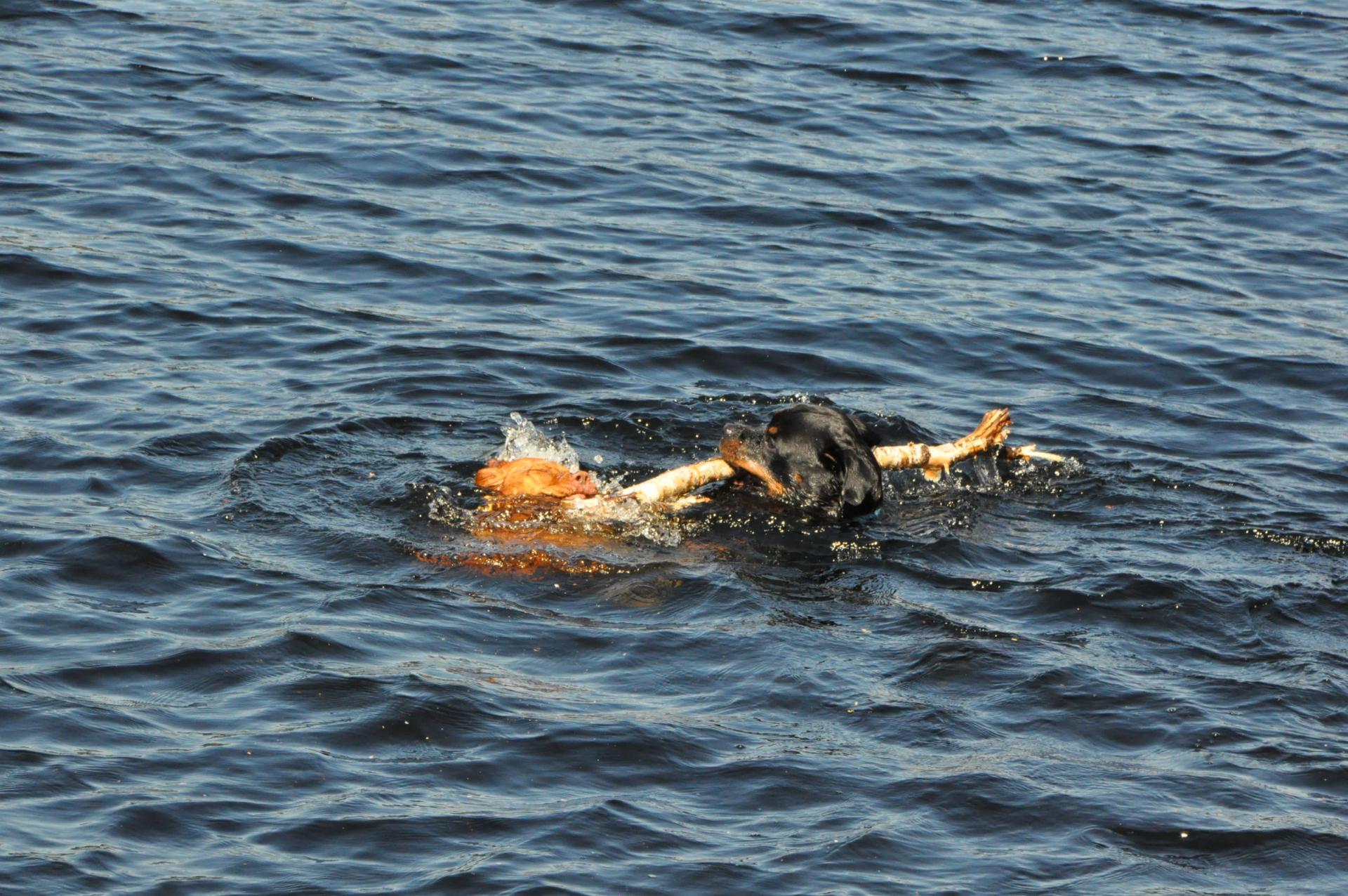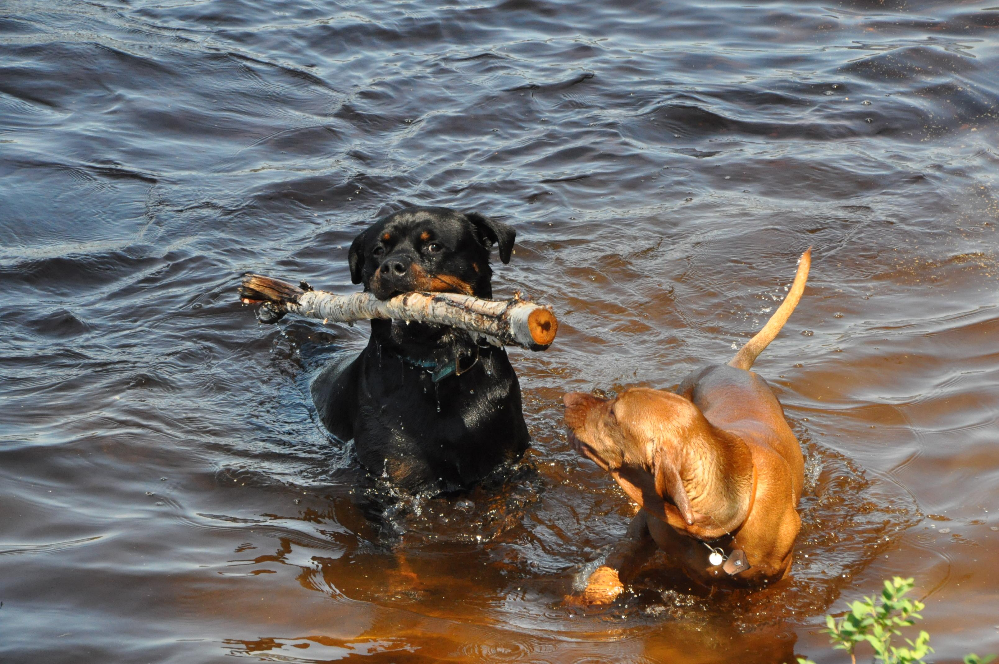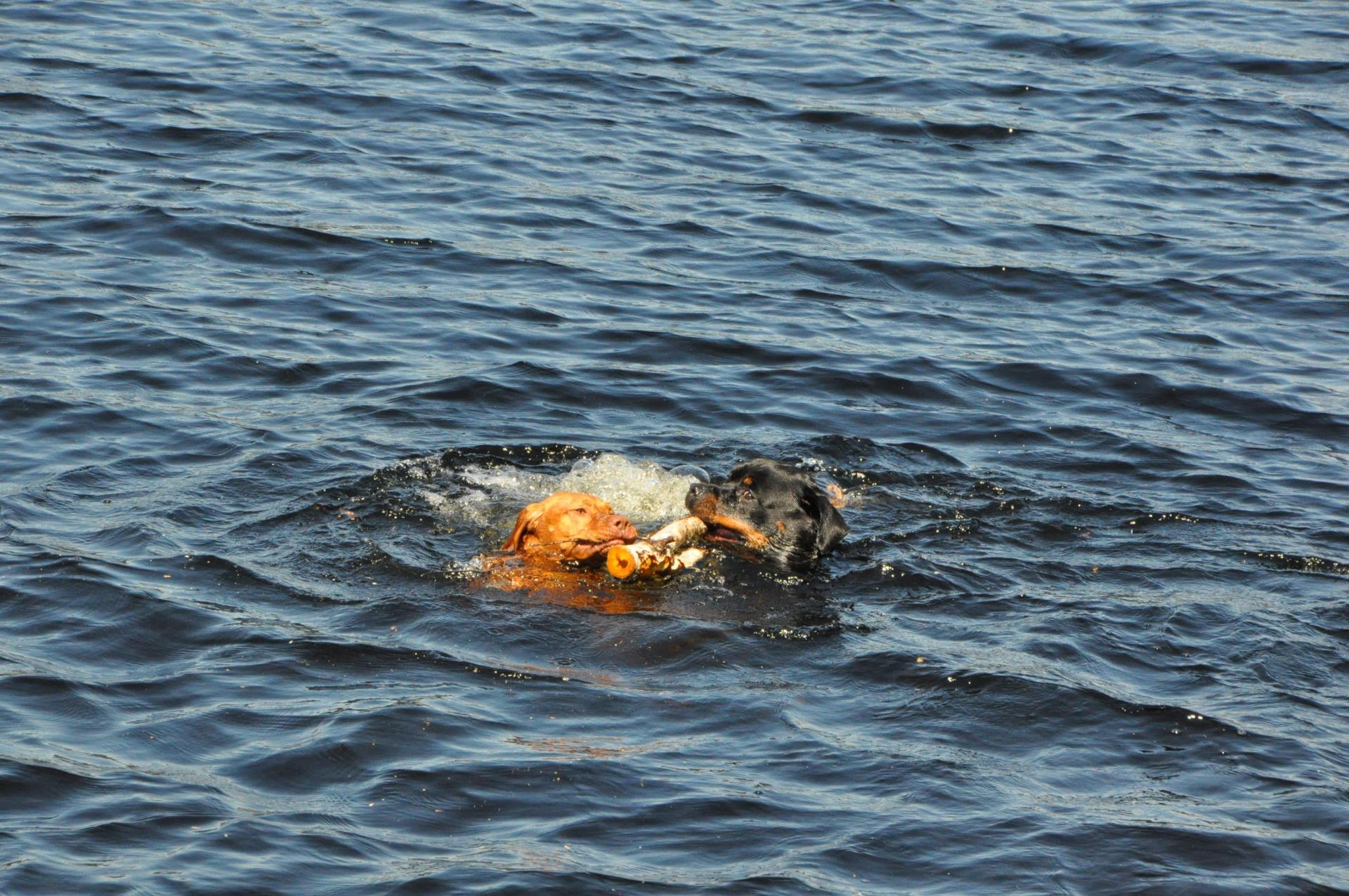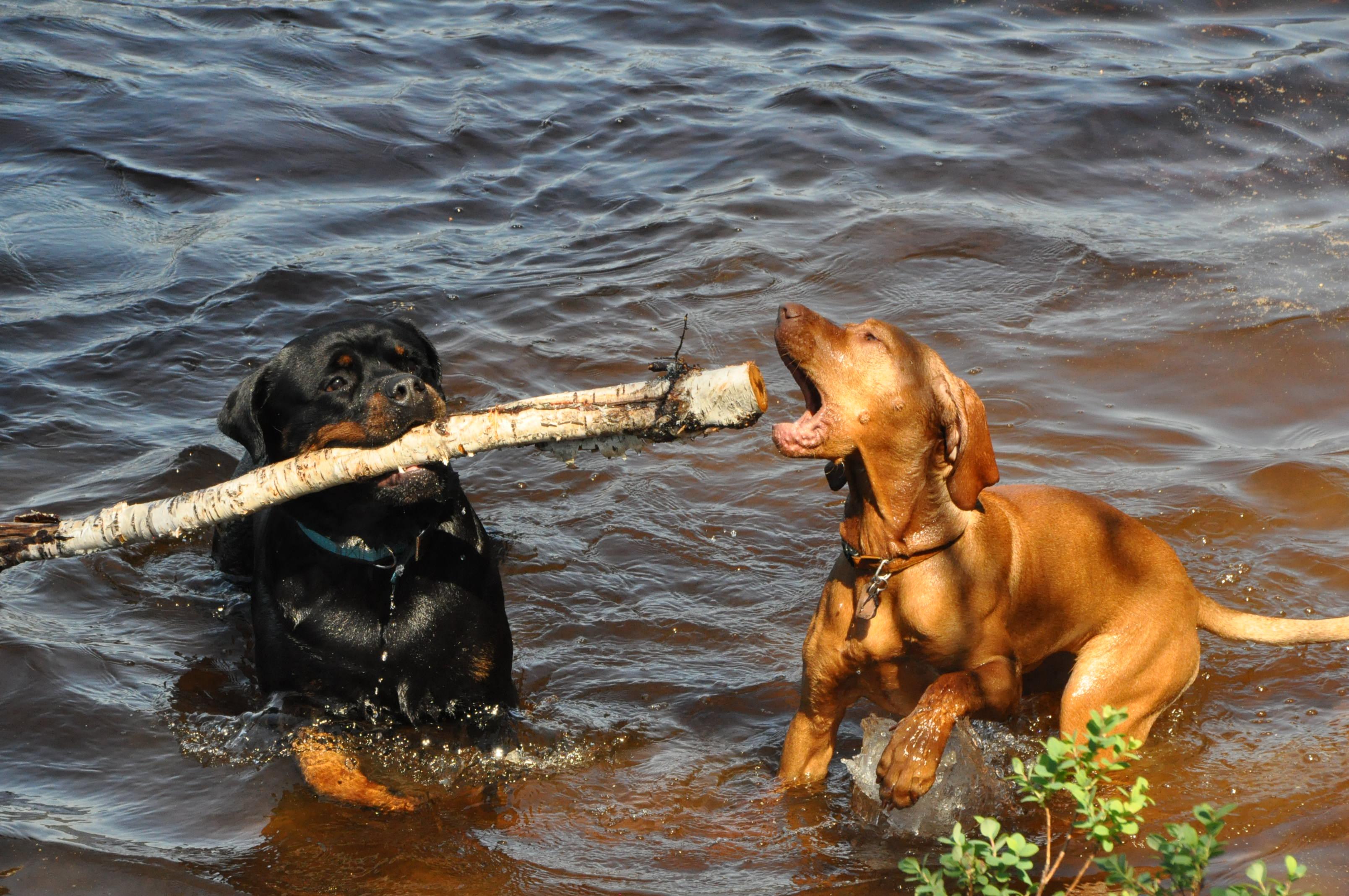 szybka akcja z patykiem w wodzie.... Tu udało się Hiro by jego było na górze... Java niby szybciej do niego dopłynęła ale jak dopadł go Hiro to Javka poszła pod wodę i straciła trochę rezonu. Chociaż na chwilę i potem Hiro już nie pozwolił sobie odebrać kija! :) wszystko oczywiście trwało kilkanaście sekund :) -