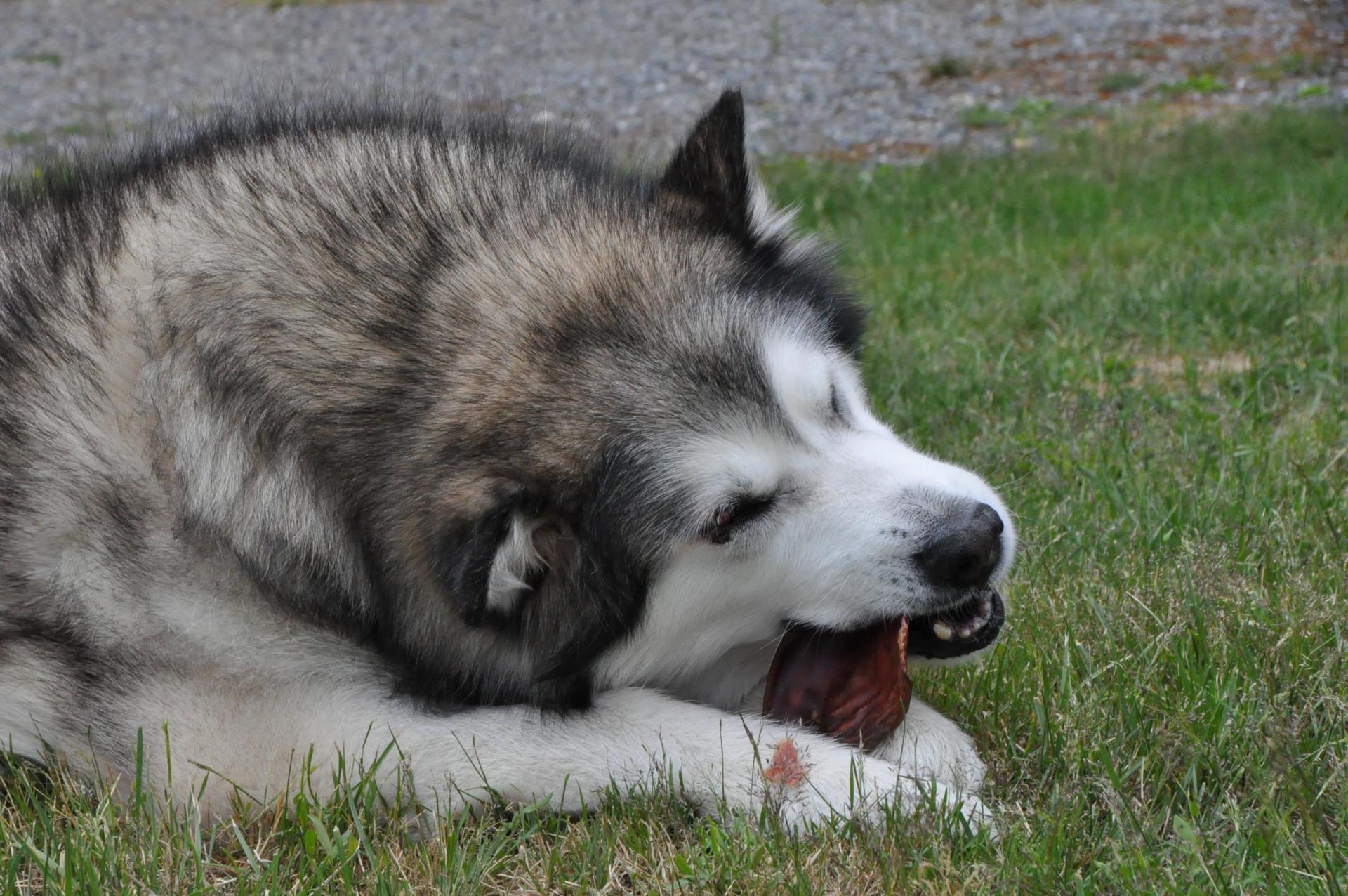 wczoraj do domu mi wleciała sikorka.... nawet nie wiem kiedy bo wyszłam z psami na spacer poranny i zostawiłam drzwi otwarte na oścież... wracamy a tu po salonie lata sikorka... na szczęście nie zdążyła sobie zrobić krzywdy.... była bardzo opanowana :) Po kilku chwilach od otworzenia drzwi tarasowych wyleciała na dwór i tylem ją widzieli. Hiro stał nieruchomo i obserwował zachwycony, a Masza jak to Masza - nawet gościa nie zauważyła.... No i kilka zdjęć psiaków jak akurat zajadały uszka wędzone Maszka -