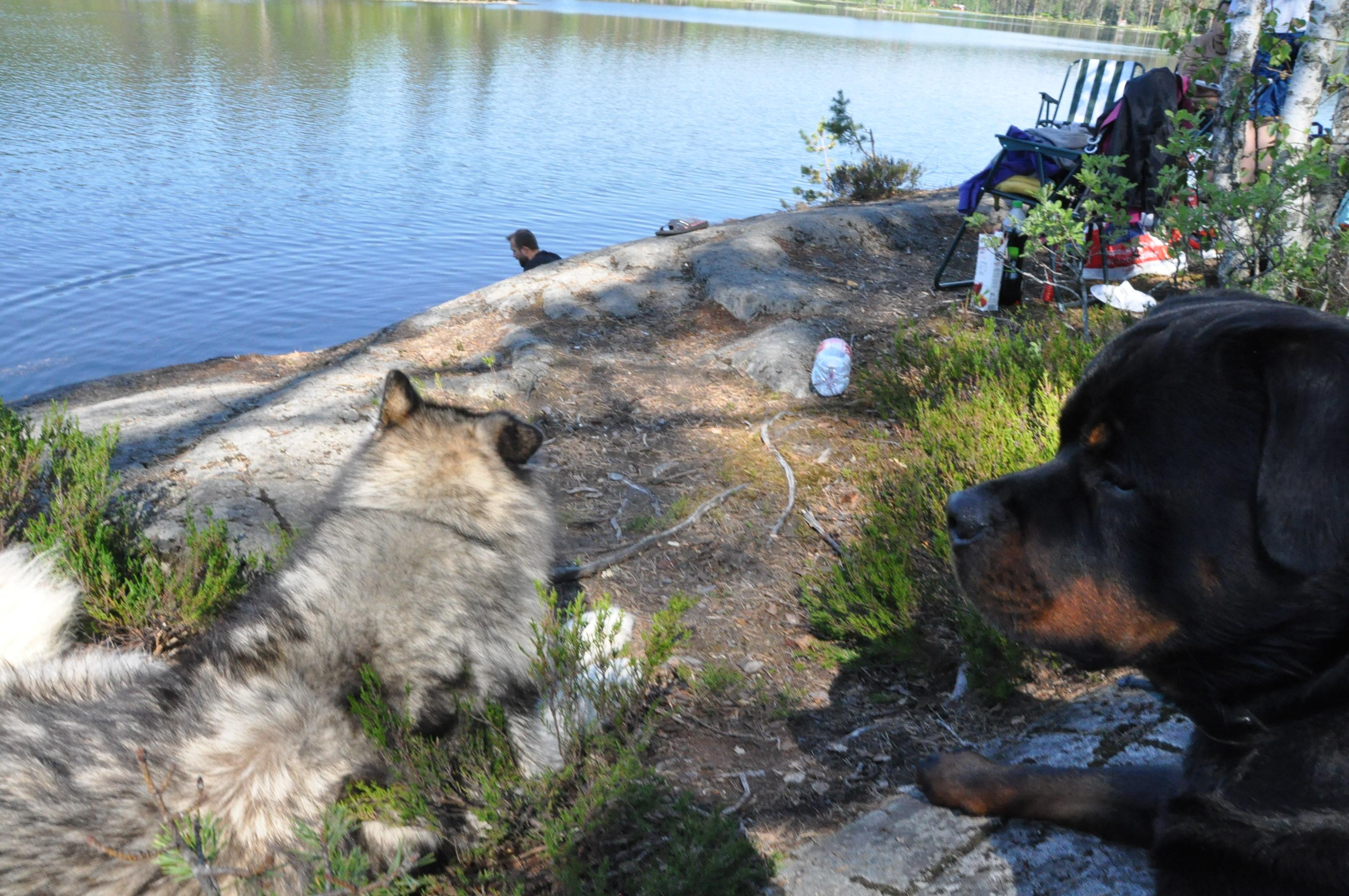 Jakoś mi to weszło w krew ... żeby nie być gołosłowną.... ciąg dalszy zdjęć z biwaku. Tym razem więcej Maszki bo aktywna była.... bo poranek i śniadanie.... Hiro troche się bawił z Javą, ... oczywiście za nią nie miał szans nadążyć... on pół obrotu ona 10.... była tak szybka, że wszystko uchodziło jej na sucho... gryzienie, skakanie, przebieganie pod jego brzuchem... zanim on sie połapał o co chodzi to ona juz była 20 metrow dalej i szykowała sie do kolejnego ataku... nie miał szans... finalnie wyglądało to tak, że on stał a ta go napierdzielała i biegała w koło niego ciagle do niego doskakując i coś mu robiąc.... a że on generalnie raczej się do niej zalecał, więc zanim się połapał, że ona z czymś przegieła to była zbyt daleko bo zaoponować :D tylko jak było żarcie to już Javka nie była taka fajna i potrafił na nią ryknąć basowym warkiem, że młoda odskakiwała z przestrachem w oczach. Oczywiście Masza cały czas traktowała młodą mocno z góry i raz młoda ją zbagatelizowała i dostała od Maszy zębami po karku... potem juz nie próbowała bawić się Maszą... :) wszak Masza nie służy do zabawy... co innego Hiro :D