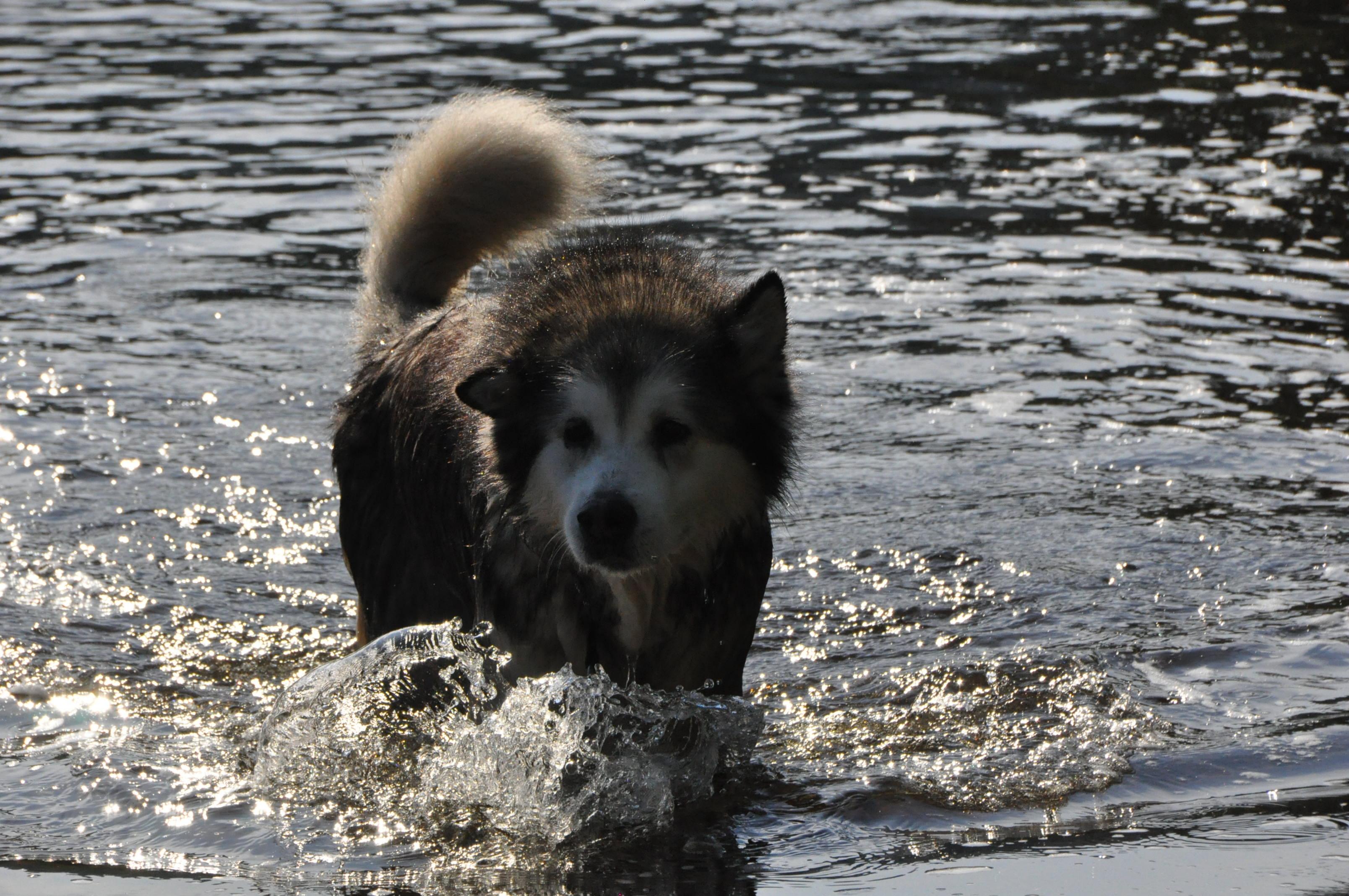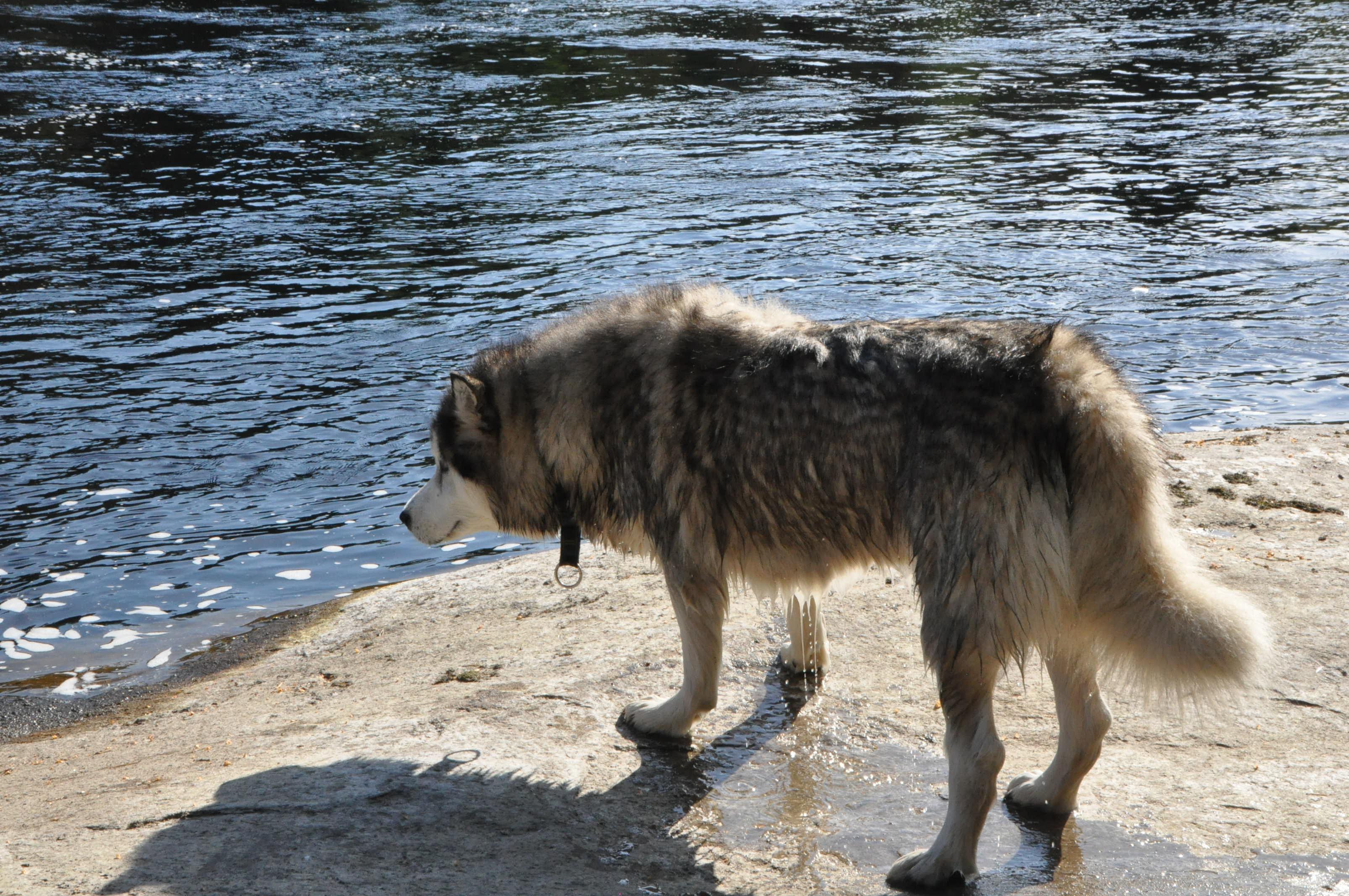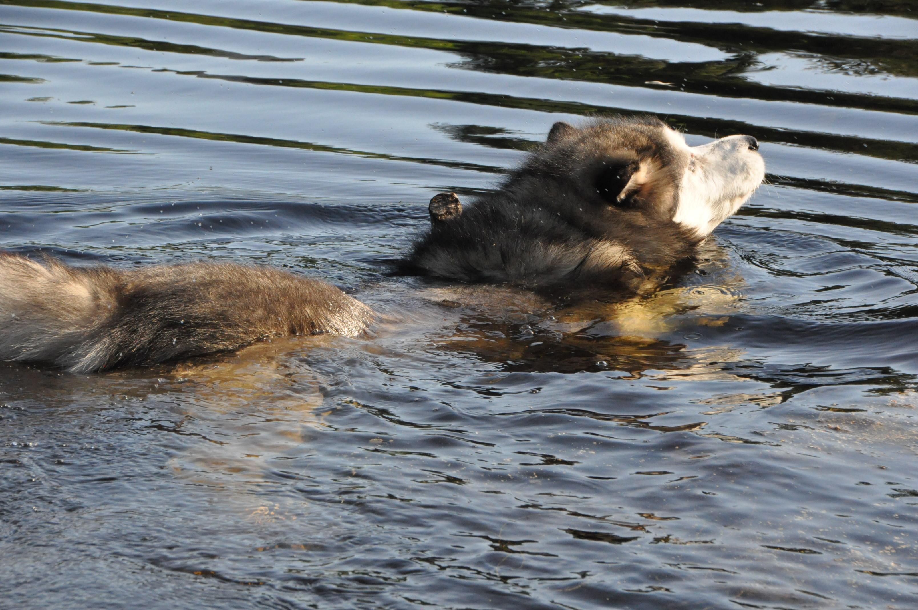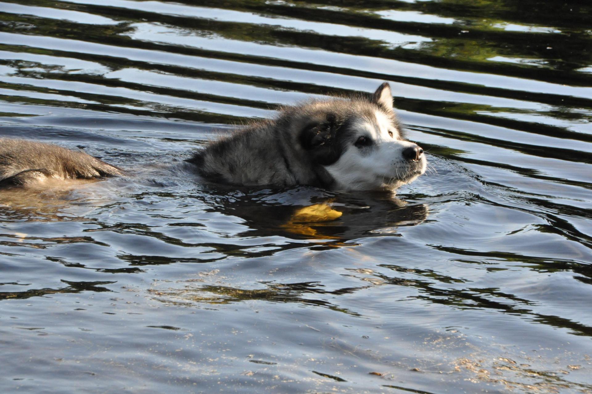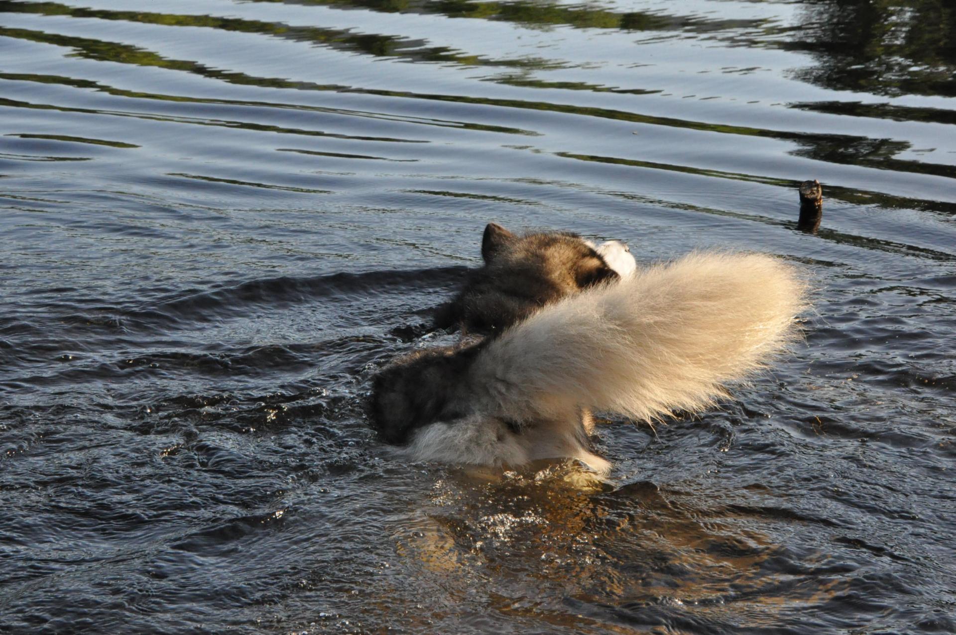 Masza wodę lubi, nawet bardzo.... za bardzo.. np wczoraj odwinęła numer taki, że pod naszą nieuwagę sama przeszła przez drogę i poszła się zamoczyć do jeziora.. Bartek wychodził z domu a mokruteńka Masza go w drzwiach minęła... wtf?? przecież przed chwilą była sucha.... dobrze, że nie jechał żaden samochód.... teraz jak zostaje sama na zewnątrz to jest przypinana do stake-outa. -