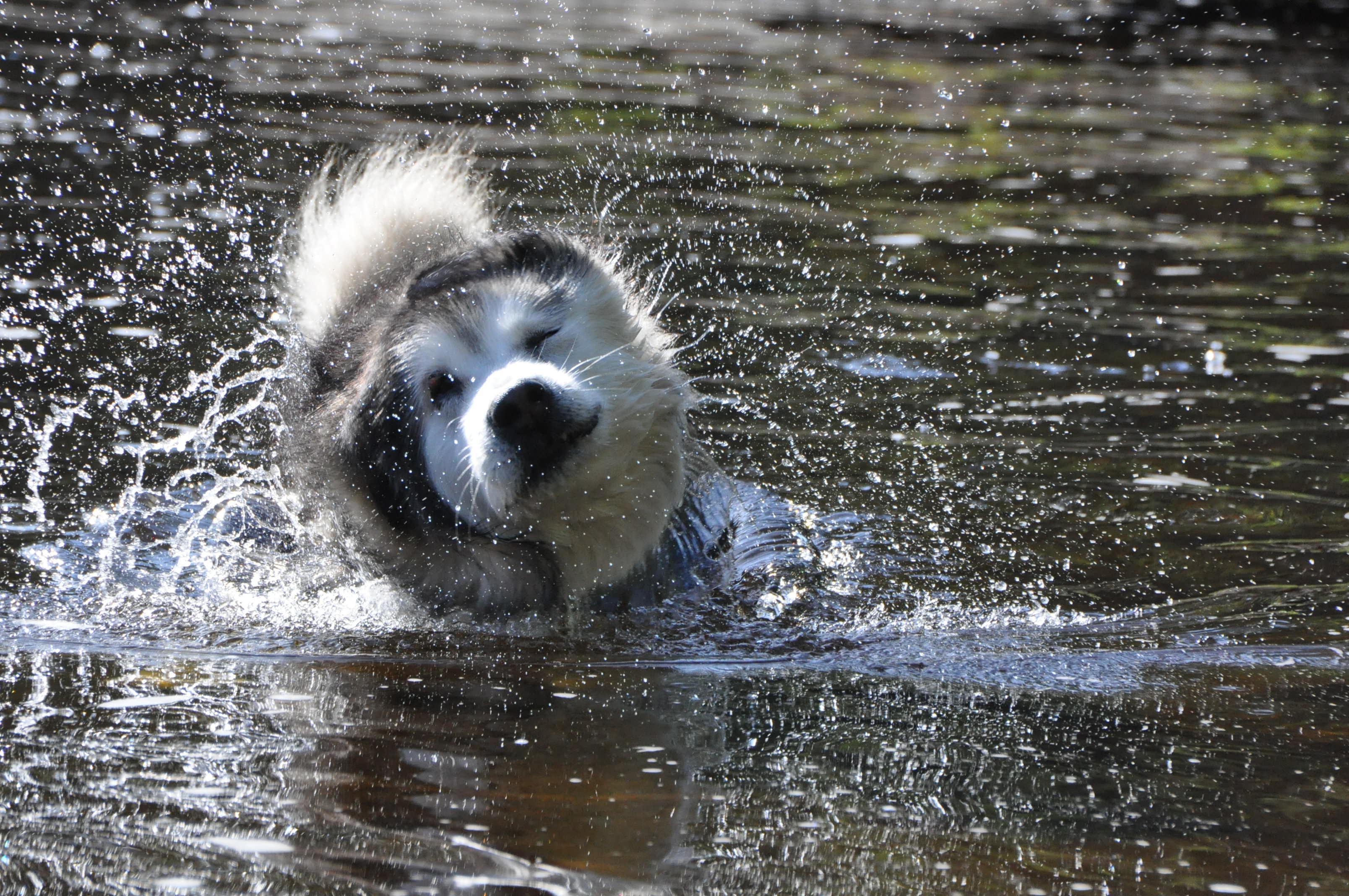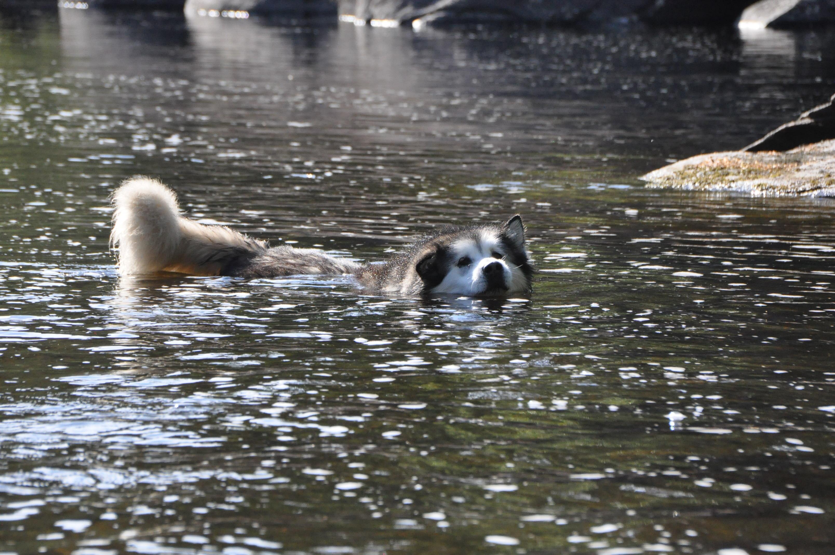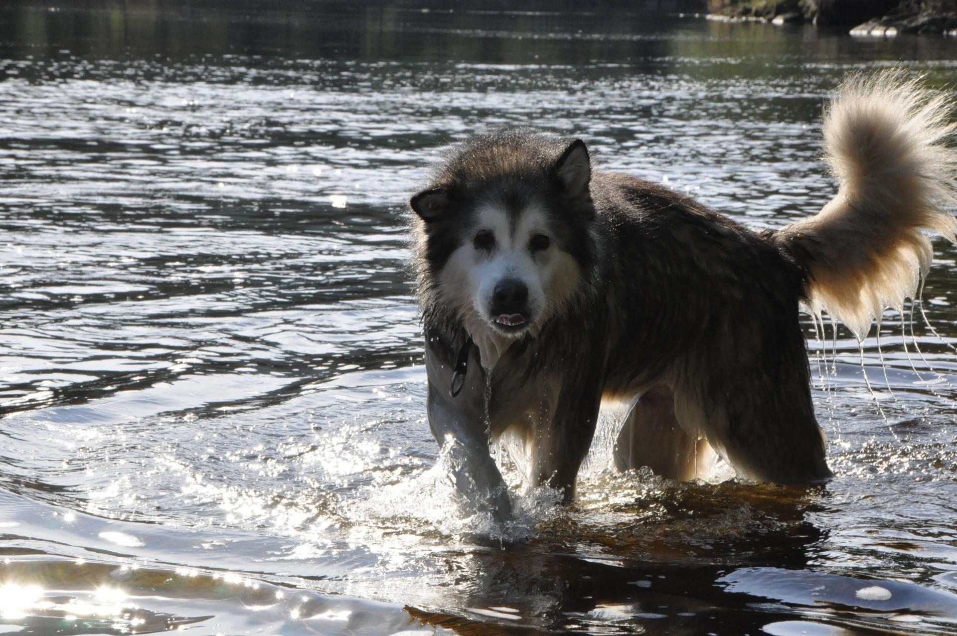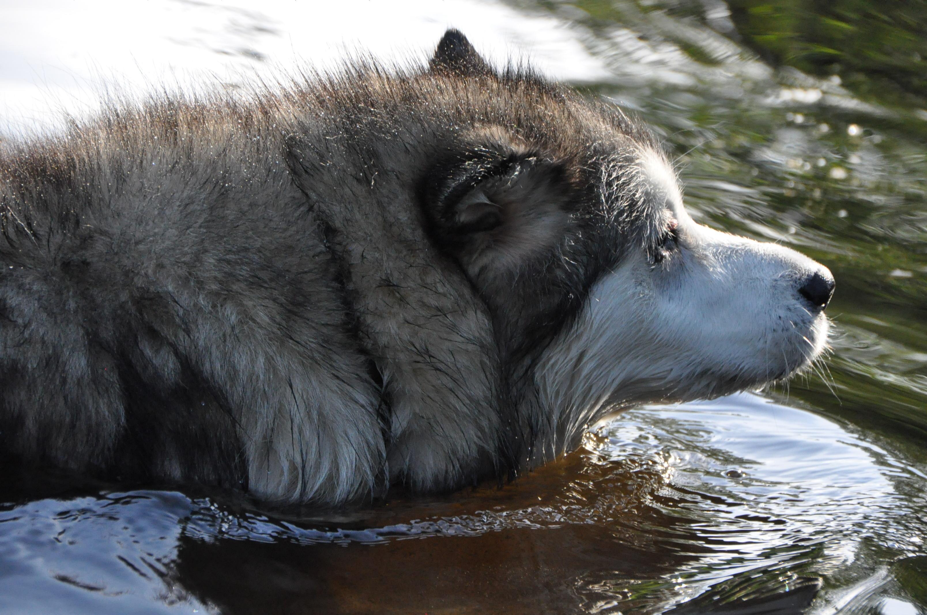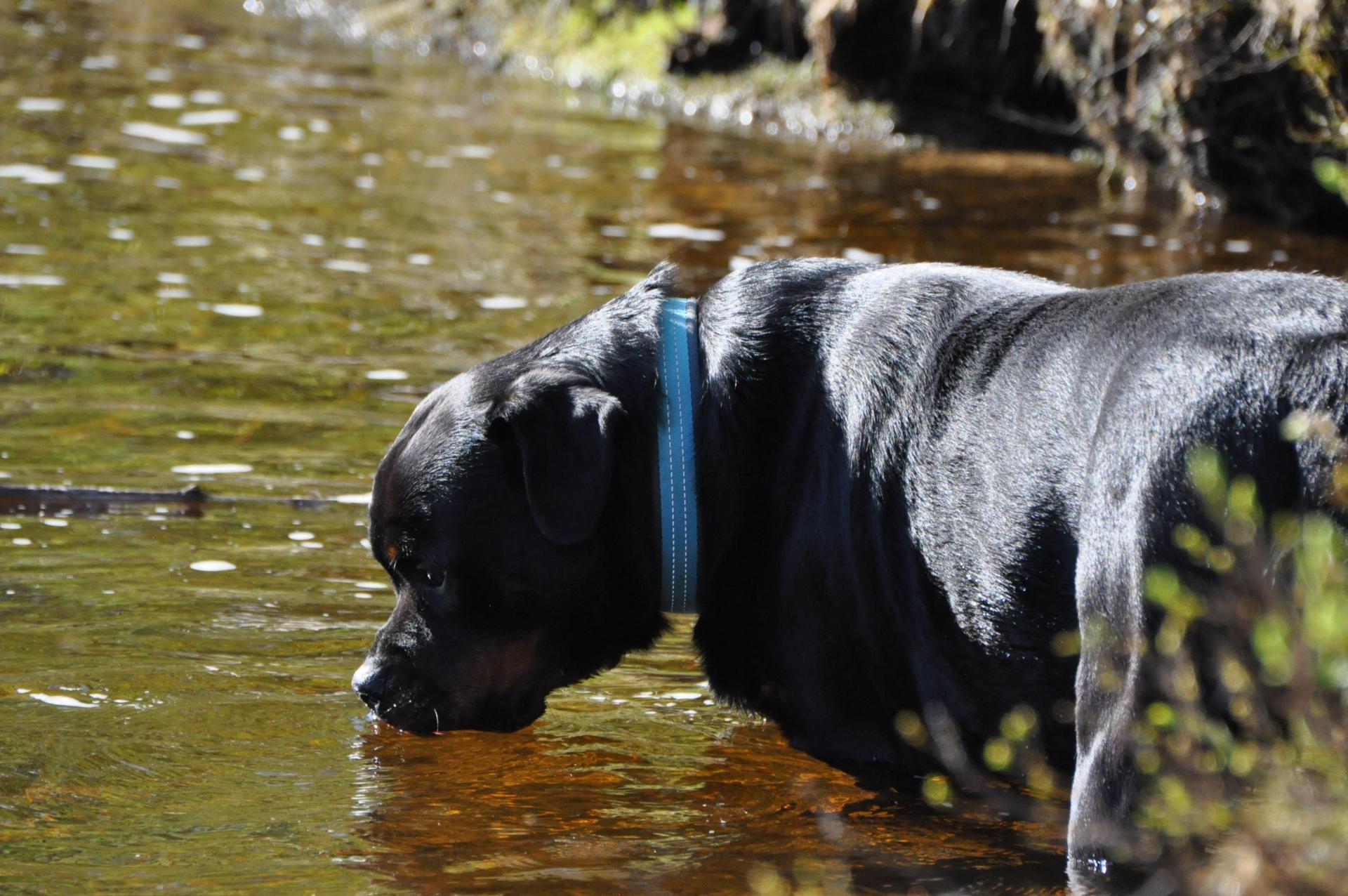 Masza wodę lubi, nawet bardzo.... za bardzo.. np wczoraj odwinęła numer taki, że pod naszą nieuwagę sama przeszła przez drogę i poszła się zamoczyć do jeziora.. Bartek wychodził z domu a mokruteńka Masza go w drzwiach minęła... wtf?? przecież przed chwilą była sucha.... dobrze, że nie jechał żaden samochód.... teraz jak zostaje sama na zewnątrz to jest przypinana do stake-outa. -