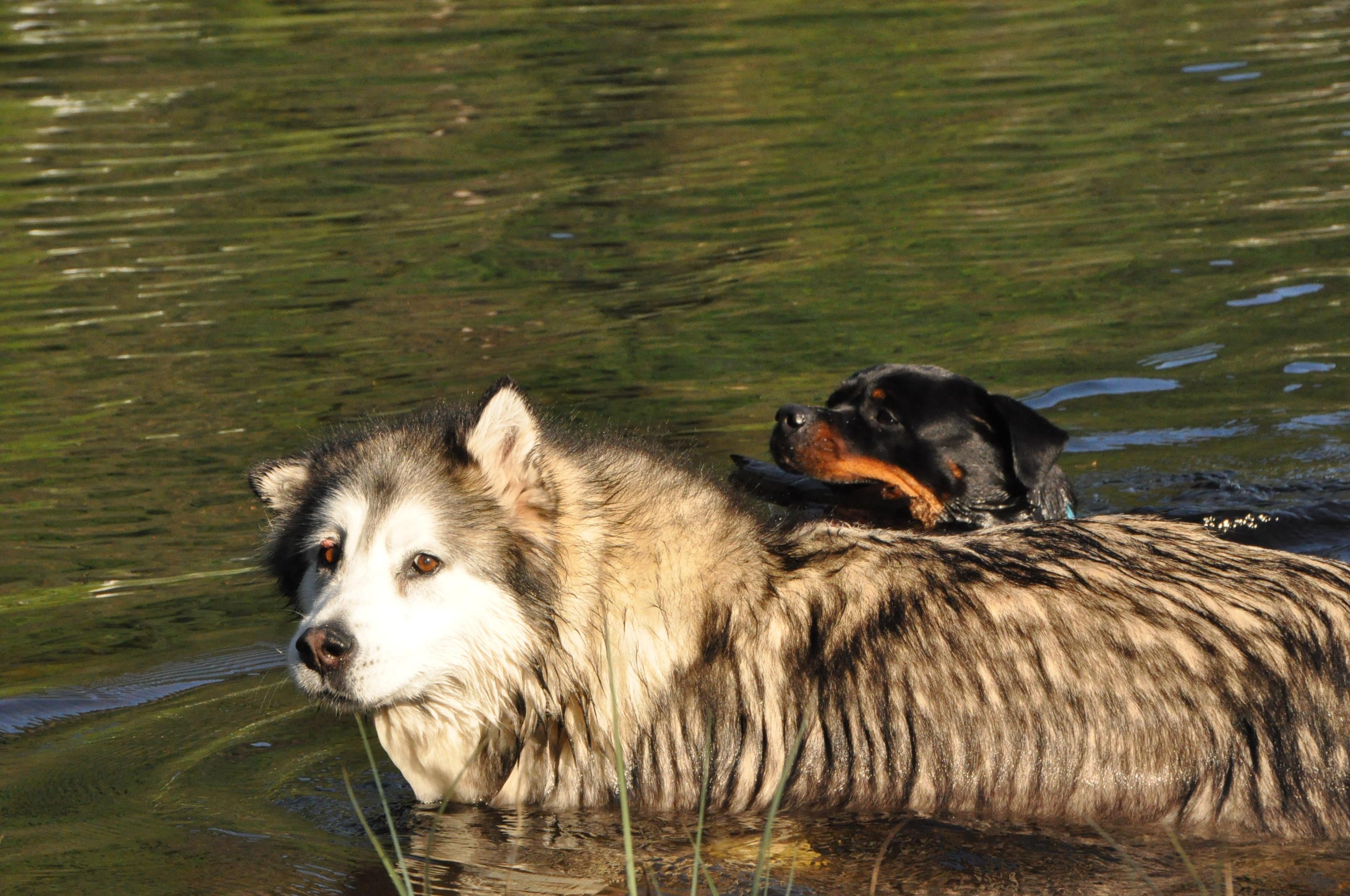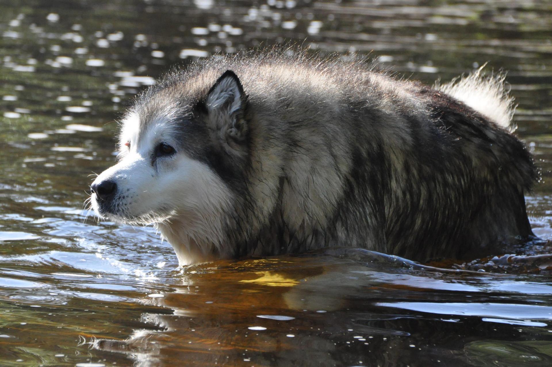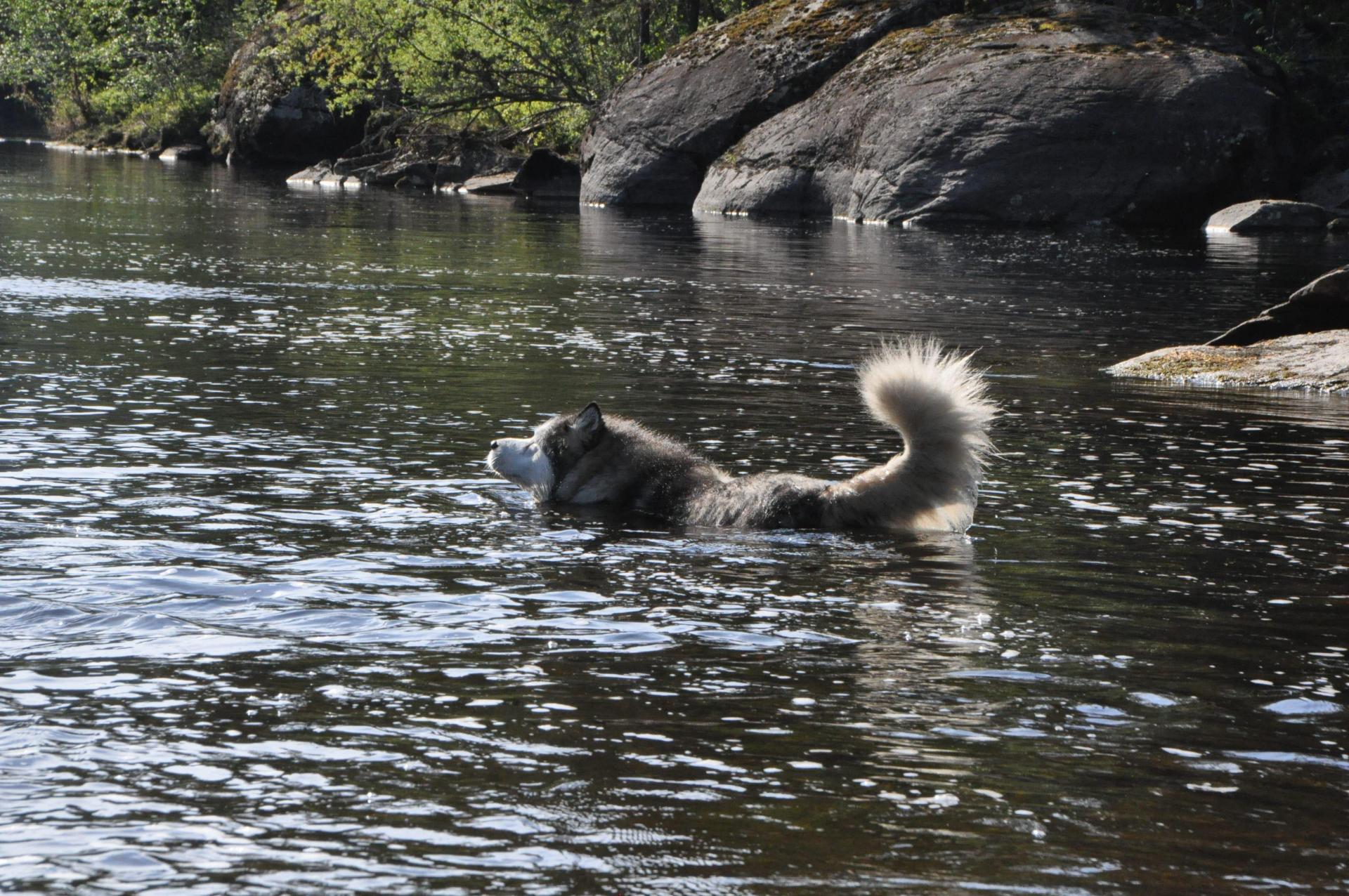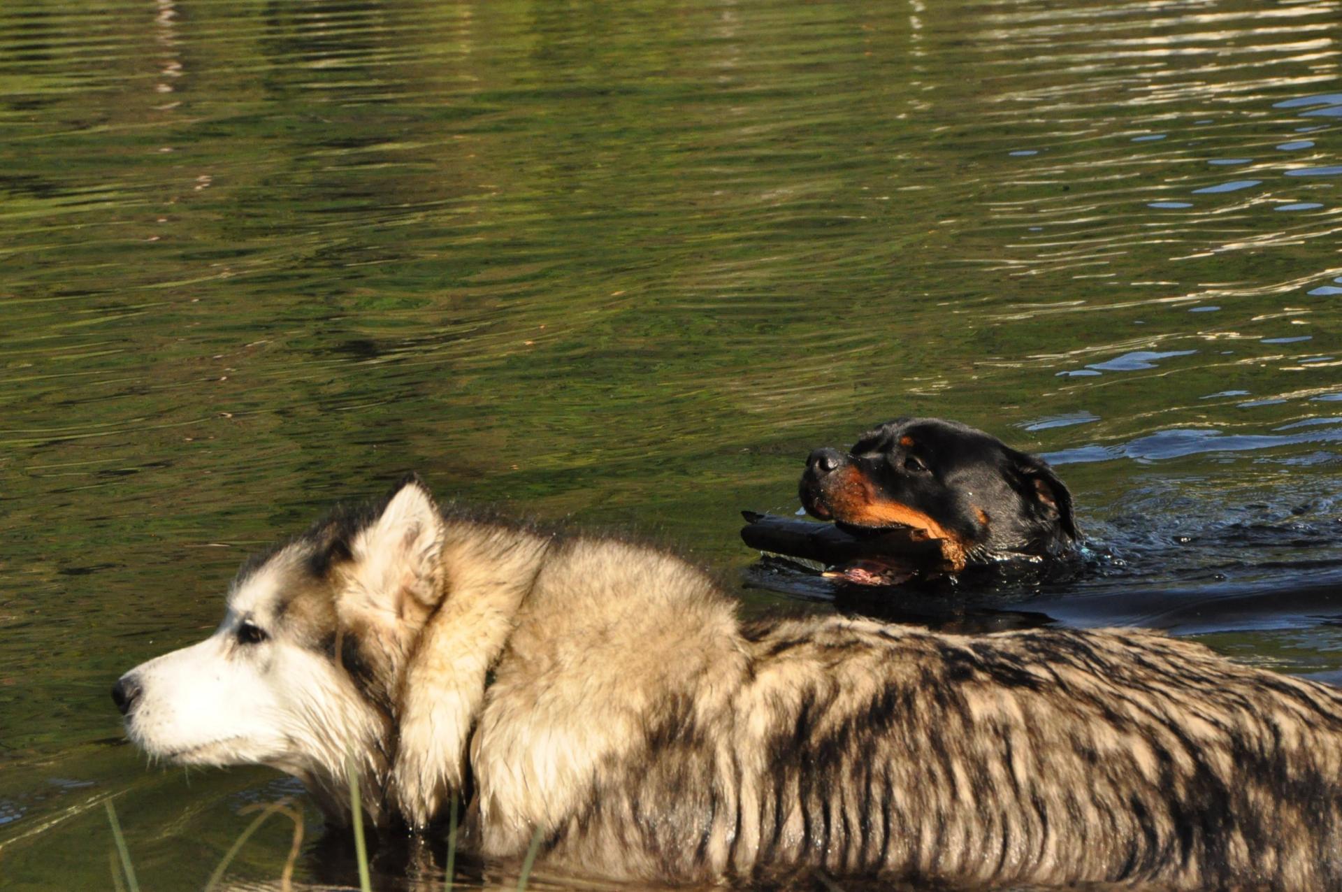 Masza wodę lubi, nawet bardzo.... za bardzo.. np wczoraj odwinęła numer taki, że pod naszą nieuwagę sama przeszła przez drogę i poszła się zamoczyć do jeziora.. Bartek wychodził z domu a mokruteńka Masza go w drzwiach minęła... wtf?? przecież przed chwilą była sucha.... dobrze, że nie jechał żaden samochód.... teraz jak zostaje sama na zewnątrz to jest przypinana do stake-outa. -