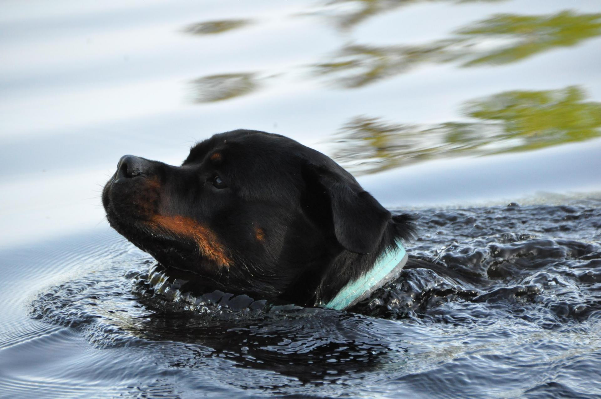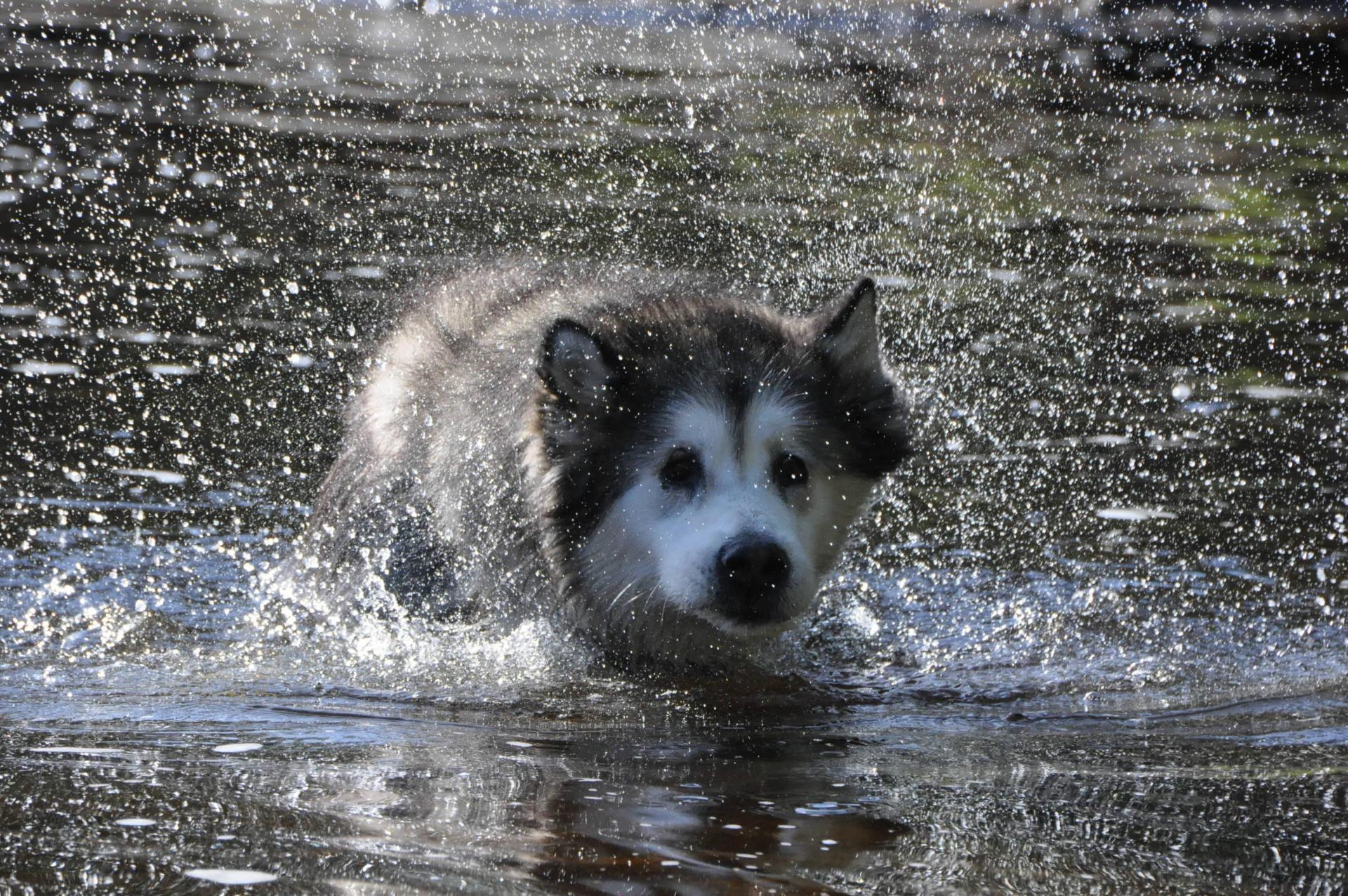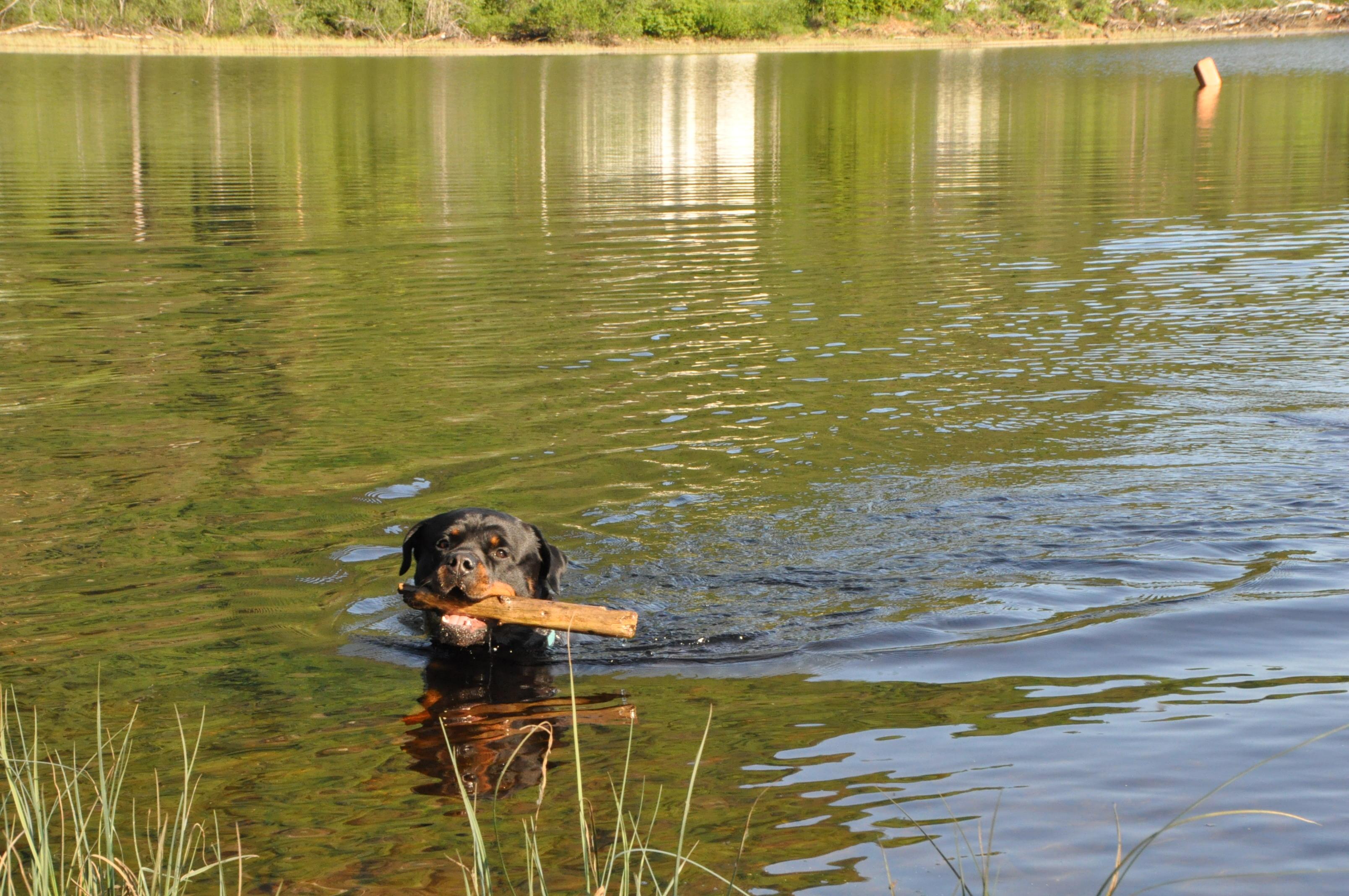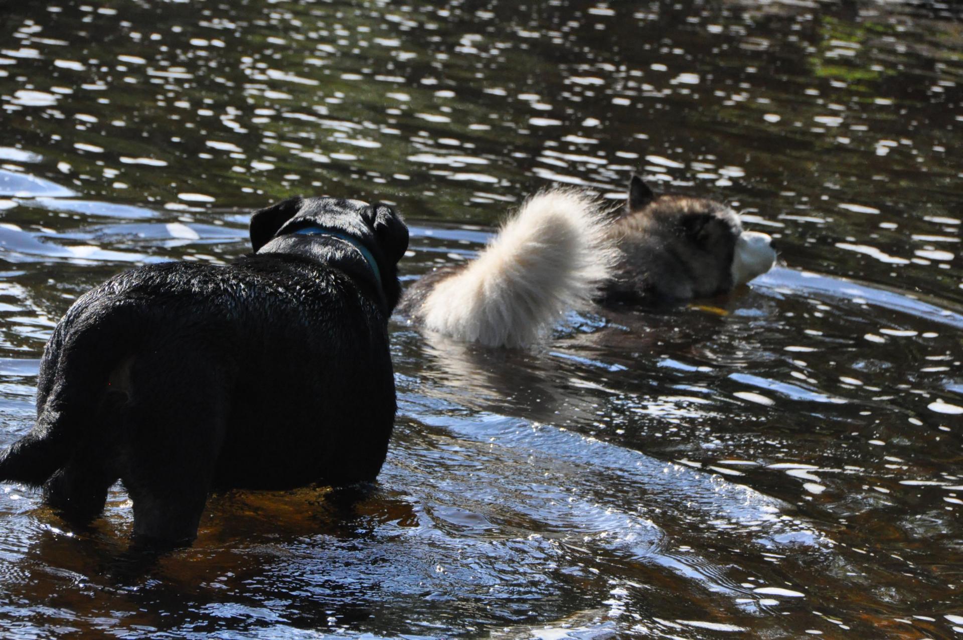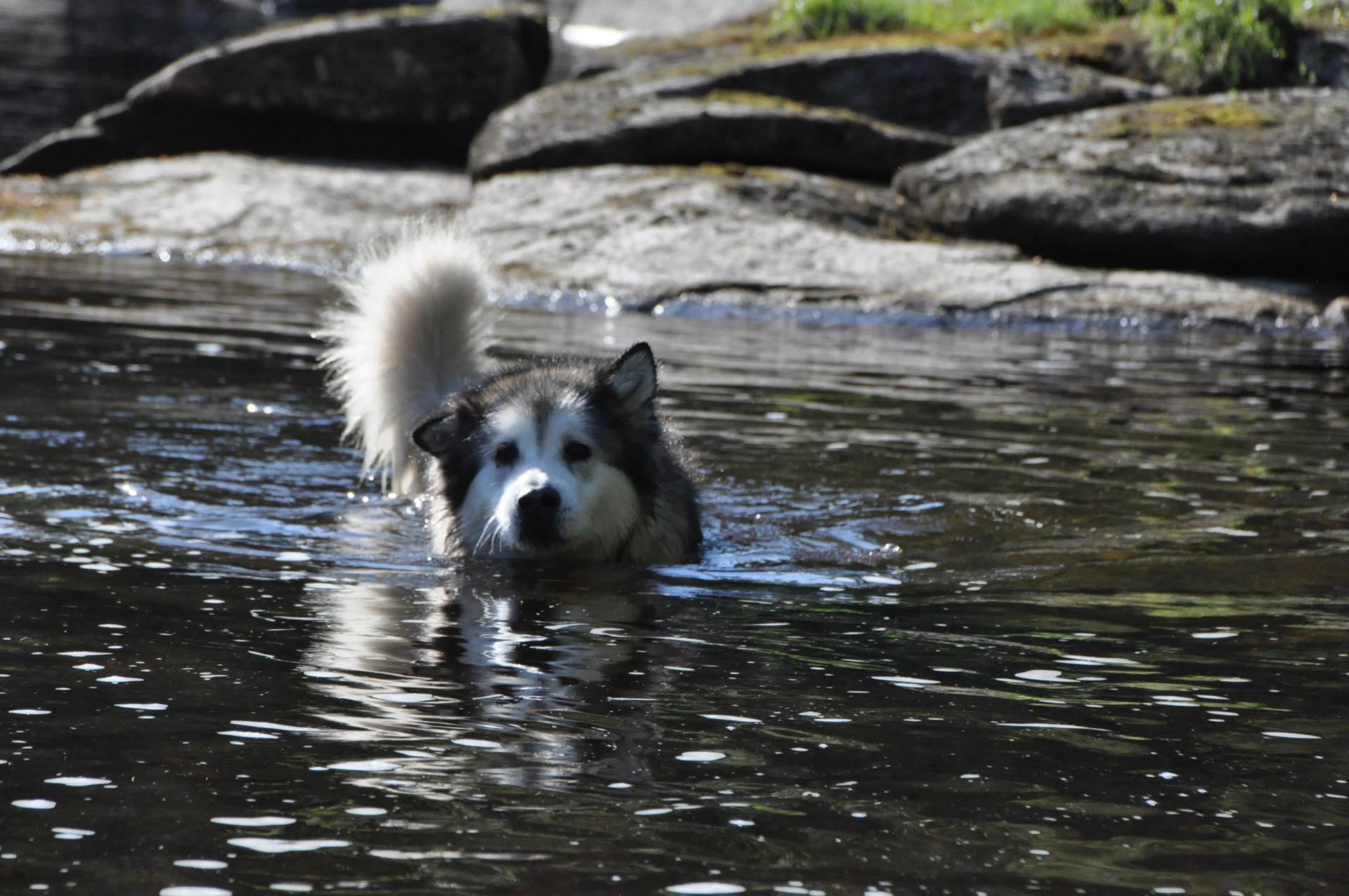 Masza wodę lubi, nawet bardzo.... za bardzo.. np wczoraj odwinęła numer taki, że pod naszą nieuwagę sama przeszła przez drogę i poszła się zamoczyć do jeziora.. Bartek wychodził z domu a mokruteńka Masza go w drzwiach minęła... wtf?? przecież przed chwilą była sucha.... dobrze, że nie jechał żaden samochód.... teraz jak zostaje sama na zewnątrz to jest przypinana do stake-outa. -