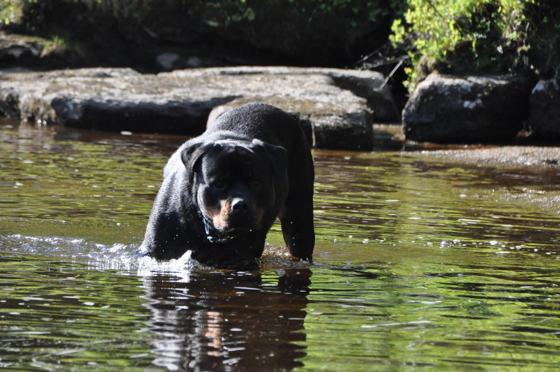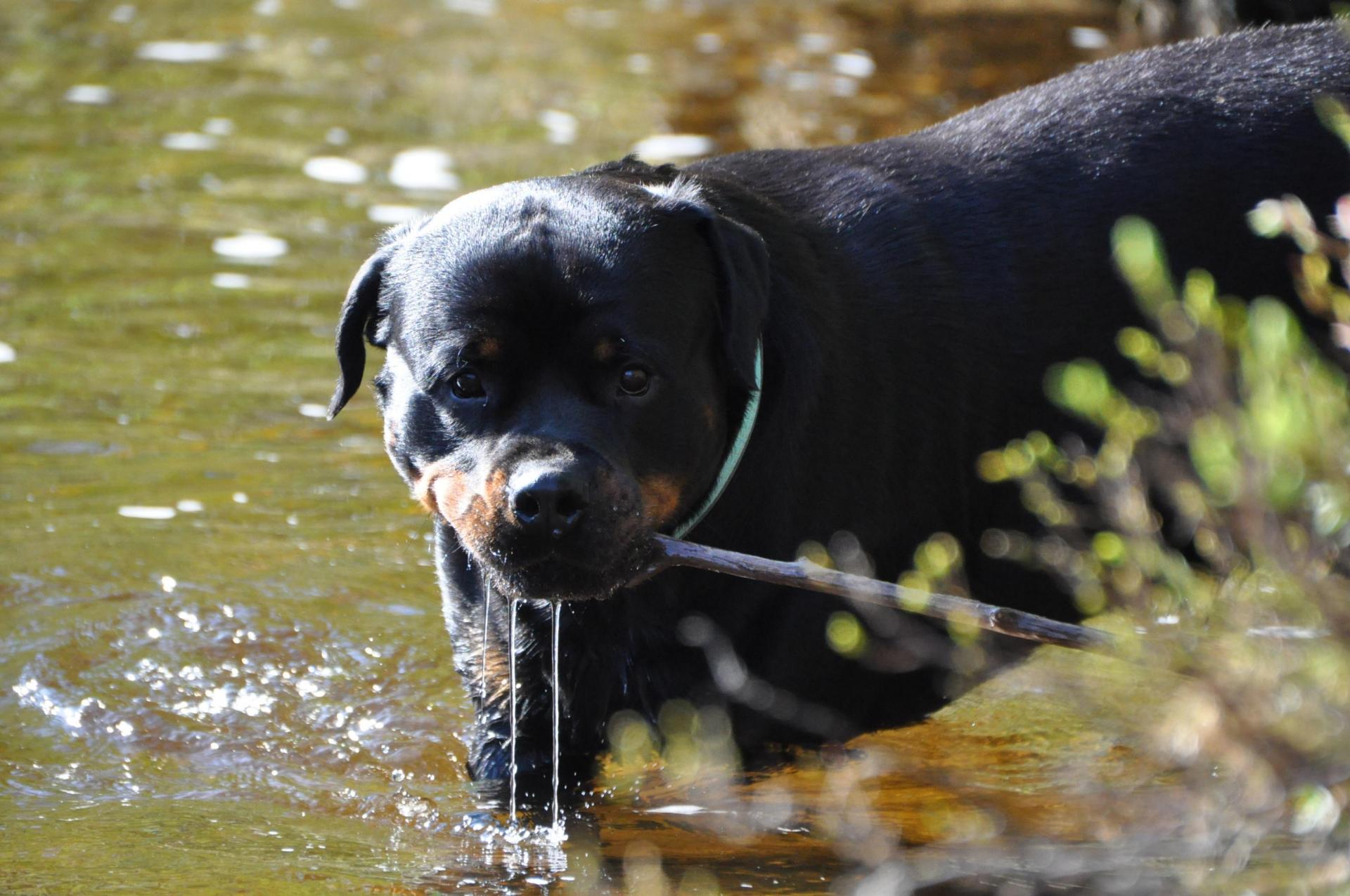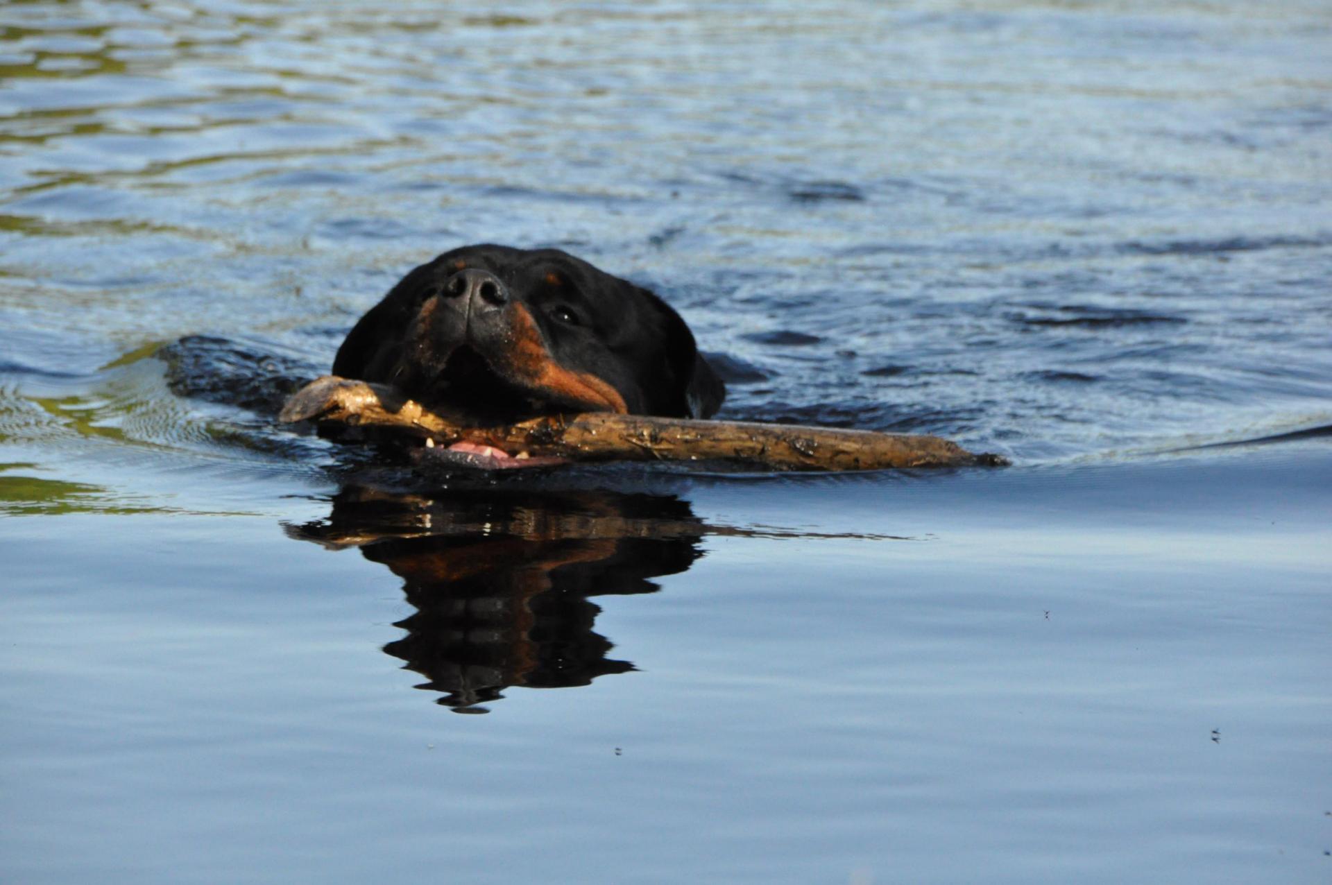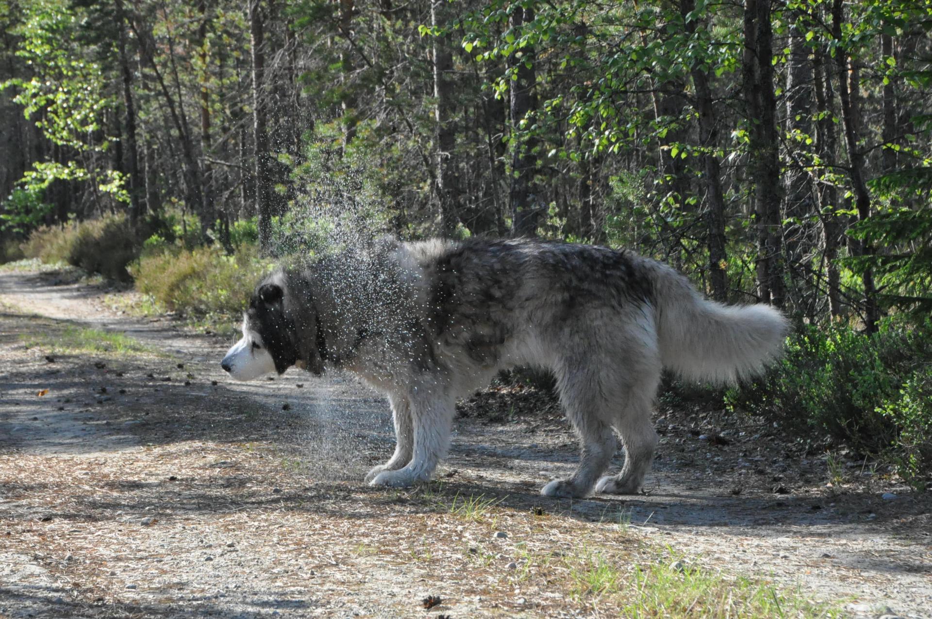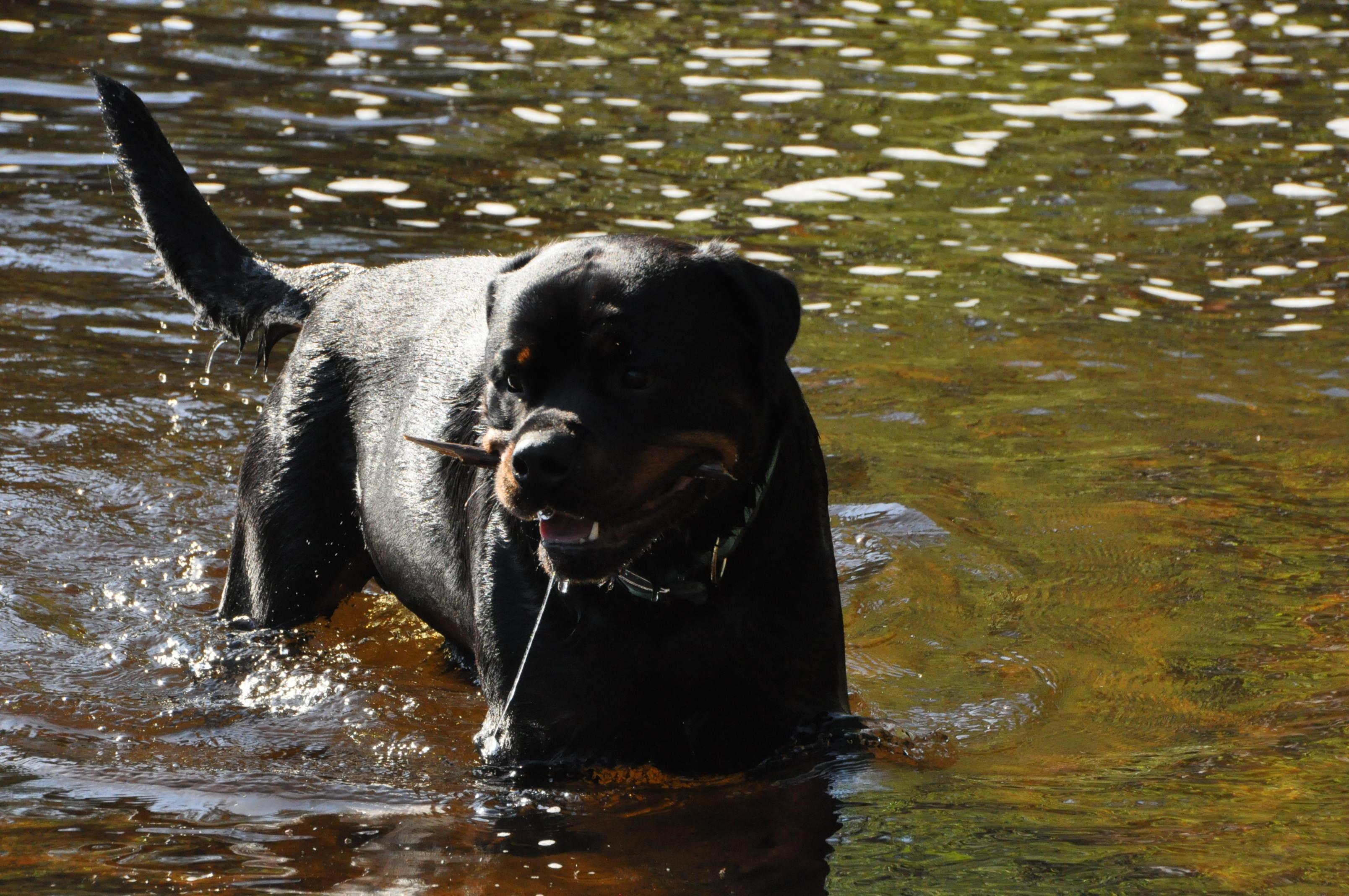 Masza wodę lubi, nawet bardzo.... za bardzo.. np wczoraj odwinęła numer taki, że pod naszą nieuwagę sama przeszła przez drogę i poszła się zamoczyć do jeziora.. Bartek wychodził z domu a mokruteńka Masza go w drzwiach minęła... wtf?? przecież przed chwilą była sucha.... dobrze, że nie jechał żaden samochód.... teraz jak zostaje sama na zewnątrz to jest przypinana do stake-outa. -