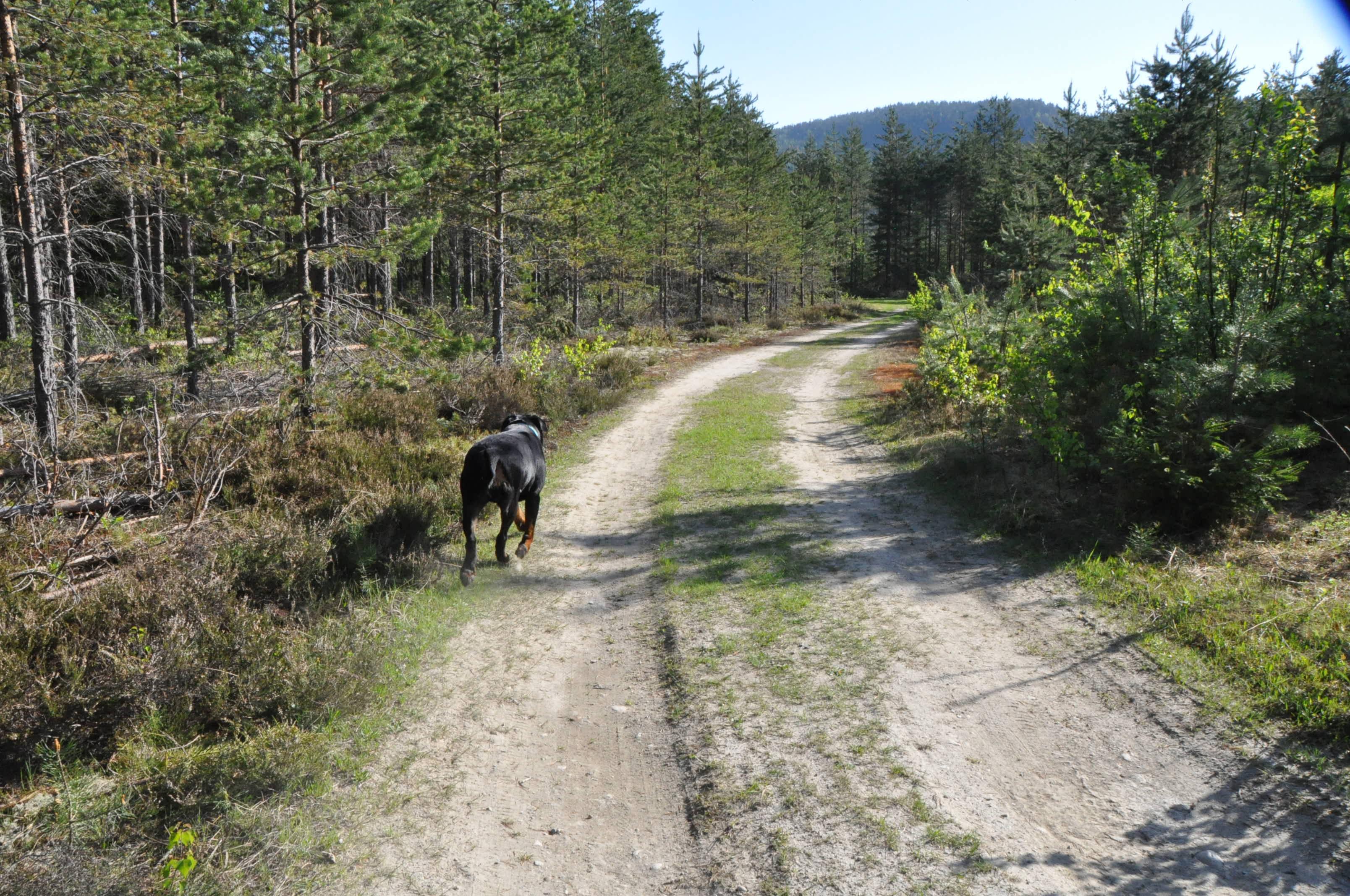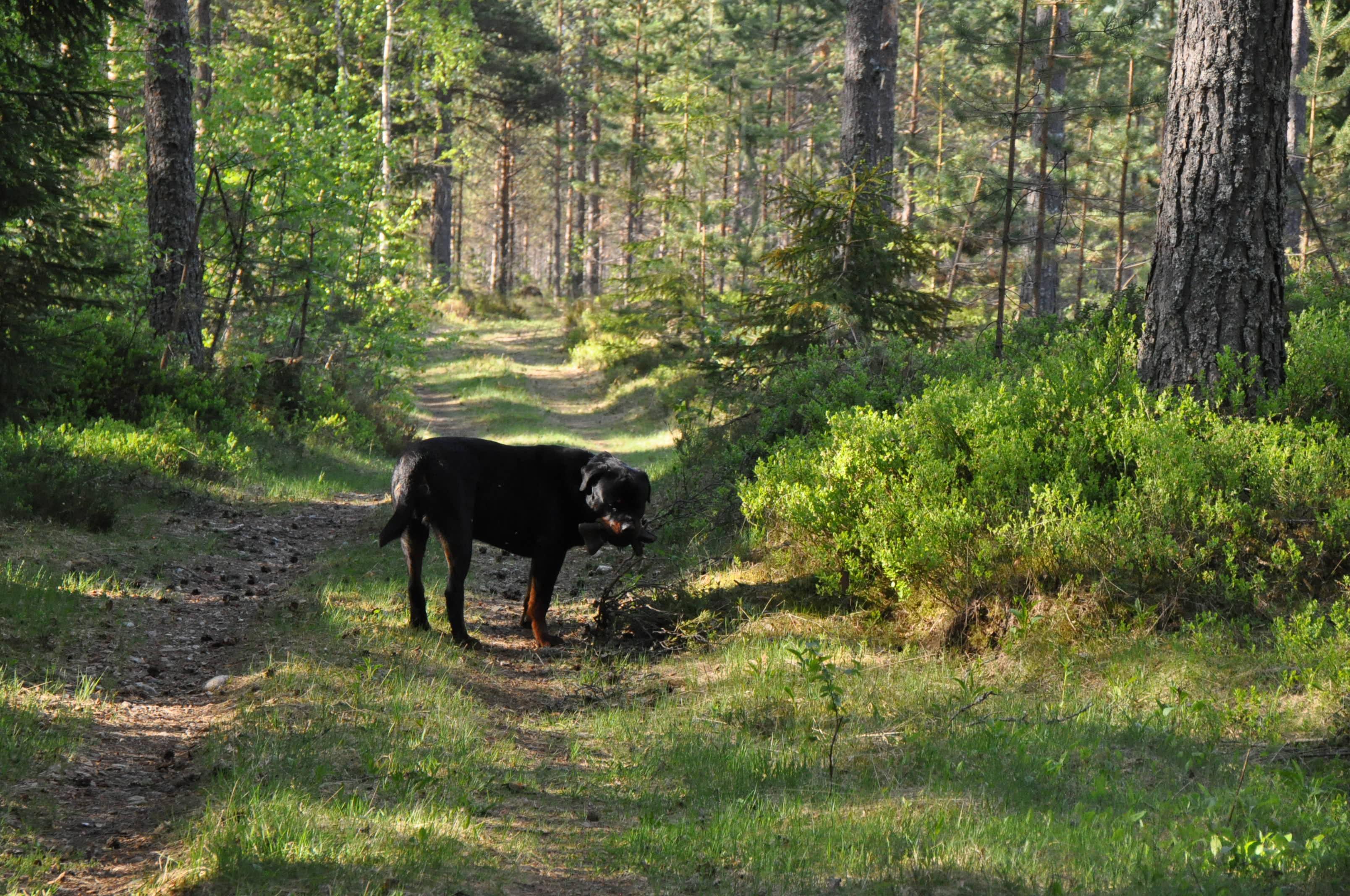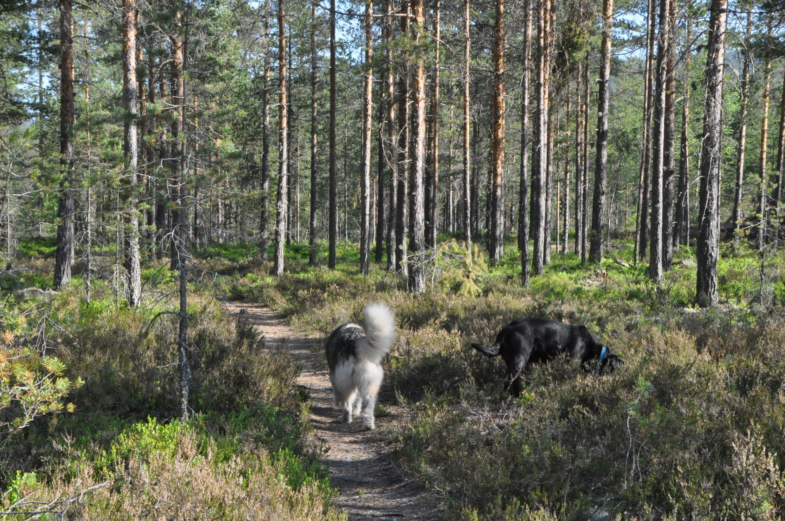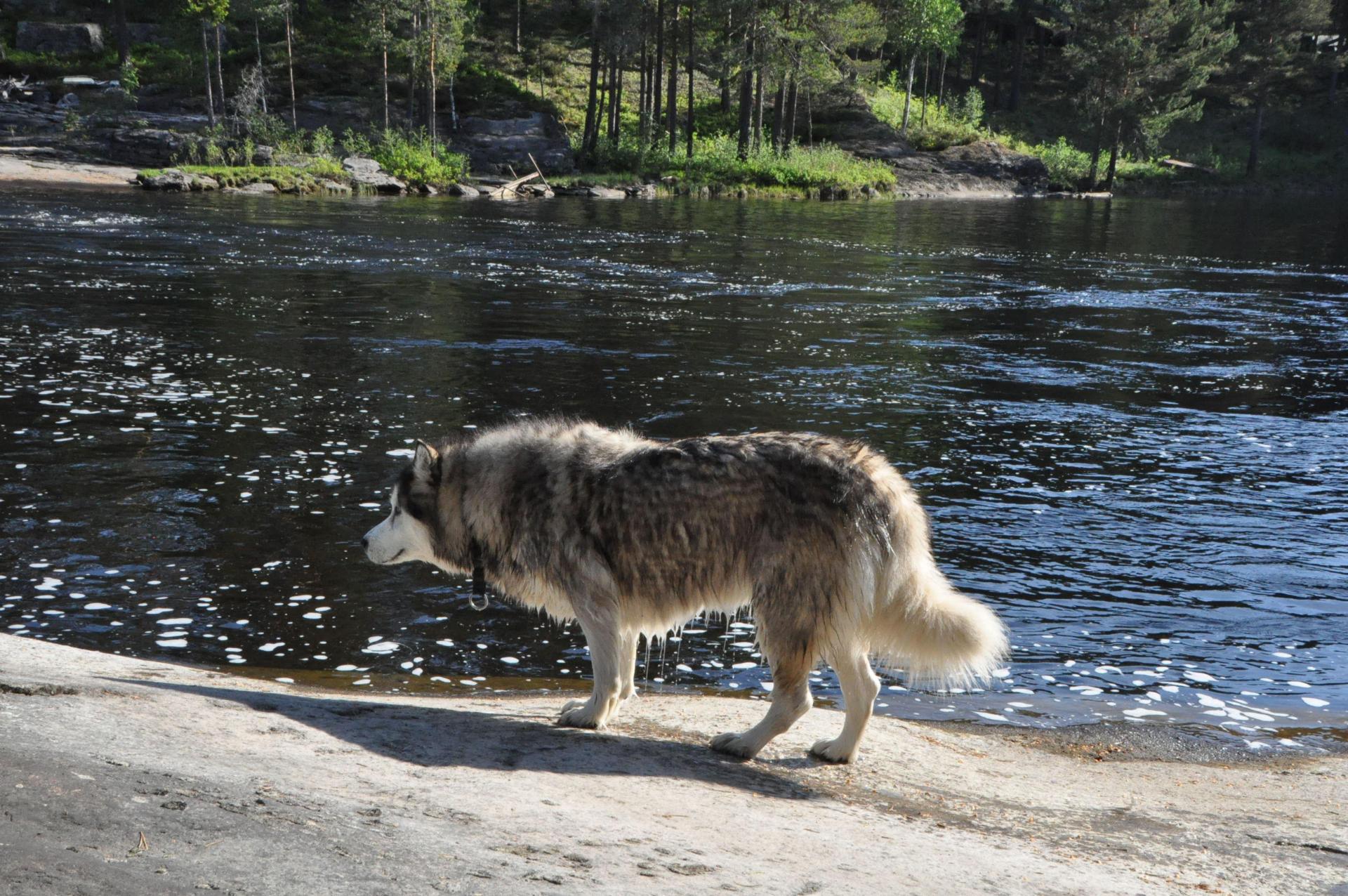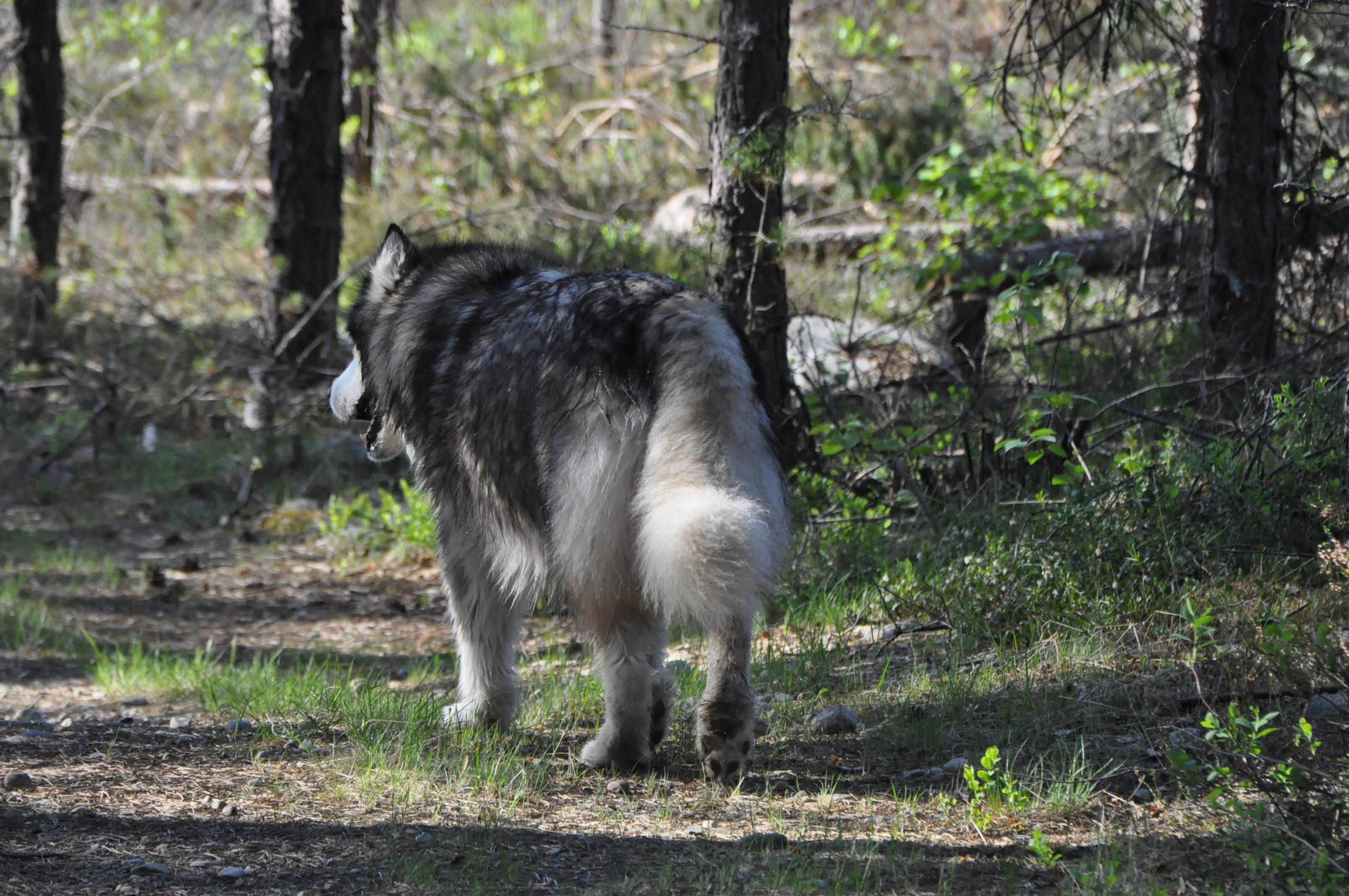 a my w miedzy czasie trochę łazikujemy. Mamy tu spore upały 25-28 stopni w cieniu, wiec grubo ponad 30 w słońcu..grama wiatru i zero chmur... trawę sobie w ogródku i w kolo domu wykosiłam a ona zamiast sie zagęszczać to żółknie i usycha... w lasach duże zagrożenie pożarowe... a w najbliższych dwóch tygodniach nie zapowiada się na jakikolwiek deszcz, także roślinność ma przechlapane.. najpierw dłuugaśna zima teraz suche lato.... Oczywiście Maszy nie katuję spacerami bo by się dziewczyna zamęczyła z tym futrem.... rano zraszam porządnie trawę zaraz przy domu, tam gdzie Maszka ma ulubioną miejscówkę do leżenia i potem ona sobie w tym chłodnym, wilgotnym cieniu leży i drzemie. Hirka czasem idę trochę zmeczyć spacerem po lesie koniecznie z moczeniem doopki w jeziorze czy rzece... No i ciesze się, bo jagodziny owocować będą, już sporo owcoków jest na krzaczkach :) -