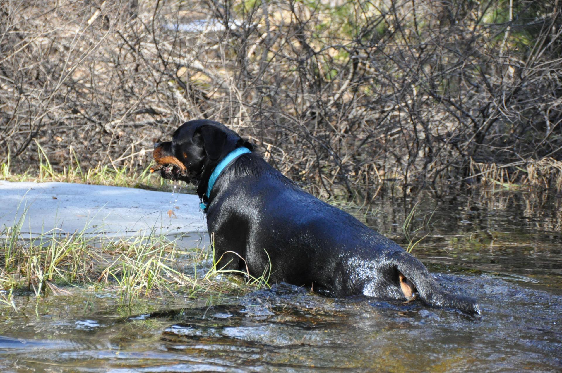 20. Tak! Nareszcie można łazić po lesie i szwędać się poza drogami i nie toniemy w śniegu. :) teraz czekamy aż się zazieleni trawa, paprotki i wszechobecne jagodziny i wrzosy. Hiro dziś zaliczył pierwszą kąpiel w jeziorze, choć jeszcze wczoraj dryfowało sporo kry... dwa razy mu patyka rzuciłam wiec futro inauguracyjnie przepłukane :)