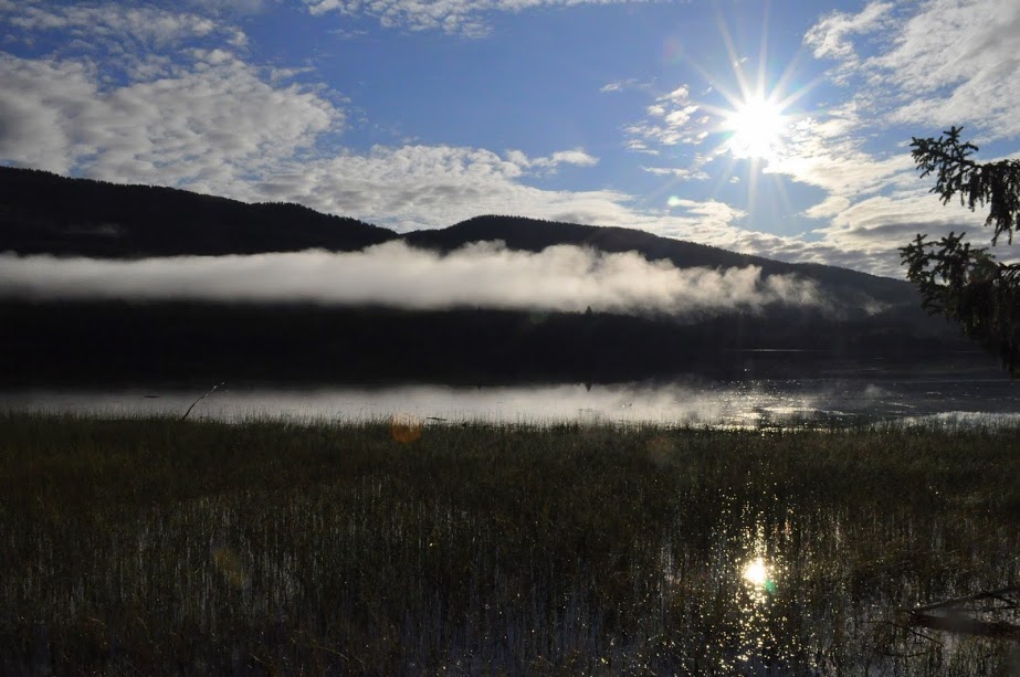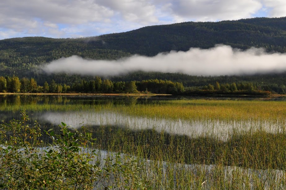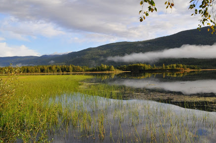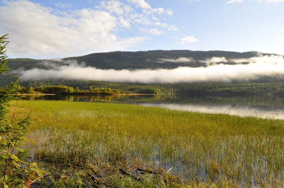 momentami jezioro jest tak gesto porosniete szuwarami, ze wyglada to jak łąka :)czesto tez nad lasami po drugiej stronie jesiora unoszą sie mgły... -
