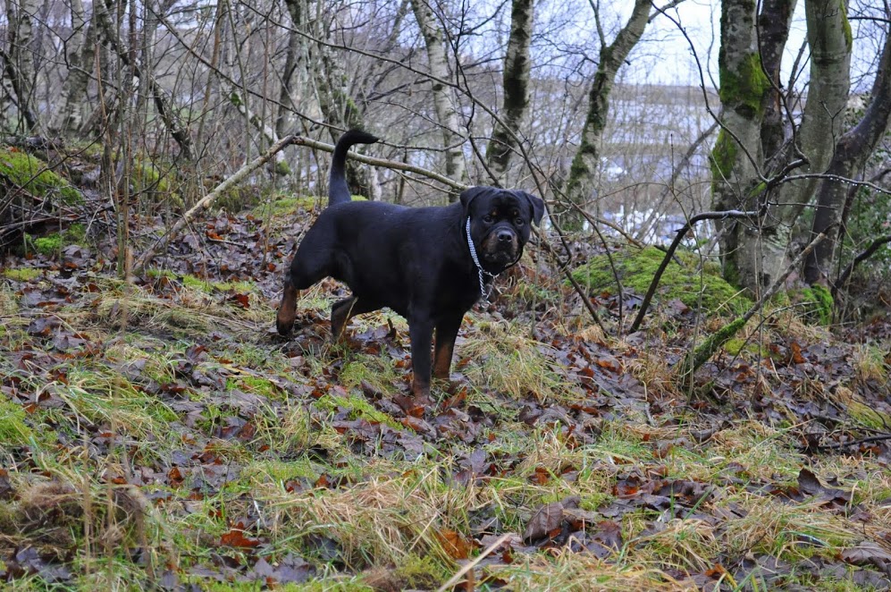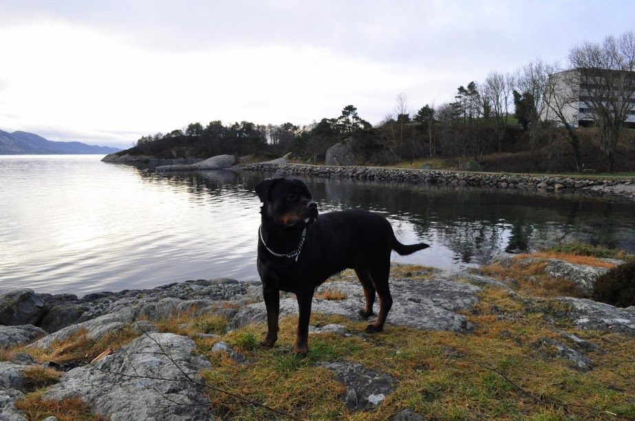 Hejka kochani. Dawno nas tu nie było. My po przeprowadzdze z Ganddal do Stavanger. Ja ze wzgledu na duza ilość godzin w pracy mam niewiele czasu na cokolwiek. psy, sen, praca, psy, sen, praca.... i tak ciągle... niestety mieszkamy w ścislym centrum Stavanger wiec w koło sam beton. na krotkie spacery mamy tylko do dyspozycji park przykościelny. dzis ze względu na to, że mam wolne poszukałam na google maps jakiegoś zakrzewionego terenu żeby choć Hiro mógł sie wreszcie nacieszyć spacerem, większą przestrzenią i do woli poniuchać ciekawe zapachy :) Ze zwględu na to, że jednak kawałek mamy do tego miejsca Maszy nie targałam bo więcej by sie umordowała niż to warte. Dlatego na zdjęciach tylko Hiro. Maszy robię w zasadzie tylko fizjologiczne spacery na ktorych czasem ma głupawkę i troszkę pobryka. Bartek w polsce więc ze wszystkim jestem sama, ale jakos sobie radzimy. Psy są naprawdę dzielne. Nic nie broją, nie niszczą, chyba przesypiają ten czas kiedy jestem w pracy. Radość gdy wracam do domu jest ogromna. Oba psy chyba polubiły nowe lokum bo nie wykazują żadnych oznak stresu. Hirek ma do dyspozycji wreszcie okna na swojej wysokości więc prowadzi monitoring całodobowy :) Masza czasem mu pomaga :) Mieszkamy na 3 pietrze wiec cos tam sobie widzą z tych okien :) Hirek poki co czasem ma zakładany kantar do póki dobrze nie pozna okolicy i nie będzie sie stresował. Gdy jest berzludnie oczywiście go puszczam luzem ale tu ogólnie wiecej ludzi niż na poprzednim miejscu. Mam nadzieję, że to tylko na maksymalnie kilka miesiecy.. Pogoda daje nam nieźle do wiwatu bo ciągle pada deszcz.. całymi dniami i nocami to mokre gówno leci z nieba.... o zimie w naszym regionie oczywiście możemy tylko pomarzyć....tu od lustopada po prostu sie czeka na wiosnę.... No nic to lecim ze zdjęciami z dzisiejszego spaceru z Hiro..... -
