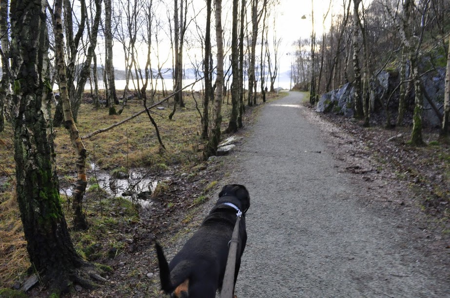 dziękuję wszystkim za słowa wsparcia. Już teraz jest w pracy trochę lzej, już jedną knajpę oddałam, burger przez chwilę zamknięty więc mogłam złapać oddech. jeszcze jutro trochę ciezko bo nie dość że musze wstać o 4 to jeszcze na dziendobry czeka mnie spacer do centrum miasta 3,5 km żeby na 6 dojechać do burgera, potem od razu do stavanger busem posprzątać knajpę.. dobrze ze te cholere oddaję 3.1. zostaie mi tylko burger i będę szczesliwa :) Przeraża mnie troche przeprowadzka bo tyle gratow sie uzbierało przez te dwa lata, że masakra... musialabym cos powywalac bo nie chce sie tak zagracać... ksiażki powynoszę do biblioteki... musze powywalac masę papierow bo tylko to lezy i miejsce zabiera.... mnóstwo mam roznych szpargałów i w sumie moze kiedys sie przydać... ale za duzo tego wszystkiego musze przeprowadzic jakąś slelekcje zeby to trochę uszczuplić. Masza bardzo ciezko przeżyła sylwestra... w zeszłym roku też sie bardzo bała.. w innych latach miała na ten huk wywaklone, teraz im starsza tym bardziej sie boi.... dobrze, że to tylko kilka godzin... dzis odsypiała nocne stresy wiec na dłuższy spacer wziełam tylko Hiro. Niestety ten znow mi sie spasł bo Bartek był chory ja zapracowana i pies znow ma wałeczki :( kilka zdjec Hirka z dzisiejszego spaceru. dzis wreszcie zaświecilo slóńce od ponad dwoch tygodni kiedy ciągle lalo i wiało... już nam wszystkim ten deszcz bokiem wychodzi... a gdzie tam do wiosny... :( -
