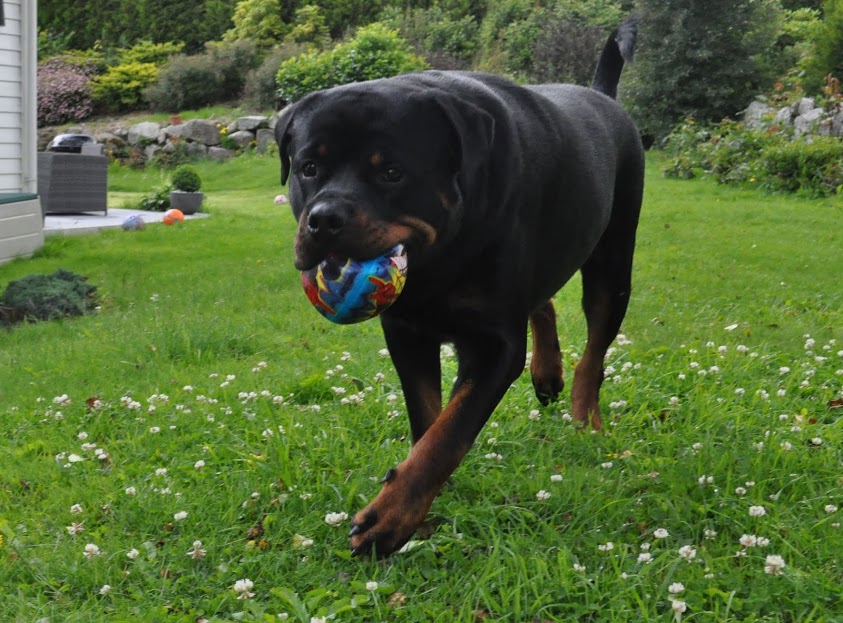 Generalnie rotty z wiekiem i tak powinny nabrać masy, bo one to mają w genach.... jak u amstafów np. czy staffików... rozrost może u rottów trwać do lat 3. Niektore obrastają szybciej inne wolniej. Hirek jest z tych raczej wolno nabierających masy. Ostatnio kobieta jakaś do mnie na FB napisała, z pytaniem co robię, że Hirek tak ładnie się rozrasta.... a ja na to, że zaczął dostawać większe porcje miesa i jest ono mu podawane regularnie.. na to pani mi odpisała, że właśnie jej rott jest w podobnym wieku ale jest szczuply i ani myśli nabierać masy... no ale surowizny nie tknie..... taki pies nie jedzący surowego chyba rzeczywiście ma problem z nabrninem masy.... no bo chrupki to za mało, żeby był dobry budulec dla mieśni.... No i jakiś ruch musi być zapewniony. I to nie chodzi o jakieś tam super treningi.... Hirek przecież nie trenuje nic... tyle, że biega na spacerach za patykiem czy piłką no i lubi pływać jak mu sie rzuci patyka do wody... i tyle. -
