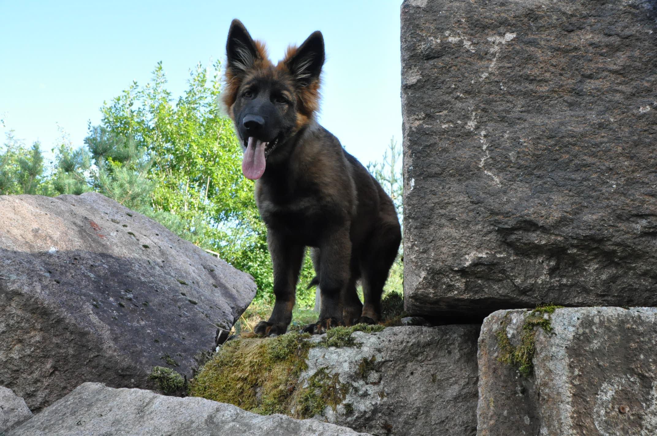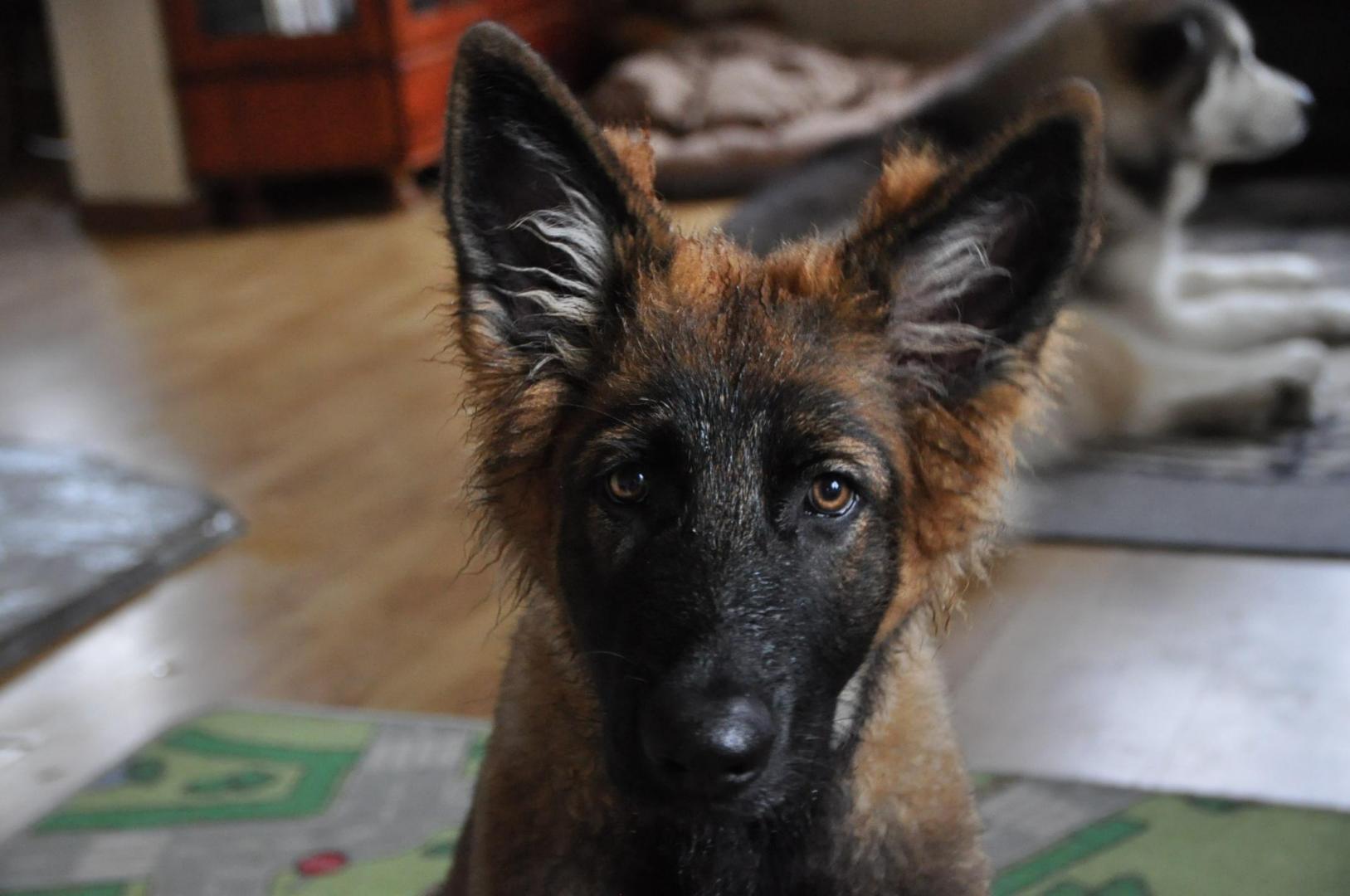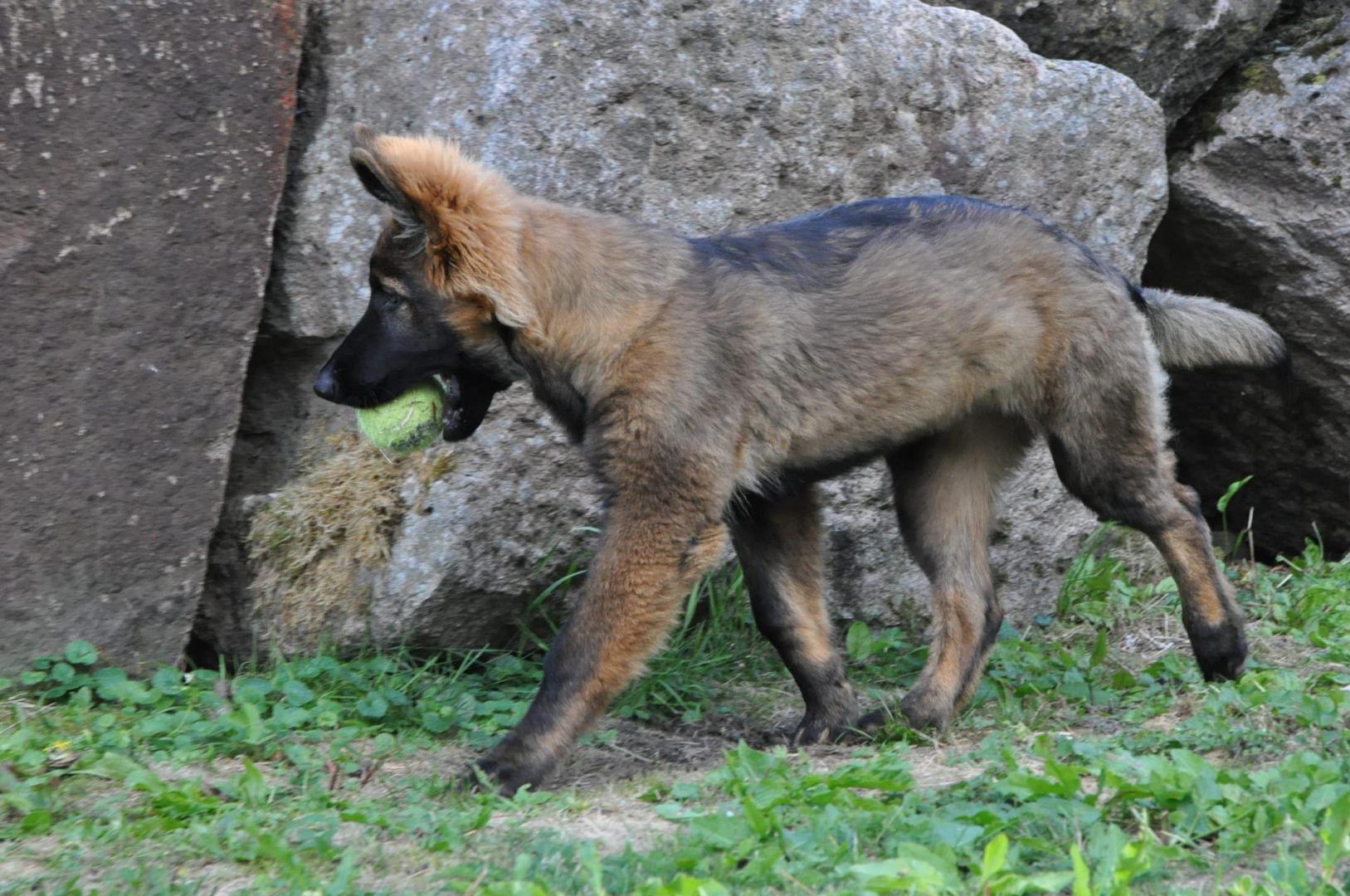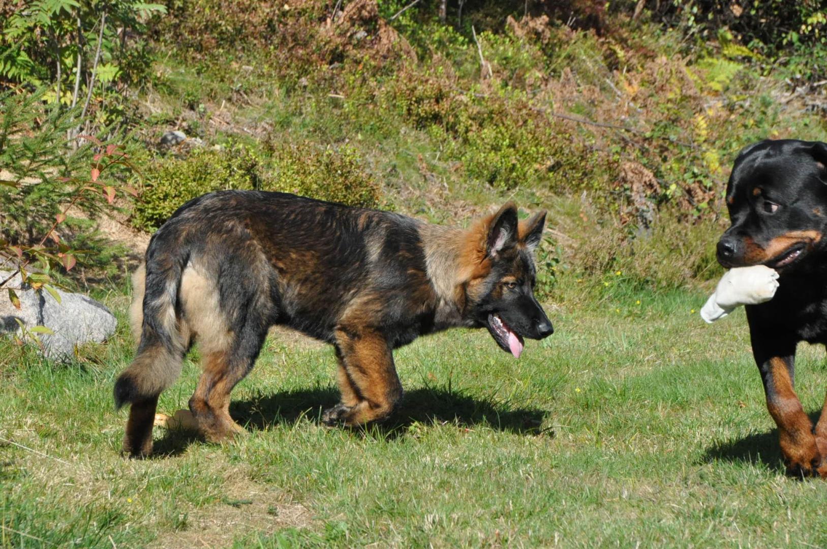 Dziewczyna która ma szczenię z tego samego miotu co ja (owczarek staroniemiecki) też się trochę martwi bo jej suczka nie szczeka... skamle, piszczy, jęczy ale szczekać nie chce, mimo iż ma do towarzystwa dorosłą sukę tej samej rasy, która często nadziera japę, to mała milczy jak zaklęta. Moja sucz szczeka bez problemu gdy coś ją zaniepokoi albo jak chce wymusić zabawę na drugim psie.