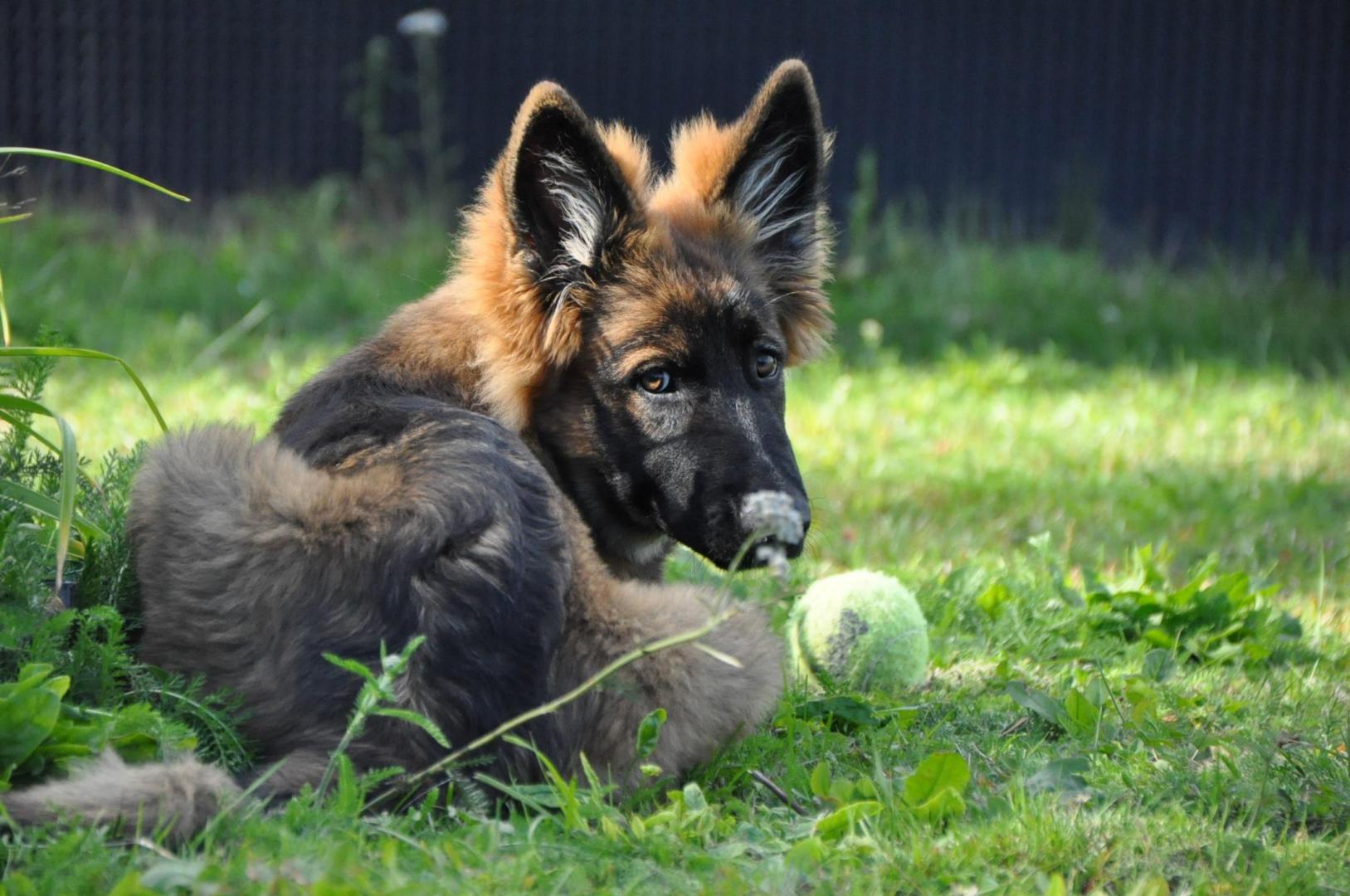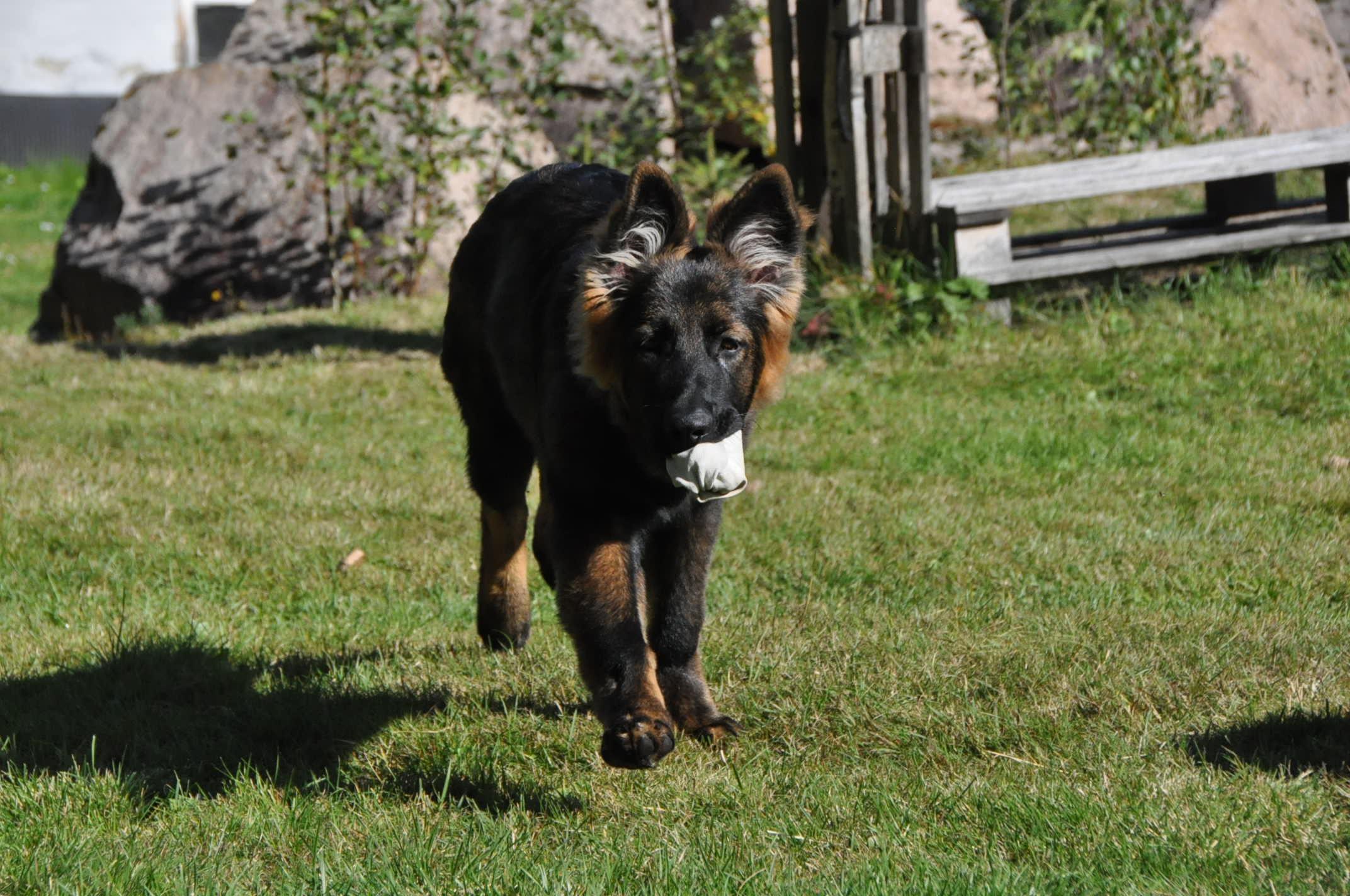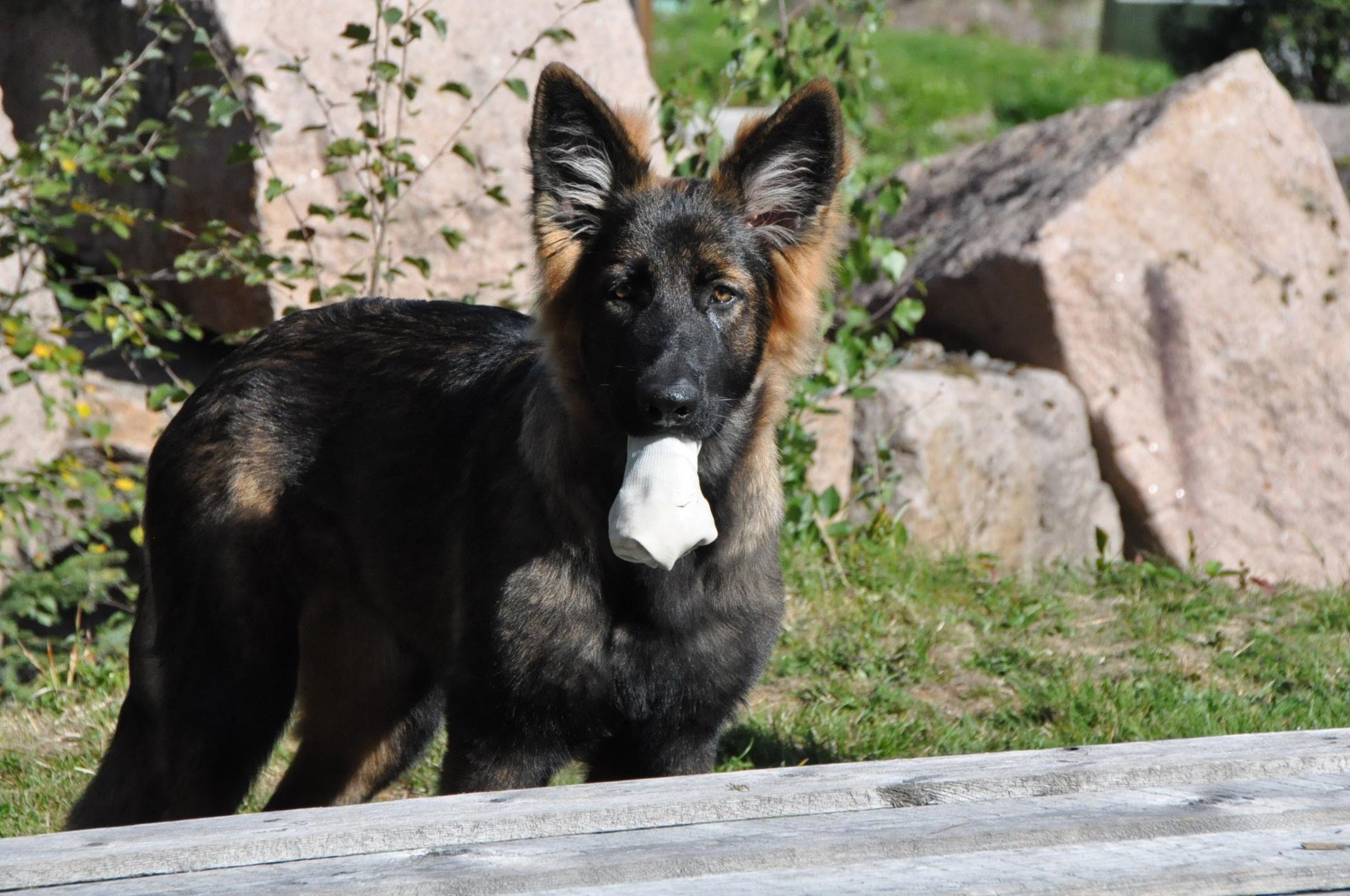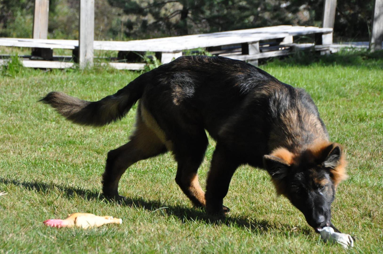 Dziewczyna która ma szczenię z tego samego miotu co ja (owczarek staroniemiecki) też się trochę martwi bo jej suczka nie szczeka... skamle, piszczy, jęczy ale szczekać nie chce, mimo iż ma do towarzystwa dorosłą sukę tej samej rasy, która często nadziera japę, to mała milczy jak zaklęta. Moja sucz szczeka bez problemu gdy coś ją zaniepokoi albo jak chce wymusić zabawę na drugim psie.