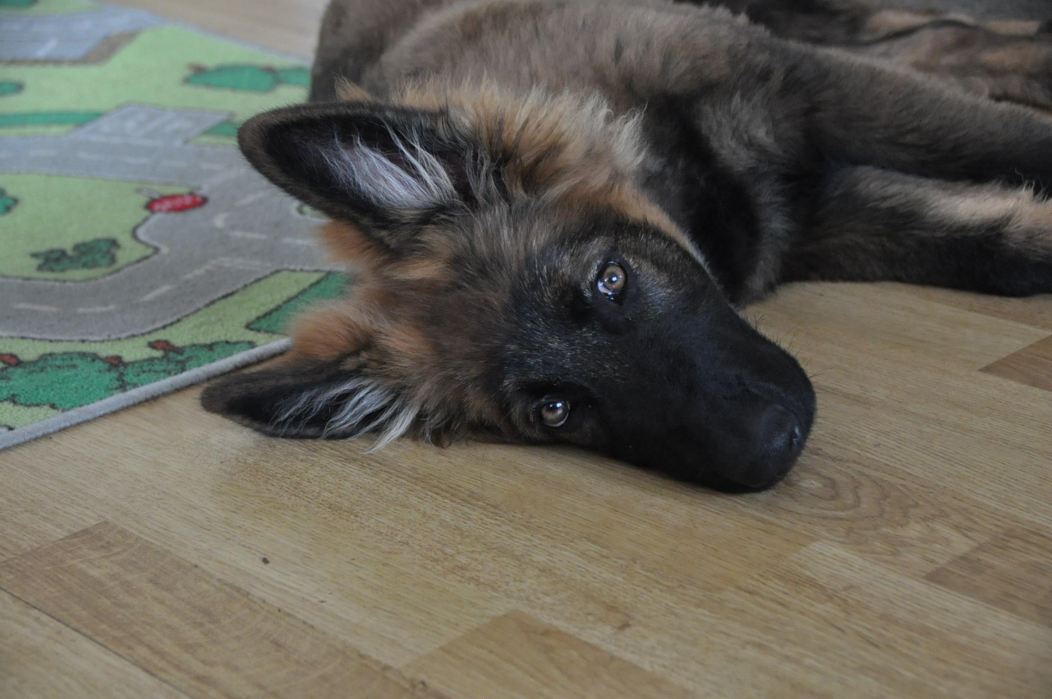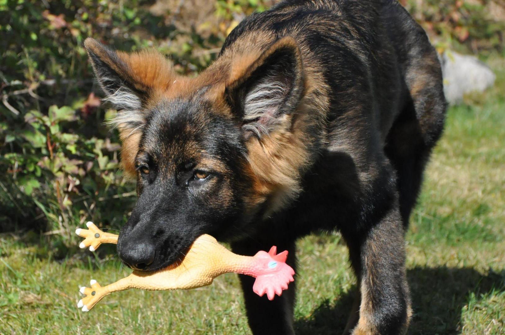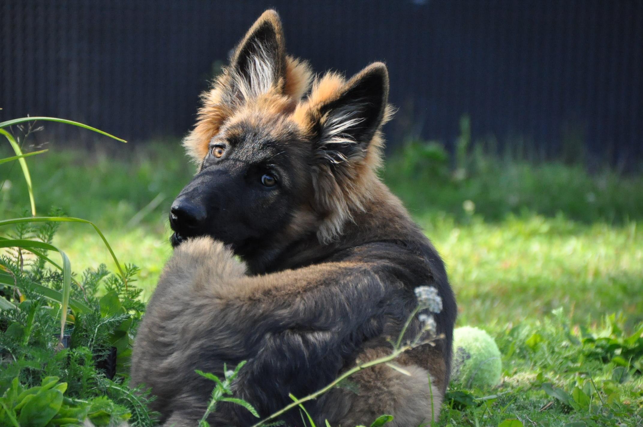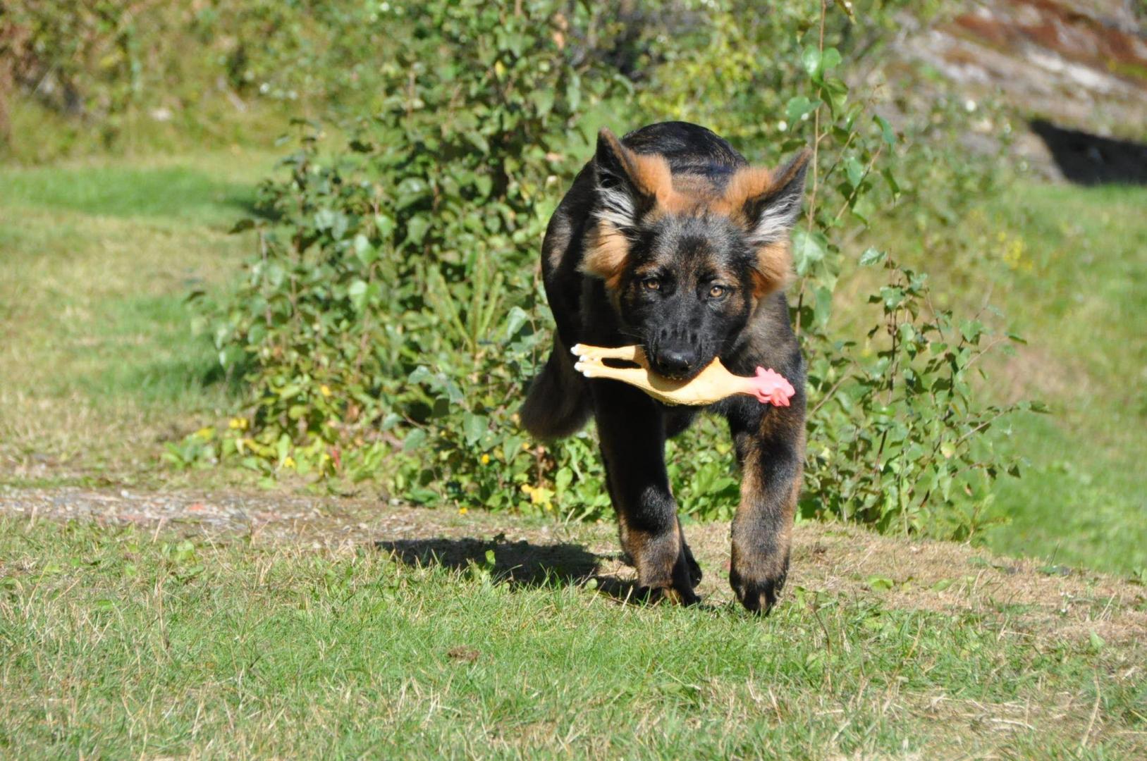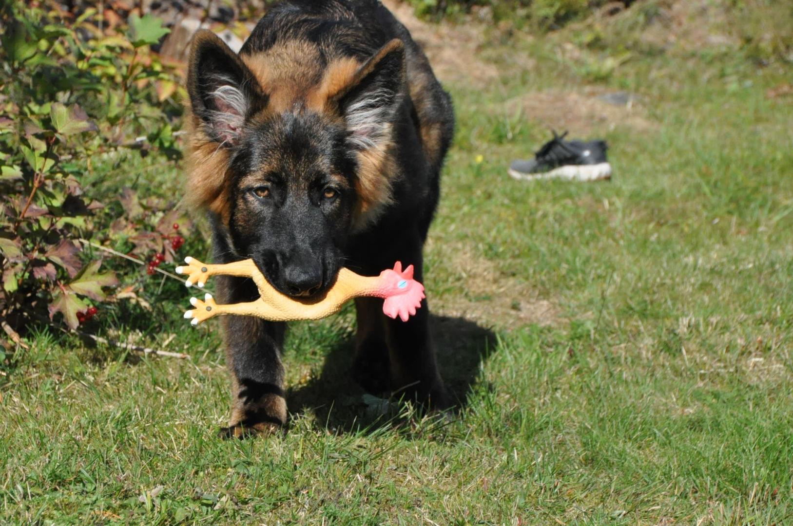 Dziewczyna która ma szczenię z tego samego miotu co ja (owczarek staroniemiecki) też się trochę martwi bo jej suczka nie szczeka... skamle, piszczy, jęczy ale szczekać nie chce, mimo iż ma do towarzystwa dorosłą sukę tej samej rasy, która często nadziera japę, to mała milczy jak zaklęta. Moja sucz szczeka bez problemu gdy coś ją zaniepokoi albo jak chce wymusić zabawę na drugim psie.