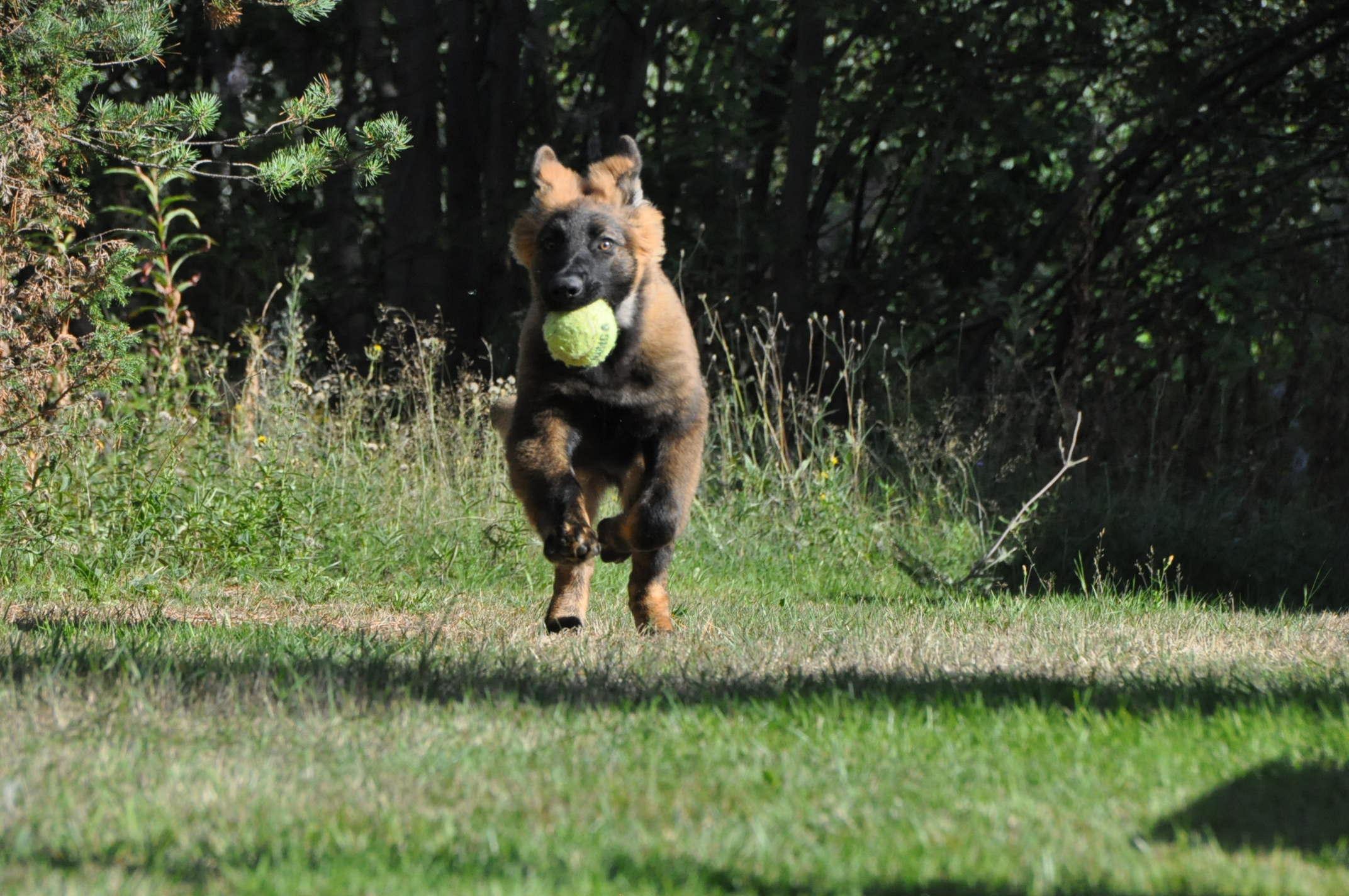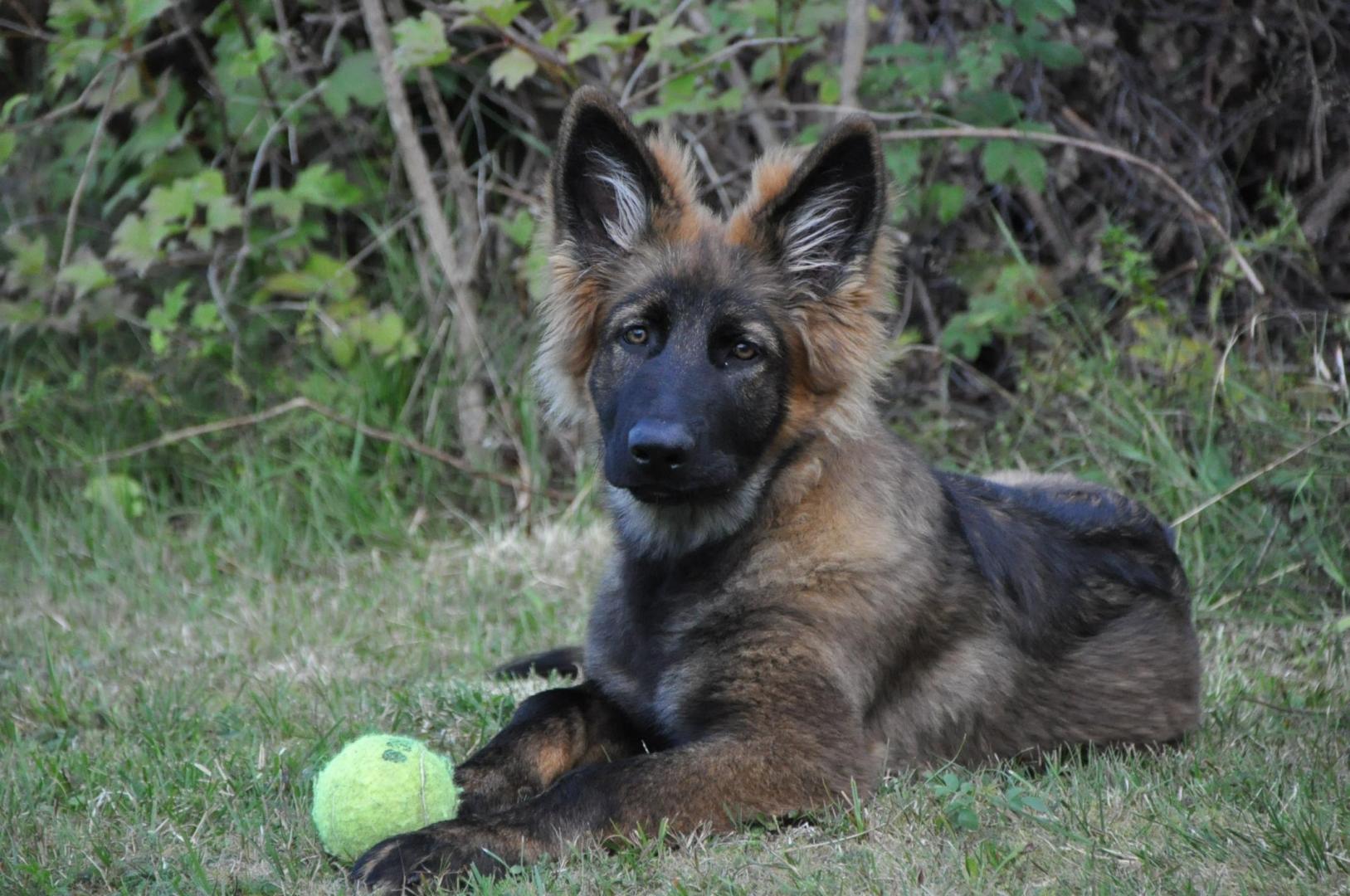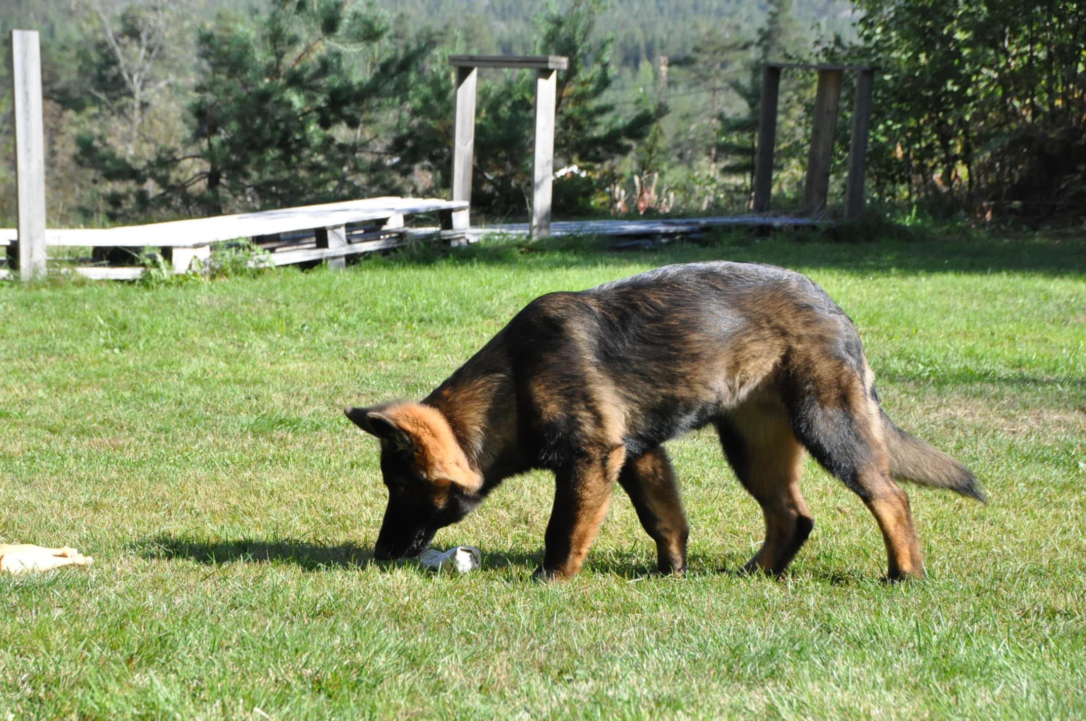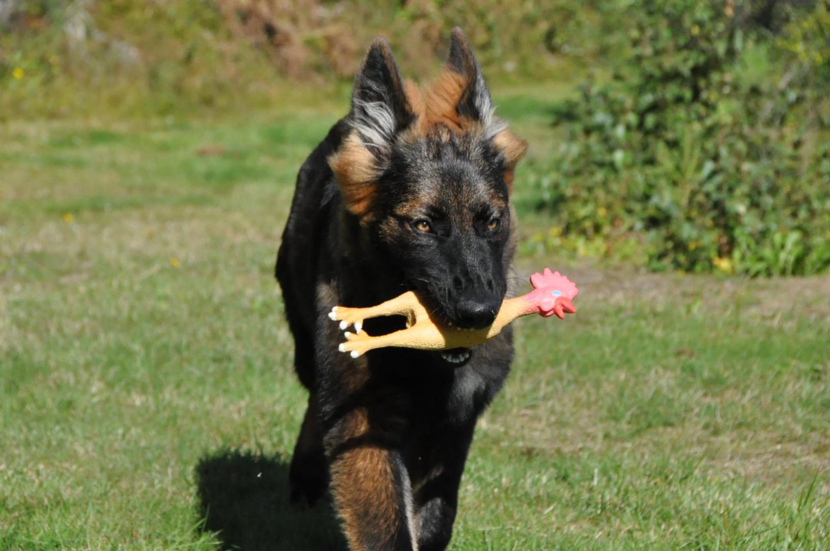 Dziewczyna która ma szczenię z tego samego miotu co ja (owczarek staroniemiecki) też się trochę martwi bo jej suczka nie szczeka... skamle, piszczy, jęczy ale szczekać nie chce, mimo iż ma do towarzystwa dorosłą sukę tej samej rasy, która często nadziera japę, to mała milczy jak zaklęta. Moja sucz szczeka bez problemu gdy coś ją zaniepokoi albo jak chce wymusić zabawę na drugim psie.
