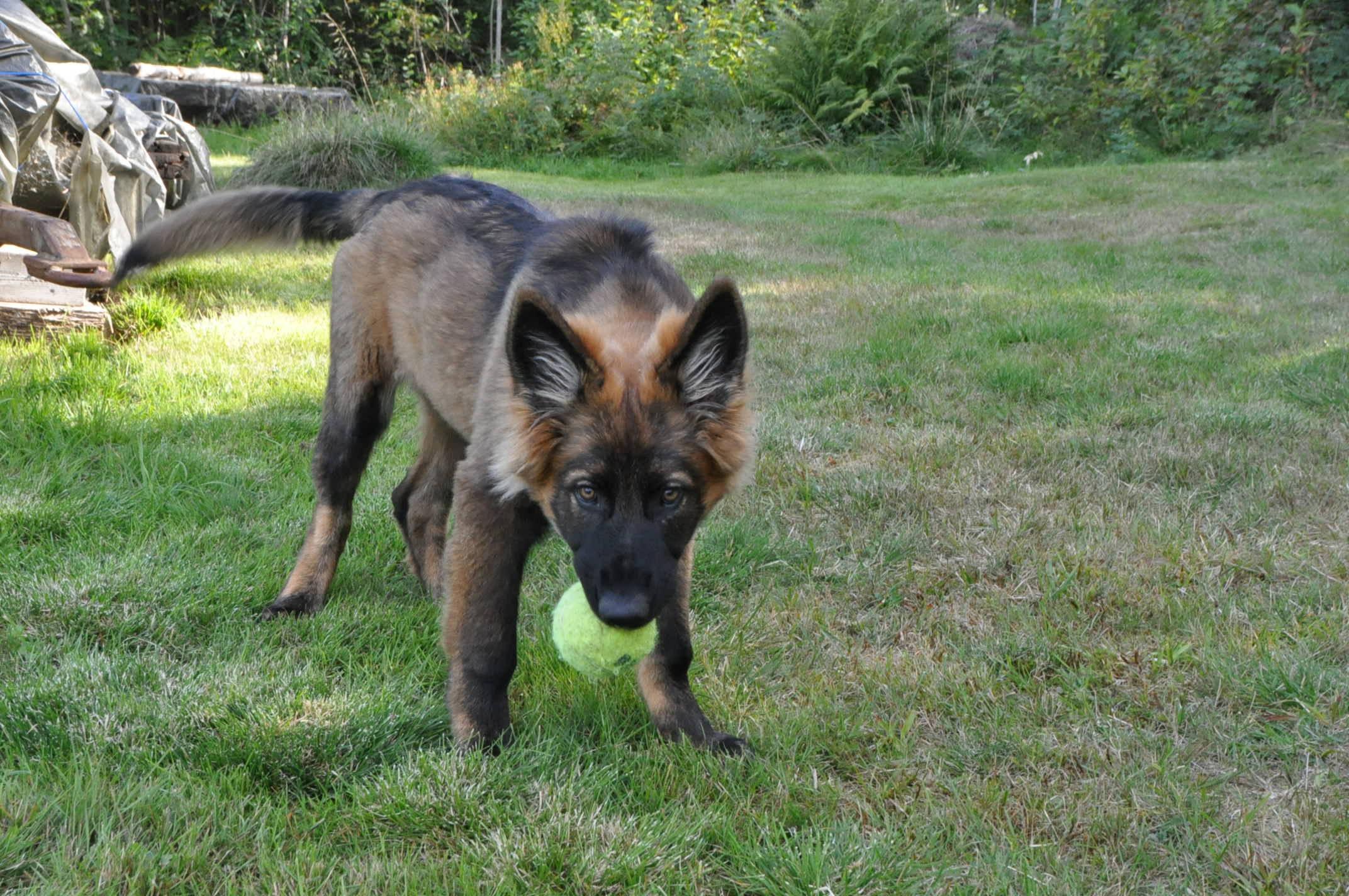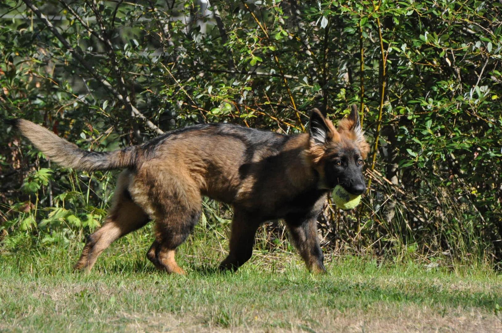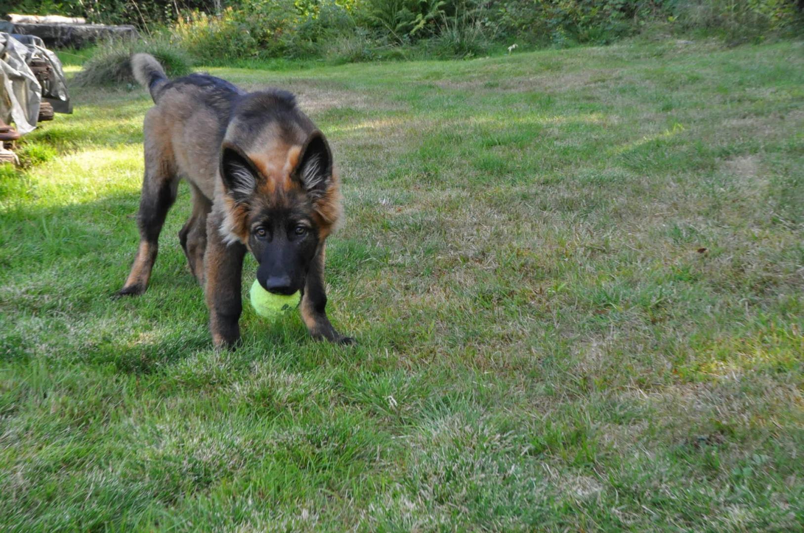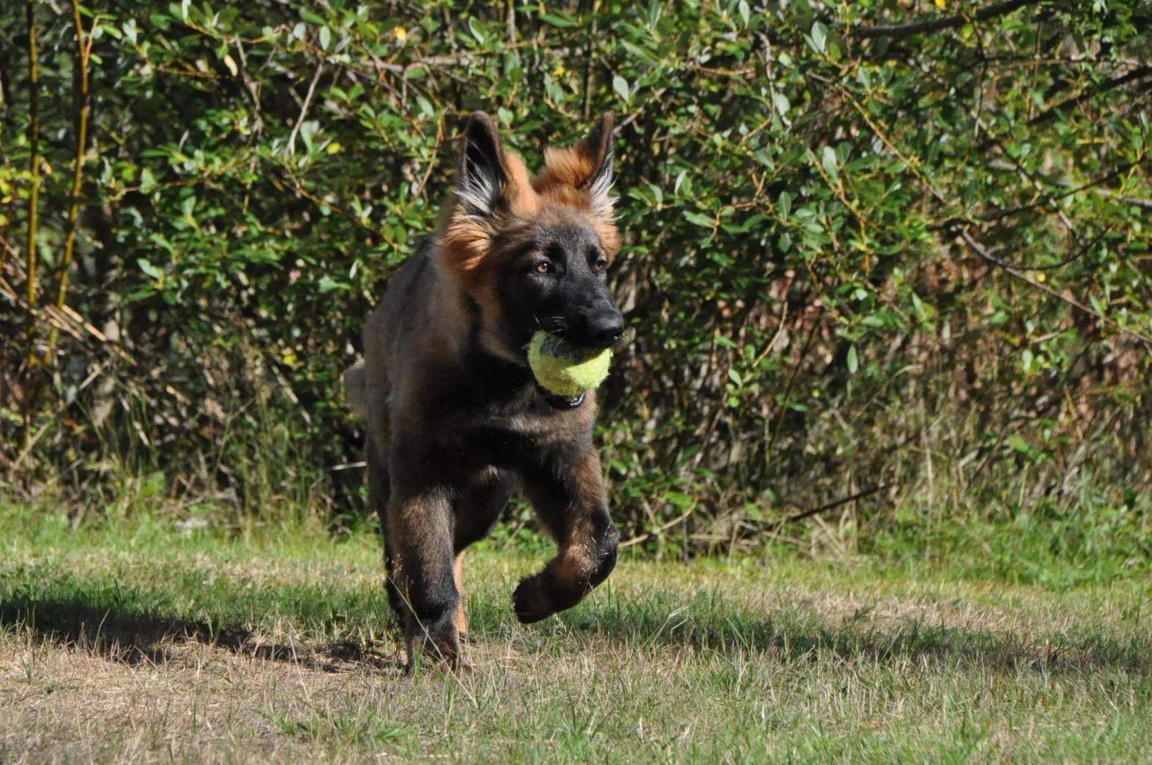 Dziewczyna która ma szczenię z tego samego miotu co ja (owczarek staroniemiecki) też się trochę martwi bo jej suczka nie szczeka... skamle, piszczy, jęczy ale szczekać nie chce, mimo iż ma do towarzystwa dorosłą sukę tej samej rasy, która często nadziera japę, to mała milczy jak zaklęta. Moja sucz szczeka bez problemu gdy coś ją zaniepokoi albo jak chce wymusić zabawę na drugim psie.