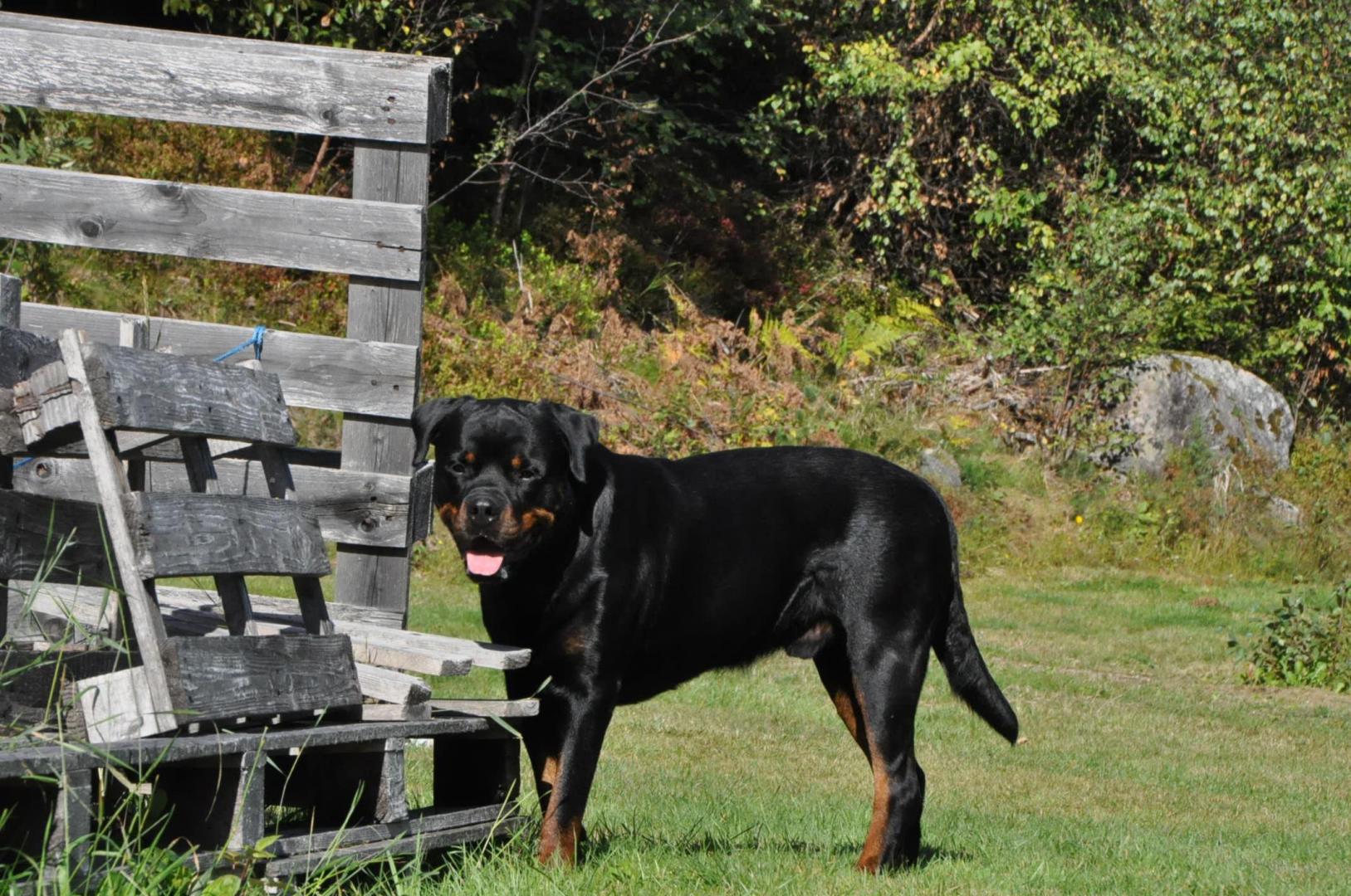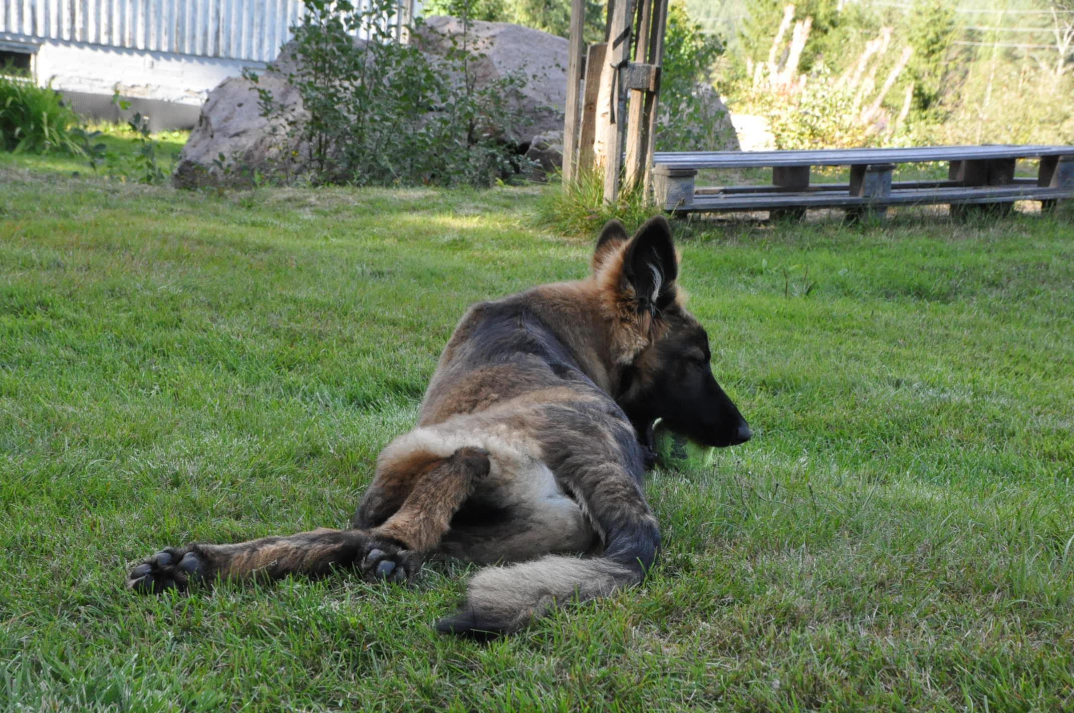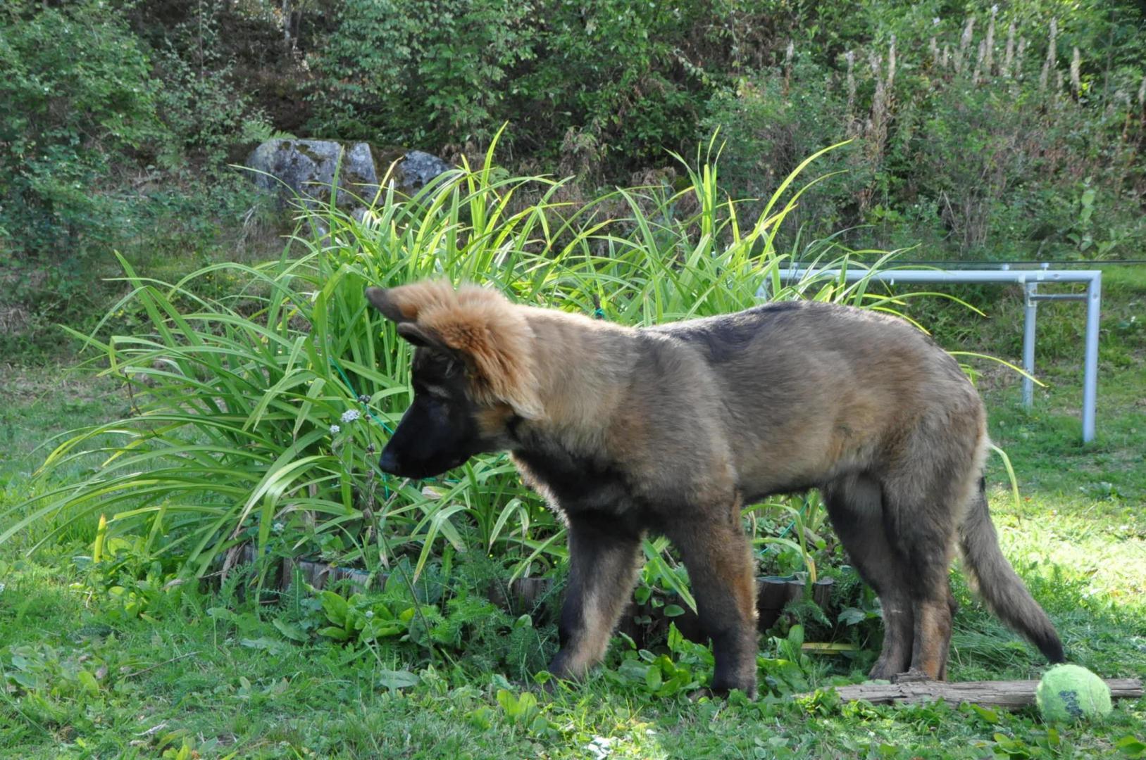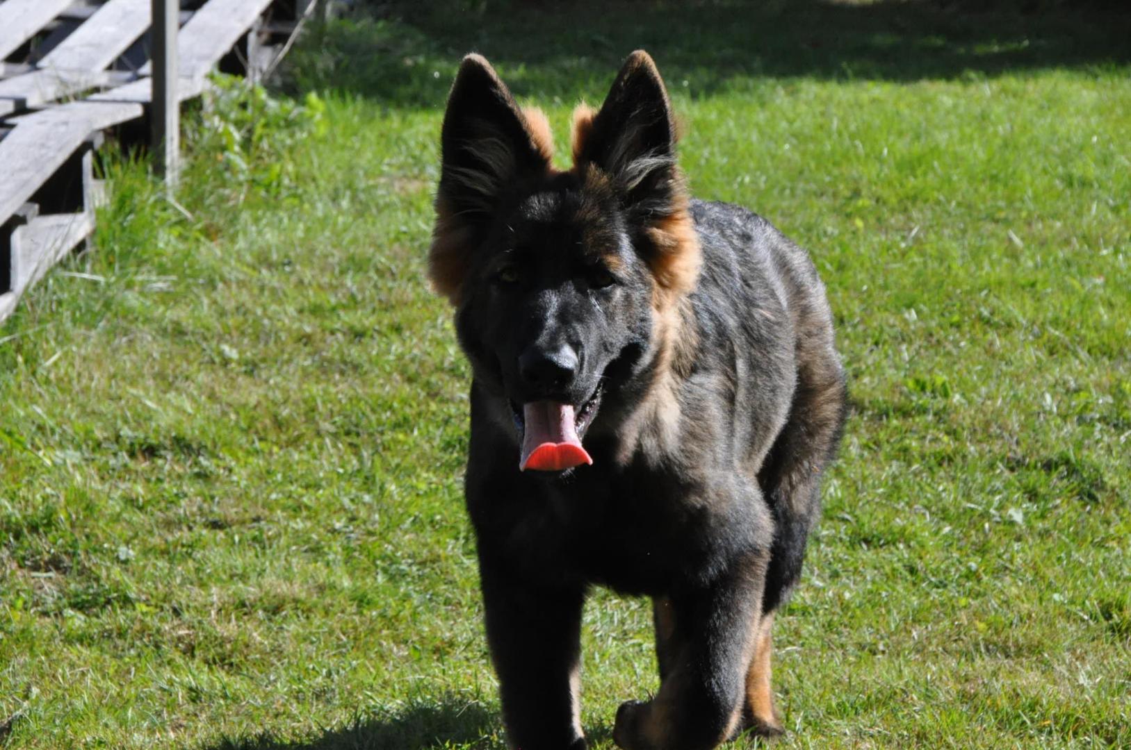 Quincy obecnie ma 60 cm wzrostu i 30,7 kg wagi. Za tydzień kończy 6 m-cy. Mierzyłam też Hirka i ma niecałe 63 cm w kłębie, więc Quincy jeszcze troszkę brakuje by go przerosnąć... a co będzie dalej zobaczymy. Aktualnie młoda wygląda tak: -