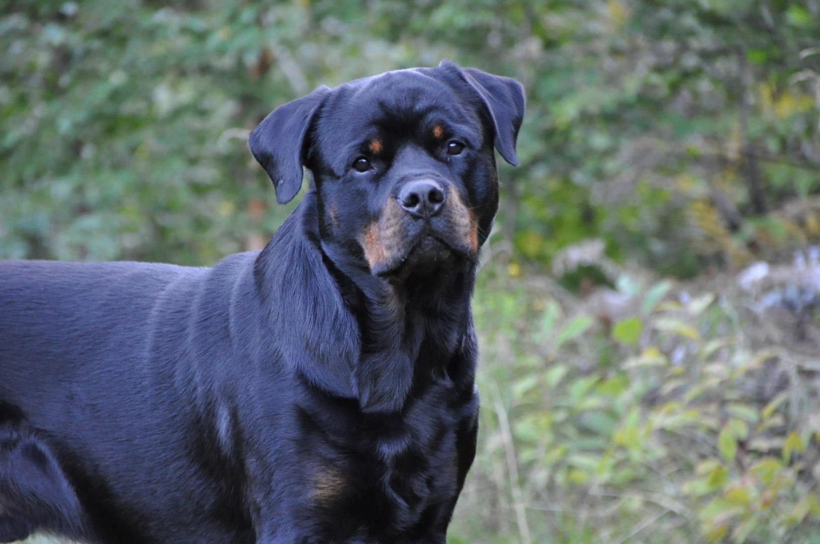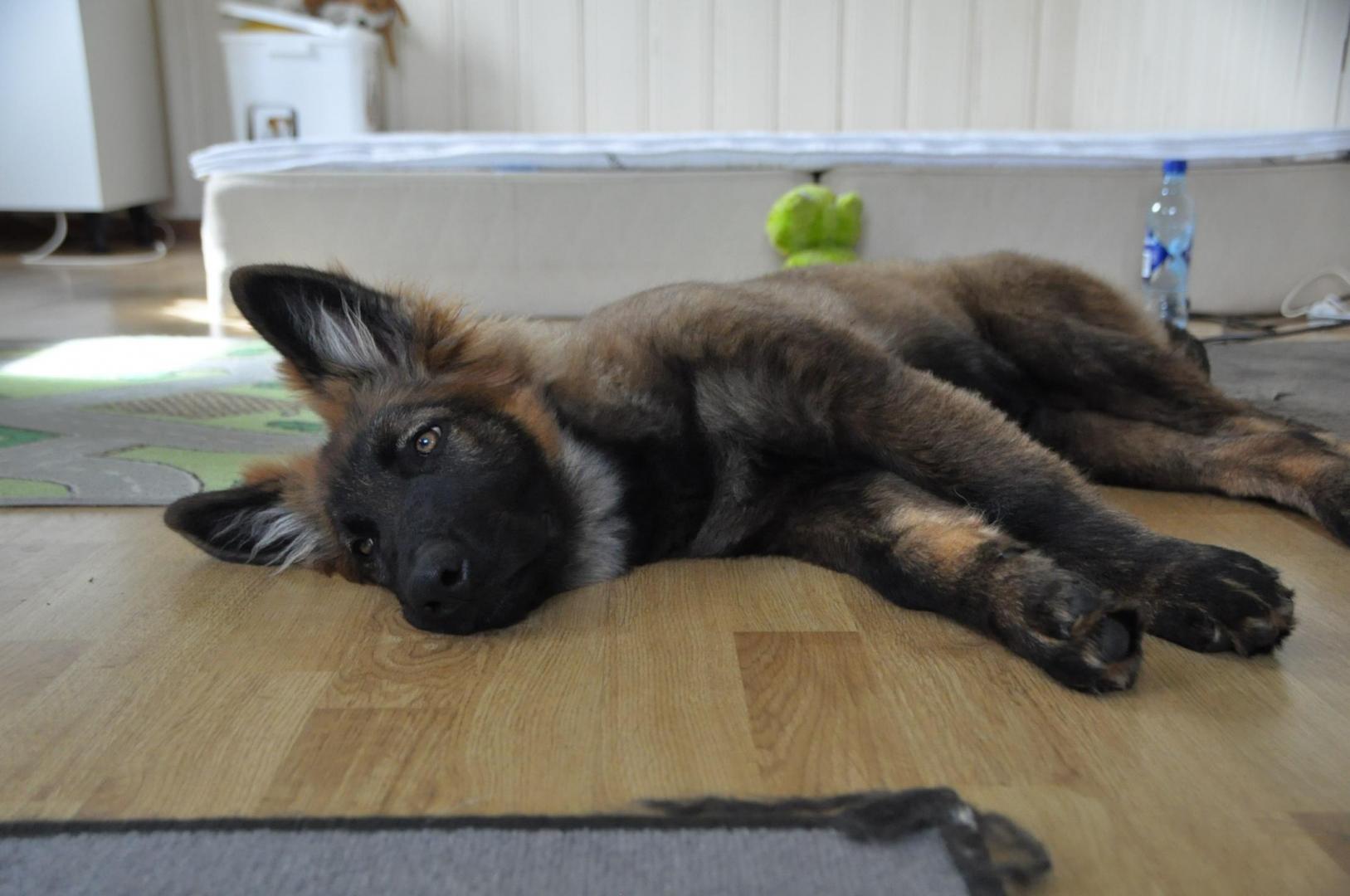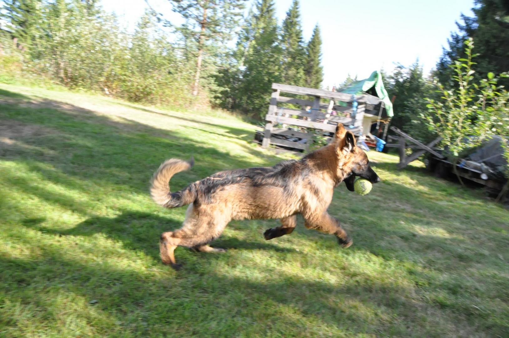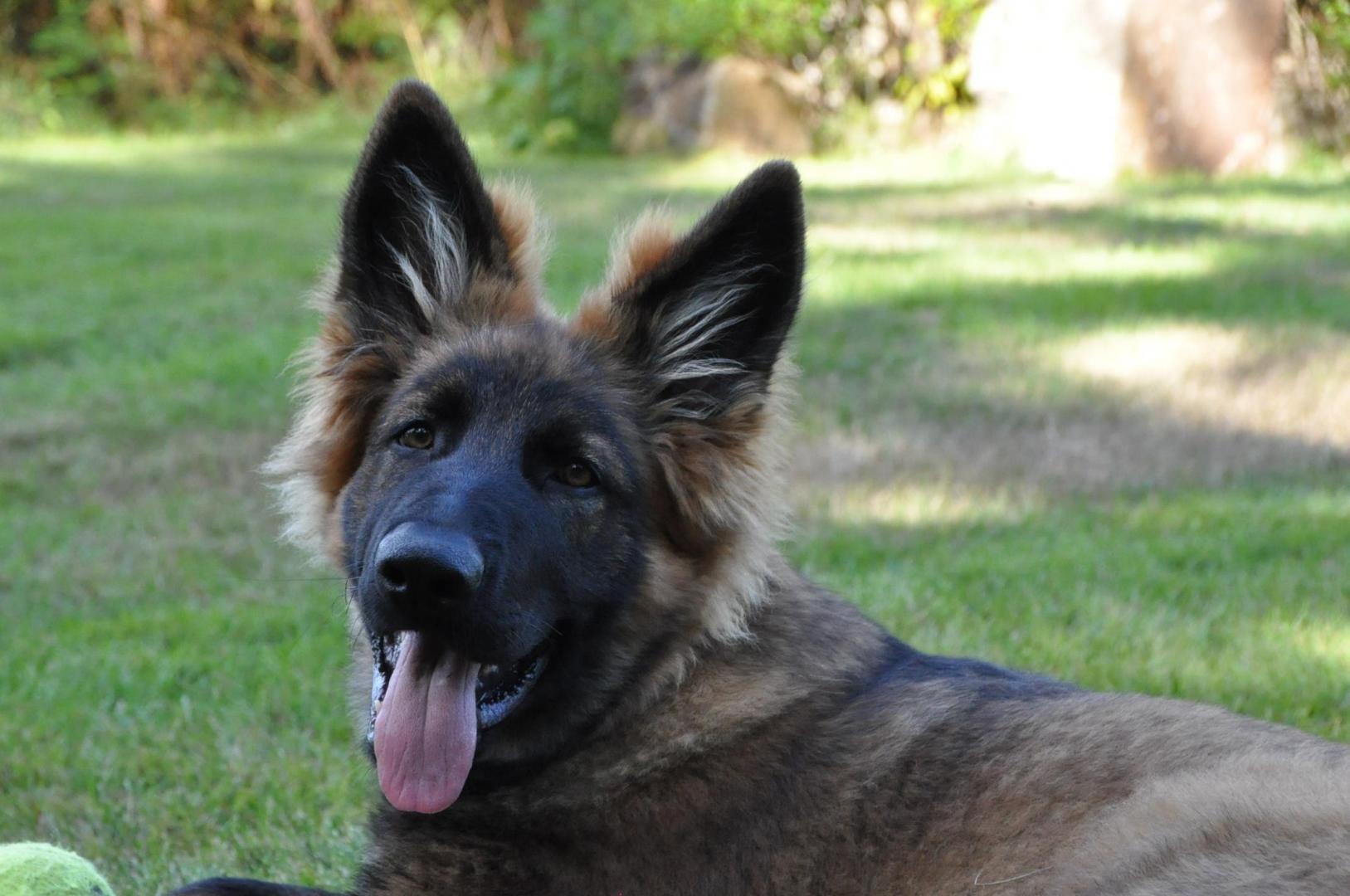 Quincy obecnie ma 60 cm wzrostu i 30,7 kg wagi. Za tydzień kończy 6 m-cy. Mierzyłam też Hirka i ma niecałe 63 cm w kłębie, więc Quincy jeszcze troszkę brakuje by go przerosnąć... a co będzie dalej zobaczymy. Aktualnie młoda wygląda tak: -