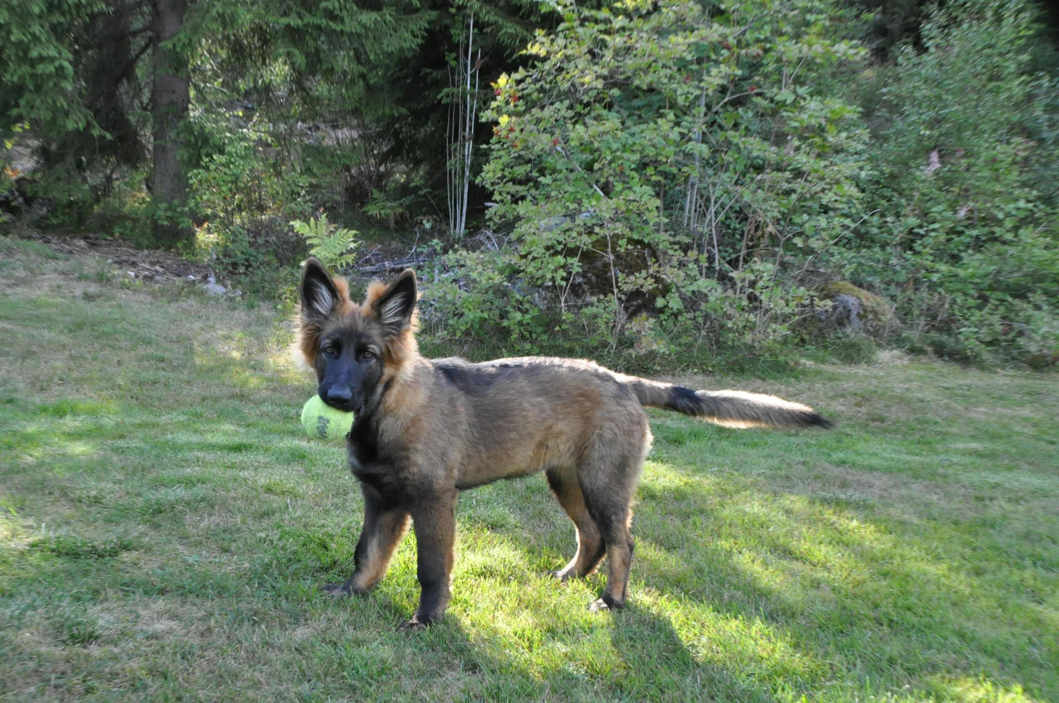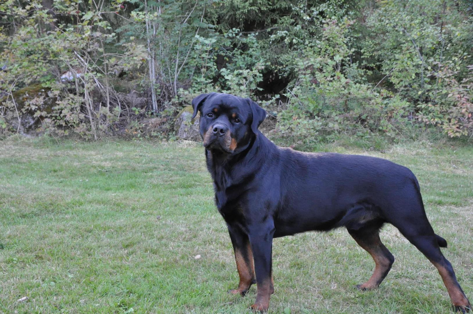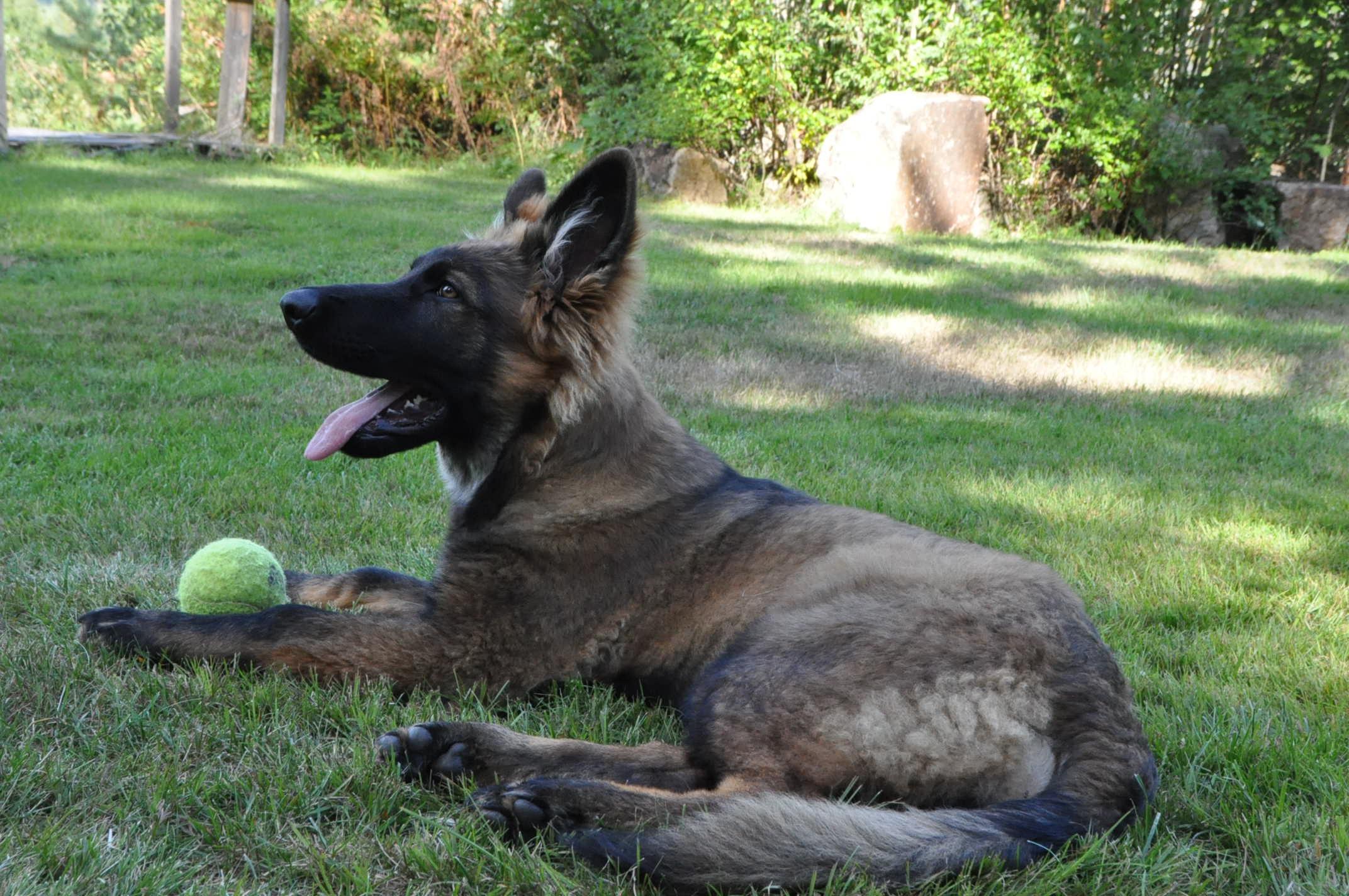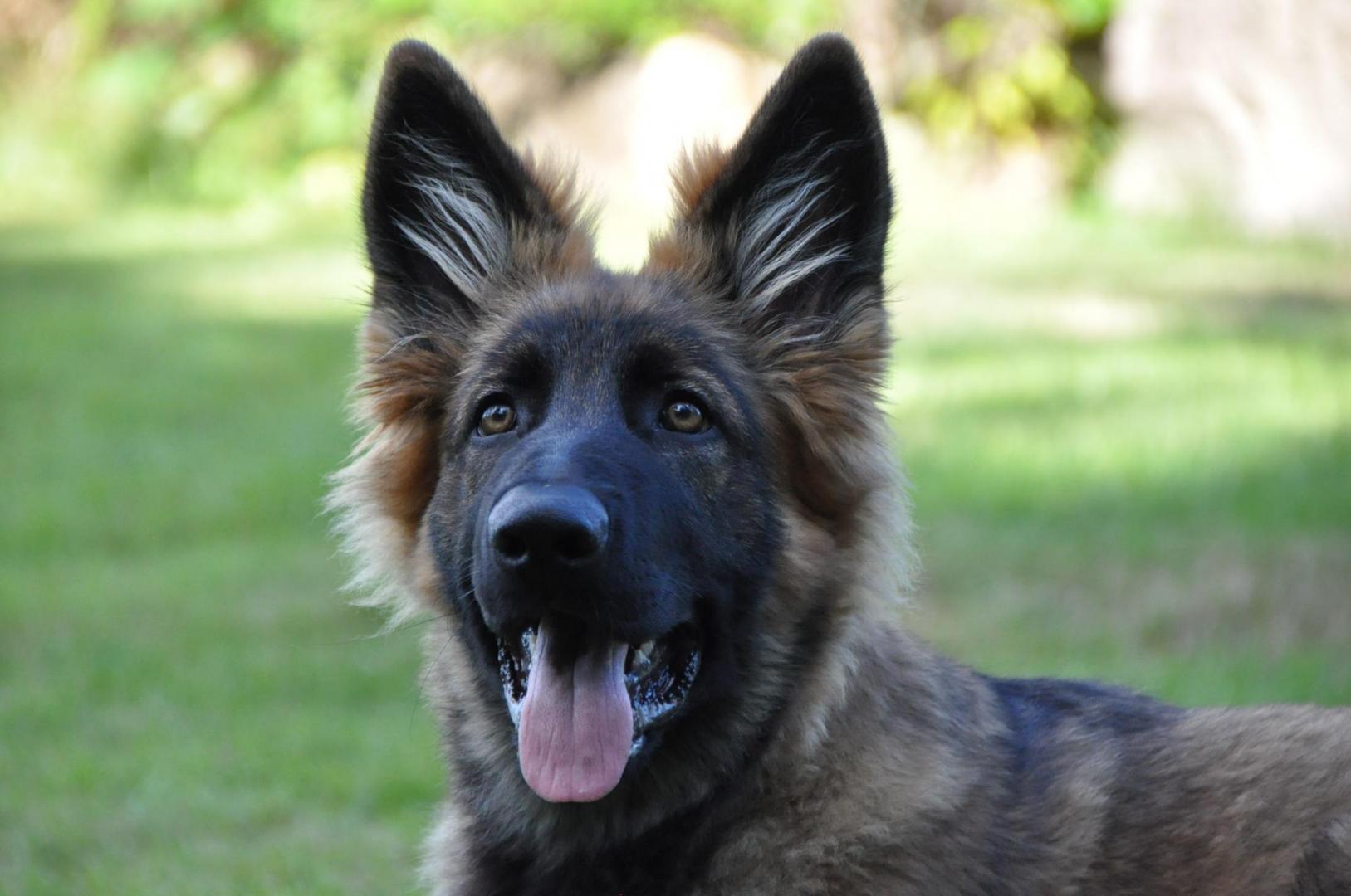 Quincy obecnie ma 60 cm wzrostu i 30,7 kg wagi. Za tydzień kończy 6 m-cy. Mierzyłam też Hirka i ma niecałe 63 cm w kłębie, więc Quincy jeszcze troszkę brakuje by go przerosnąć... a co będzie dalej zobaczymy. Aktualnie młoda wygląda tak: -