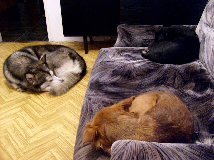 Wiadomo, będzie płacz i tęsknota. ale to, że psy żyją krócej jest faktem więc w jakiś sposób jestem z tym pogodzona... Nie byłam pogodzona ze śmiercią Nadii, która zginęła pod kołami samochodu... Ale to właśnie inna sytuacja.. Ale jeśli pies się starzeje na twoich oczach to po prostu masz kupę czasu żeby sie na to przygotować i z tym oswoić. Starsze psy się wyciszają i wygaszają na tyle stopniowo, że przyzwyczajamy sie na początku do mniejszej ich aktywności... starsze psy przecież mnóstwo czasu przesypiają... naprawdę jak podejść do tego na spokojnie to można sie z tym oswoić... bo i tak natury nie zmienimy, więc odejście psa jest nieuniknione.. wiadomo sztuka polega na tym by pies do końca żył godnie i by był otoczony troskliwą opieką. ale np nie popieram podtrzymywania przy życiu za wszelką cenę starszych psów, które np cierpią.. bo to zakrawa na chorą miłość... pies będąc naszym towarzyszem przez wiele lat uważam, że powinien odejść godnie bez bólu, który z czasem staje się jego nieodłącznym towarzyszem... Moja mama tak na siłę podtrzymywała życie mojego pierwszego samodzielnego psa Ramba zwanego Bamboszem. pies męczył sie z astmą sercowa trzy lata... w kocu tabletki przestały działać... więc pies męczył się dalej. Jego codzienność przez te ostatnie półtora roku wyglądała strasznie... pies się wiecznie krztusił i kaszlał ... kaszel i krztuszenie ustępowało tylko wtedy gdy udało mu się zasnąć.... wielokrotnie starałam się przekonać mamę, że lepiej będzie dla niego gdy go uśpimy bo to życie to wieczna męczarnia.... mama broniła się mówiąc, że dopóki sam chodzi, je i się załatwia to niech sobie żyje.... do tej pory nie mam pojęcia jak ona dawała radę słuchać tego charczenia kaszlu i krztuszenia .... mnie się serce krajało ... tak strasznie się męczył .... jakakolwiek aktywność wiązała się z tym jego kaszlem... i tak całymi dniami, tygodniami i miesiącami mama miała wizję, że albo pies uśnie i już sie nie obudzi albo odejdzie jak jej nie będzie w domu.... w kocu nie mogłam już znieść tych opowieści przez telefon, ze zaczął mieć problemy z chodzeniem i wypróżnianiem, że ten kaszel non-stop go męczy(od 3 lat!!) i nastraszyłam ją, że po pierwsze jak może temu naszemu ukochanemu psu taki koniec zgotować... że jak to umrze w samotności nie mając znikąd pomocy.... jak można psa zostawić na pastwę samotnego konania....że psia agonia może trwać i kilkadziesiąt minut... jeśli jest się jej świadkiem to wtedy płacz, lament, panika a pies kona w konwulsjach na naszych oczach.... to dopiero jest dramat! Potem mamie opisałam jak będzie wyglądało uśpienie, że po pierwsze towarzyszy mu spokój.. po drugie jest czas, żeby przytulic, pogłaskać, pożegnać się właśnie w tej ciszy, w spokoju... z szacunkiem i godnością... pies odchodzi spokojnie... Na szczęście zadziałało i mama jeszcze tego samego dnia wezwała weterynarza i w domu uśpił Bamboszka. Było to we wrześniu ubiegłego roku. Bambosz finalnie był z nami prawie 18 lat... wiem, piękny wiek, choć te ostatnie trzy lata nie wiem czy były tego życia warte.... jeszcze poki tabletki działały to miewał chwile bez kaszlu gdy nie spał... ale potem to istna gechenna.... tu Bamboszek z Maszką i Nadią w Klotyldowie w lipcu 2011 tu we wrześniu 2010 maj 2008 2007 , jeszcze mieszkał ze mną w Rybniku moje kochane 3 kłębuszki: Maszka, Nadia i Bambosz :) -