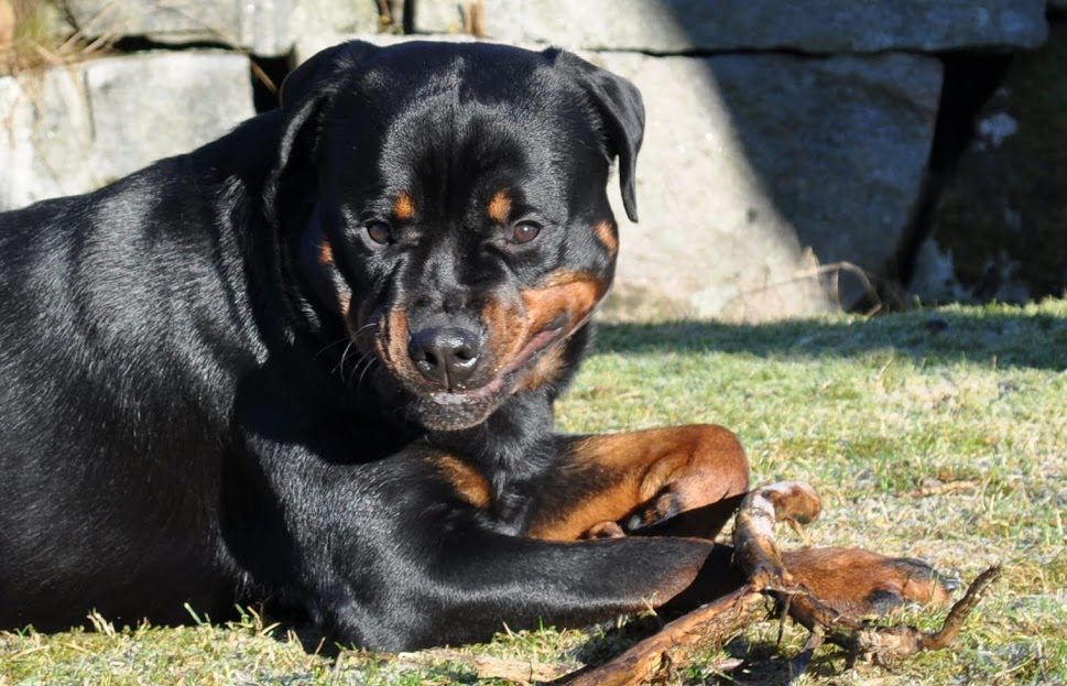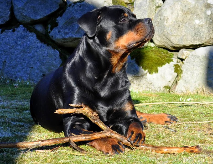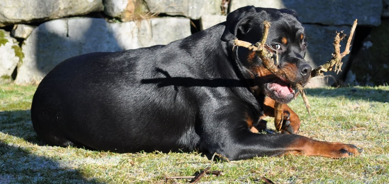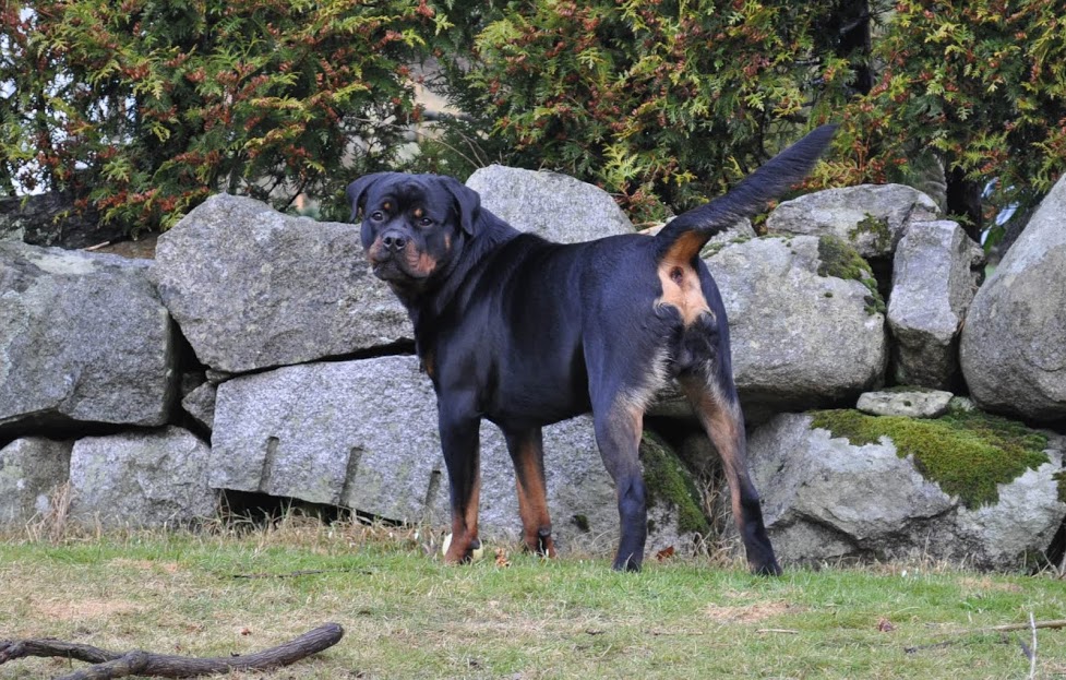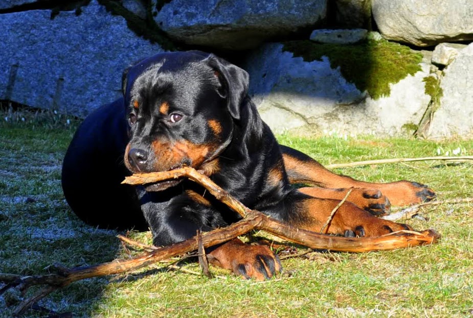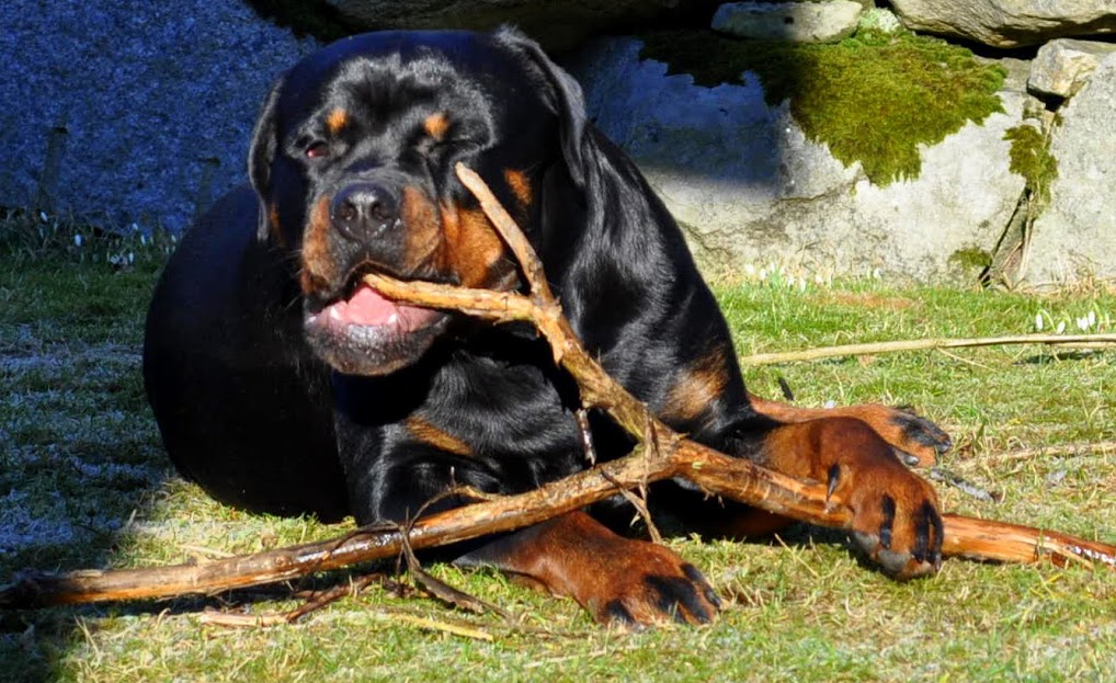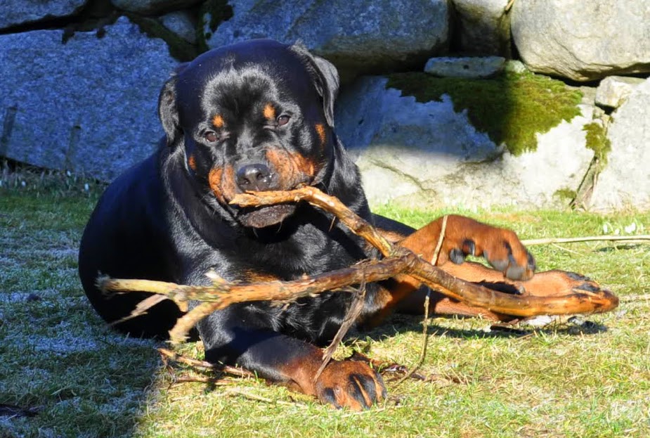 heh... dzięki :) On ma teraz 15 miesięcy, więc nadal jest w fazie rozwoju. Wiadomo nie jest to już tak dynamiczny rozwój jak pół roku temu ale jeszcze się zmienia i rozrasta. Rottki ostateczną sylwetkę osiągają w wieku ok 3 lat. kości długie rosną do ok 18 miesiąca.... najintensywniej rosną do roku, potem to już minimalne różnice ale coś tam jeszcze się wyciąga. Staramy się go nie przekarmiać, żeby i tak chorych stawów nie obciążać. Jak ma obrastać to niech obrasta mięśniami, nie tłuszczem. Wygląda myślę optymalnie. Nie ma przesady w żadną stronę. -