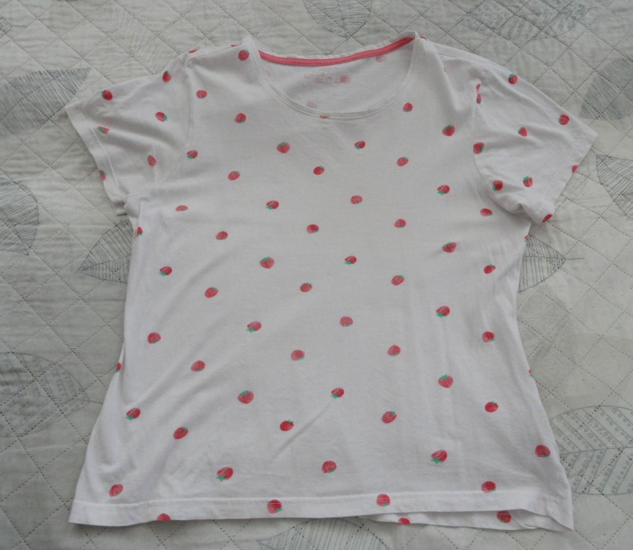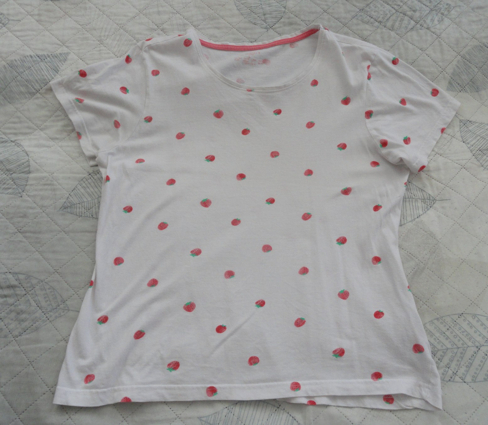 41. Torebka zapinana na suwak, w środku kieszonki Dł. 35 cm, szer. 40 cm CW 14 zł KT 16 zł 42. Krótkie spodenki dżinsowe Dł. 30 cm, w pasie 2 x 37 cm CW 6 zł KT 8 zł 43. Sukienka, boki dłuższe, dł. od pachy do dłuższych boków 72 cm, szer. między pachami 50 cm Materiał harmonijkowy, rozciągający się, rozmiar L CW 7 zł KT 9zł 44. Letni kombinezon bawełniany Dł. 126 cm (z dł. można skrócić), szer. między pachami 51 cm, rozmiar L CW 5 zł KT 7 zł 45. Bluzeczka bawełniana w truskawki Dł. 60 cm, szer. między pachami 51 cm, rozmiar L KT 5 zł Kupiła Jaaga