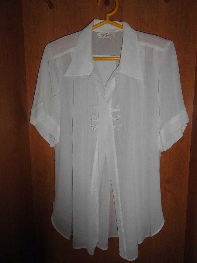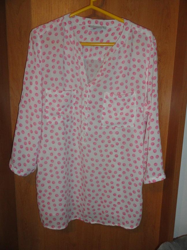 14 Bluzka z viskozy,kolor wyrazniejszy niż na zdjęciu Dł. 60cm szer.między pachami 58cm Rozmiar 44 CW 5zł 15 Podomka ,pasek,kieszenie,zpięcie na suwak Dł.102cm szer.miedzy pachami 66cm Rozmiar XL/na metce 3 x XL/,więc rozmiar duży CW 11zł 16 Bluzka bawełniana,z dł.rękawem Dł.57cm szer.między pachami 47cm Rozmiar M CW 8zł 16 17 Biały żakiecik ,rozpinany,u dołu fikuśne wiązanie,kieszenie,67% bawełna,33% poliester Dł.53cm szer.między pachami 55cm Rozmiar 42 CW 10zł 18 Biały żakiecik ,zapinany na jeden guzik,z poliestru Dł.52cm szer.między pachami 48cm Rozmiar 44 CW 8zł -