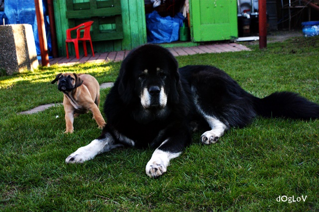 Dlatego ta rasa bo jest całkiem inna niż poczwary :P chcieliśmy molosa ale bardziej aktywnego niż tybetan , nam sie trafił egzemplarz bardzo aktywny , aż Qwendi wymięka .... My ja zostawiamy samą na dworze ale wlasnie to nie jest nigdy dlużej niż kilka minut bo za chwile jest pod drzwiami i piszczy :/ Ja bym chciała z nią iść na szkolenie ale jeszcze nie zdecydowalismy na 100% ;)