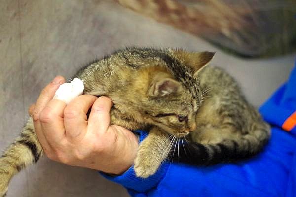 Dzisiaj jeszcze jedna bieda trafiła do lecznicy - kocurek znaleziony na Starym Mieście w Zamościu. Maluch ma ok.5 miesięcy, objawy kk, osłabiony. Dostał antybiotyk, leki wzmacniające i też odwieźliśmy do dt, który jakimś cudem wcześniej udało się znależć.