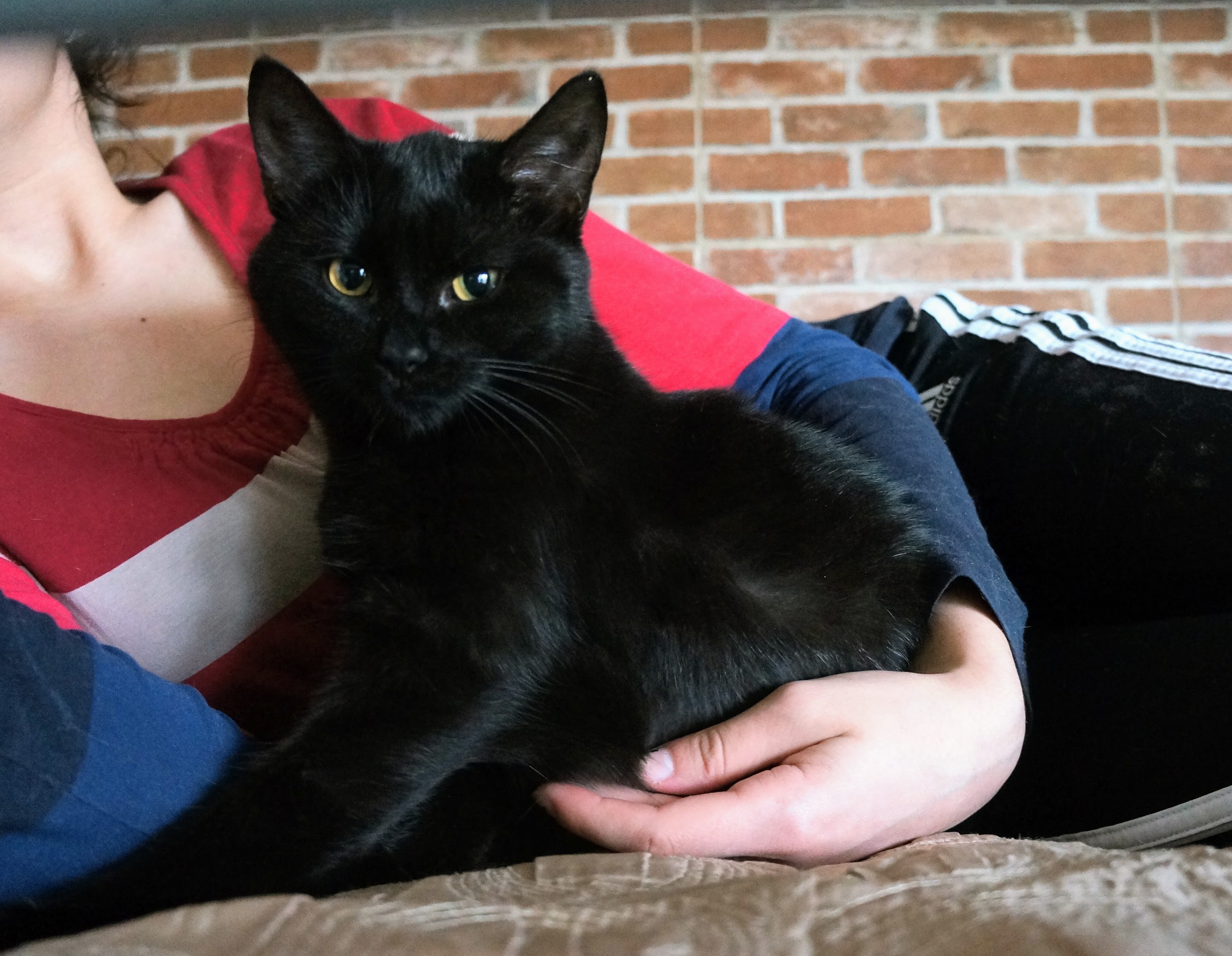 Właściwie to nie potrafię powiedzieć, co się stało. Ankieta była ładnie wypełniona, na wizycie obecna cała rodzina (rodzice + 9 letnia córka); przygotowani na przyjecie kota, zakupy zrobione, umówiony fachowiec do zamontowania siatki. Zadawali dużo pytać, słuchali, przejmowali się; Arabika wydawała się wyczekiwana, rodzina empatyczna. Parę dni po przyjeździe zwierzaka pani zadzwoniła do mnie i do wizytatorki, że nie nadaje się na opiekunkę kota, płakała. Rozmawiała też z Jagną. Nikt tej decyzji nie rozumie, siostra pani jest zaskoczona, córka bardzo przeżywa, bo wszyscy w rodzinie kocię polubili. Pani jednak decyzji nie zmieniła; napisała, że powinnam zrozumieć, bo jest uczciwa, nie wymyśla, że córka ma alergię, tylko pisze prawdę, że nie da rady zajmować się zwierzakiem. To dla mnie zupełnie nowe doświadczenie. Szkoda mi malutkiej, jest naprawdę rewelacyjna kotką, ale ma chyba pecha i to od początku. Bardzo proszę o pomoc w ogłaszaniu, u mnie Arabika ma OLX na Bielsko B., przyda się bardzo na Kraków i Katowice. Zaraz wrzucę wszystkie zdjęcia Arabiki, tylko trzeba je poprzycinać. OLX na Bielsko B. https://www.olx.pl/d/oferta/rewelacyjna-czarna-arabika-do-adopcji-CID103-IDRNndQ.html?bs=olx_pro_listing