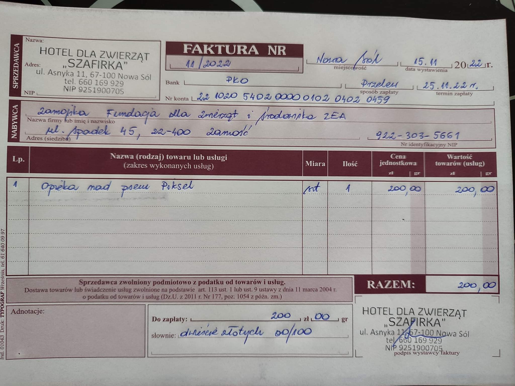 Zrobiłam też zbiórkę dla zamojskich staruszków, wystawiłam na dłuższy okres, będziemy cierpliwie zbierać, a uzyskane pieniądze podzielimy równo na wszystkie psy. Jeśli trzeba będzie zrobić zbiórkę oddzielnie dla Łatusia, to usunę go z tej zbiorowej zbiórki. Proszę o rozsyłanie linku znajomym, udostępnianie, bo to szansa na dodatkowe pieniądze. https://www.ratujemyzwierzaki.pl/en/zamojskiestaruszki Czy Bonus ma jakieś dodatkowe schorzenia, proszę o info. Może ktoś inny tytuł podsunie?