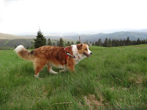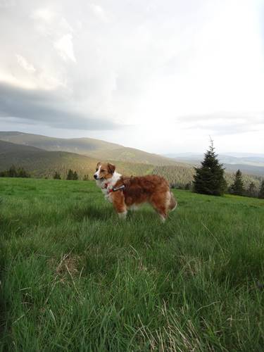 A tu Licho...uciekając od codziennych problemów wybraliśmy się 100 km od domu - na Hale Beskidu Żywieckiego...w dwa dni przeszliśmy nieco ponad 30 km...w sumie weszliśmy ok 900 metrów i tyle samo zeszli...Licho swoją pierwszą podróż pociągiem zaliczyła bardzo dobrze...trochę byłą niespokojna, ale dała radę! W górach oczywiście były też z nami Masza i Holi, więc Lichotka miała z kogo brać przykład :) a to już Lichotka na szlaku - widać było, że całodniowa wędrówka to coś, co przypadło jej do gustu ! (widać zdjęcia?) a tak wracaliśmy pociągiem wczoraj...chyba nam się piesy zmęczyły tak jak i my ;) Nie sądziłam, ze Hol;i kiedykolwiek tak zaśnie (Holi ma specyficzny stosunek do życia i nie lubi zazwyczaj spać przytulona do jakiegokolwiek zwierza - poza nami ;) )...a tu proszę, Lichotka robiła za poduszkę!