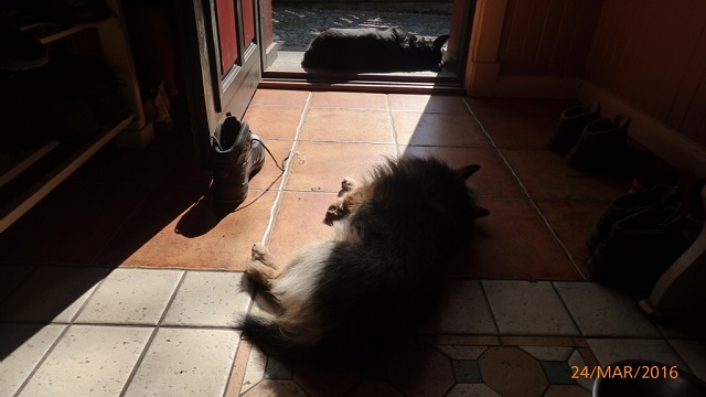 Jak będzie cieplej to może się przekona do dłuższych spacerów. Spodobało się zołzie domowe ciepełko:) Misiunia wariatka