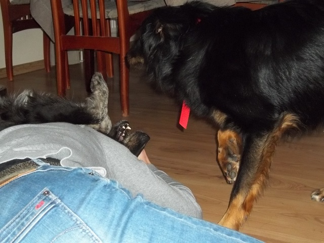 Sarunia z Figą:):) Cudny obrazek. Sarunia - żaba z merdającym ogonem:) Figunia z uszami jak zając:) Cudne -