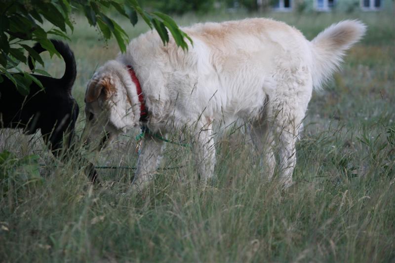 Wyszły trochę niewyraźne, bo za szybko biega, a ja miałam teleobiektyw :( Z milszych wiadomości: Dexterek miał zrobione badania krwi i próby wątrobowe - wyniki wzorowe, nawet pomimo Luminalu i Mizodinu. Essentiale daje radę :) Natomiast badania moczu pozostawiają trochę do życzenia i owczarek będzie miał robione USG prostaty i pęcherza moczowego. To tyle. Aaaaaa i jeszcze coś. WAŻY 44KG, a nie 100 :):):) -