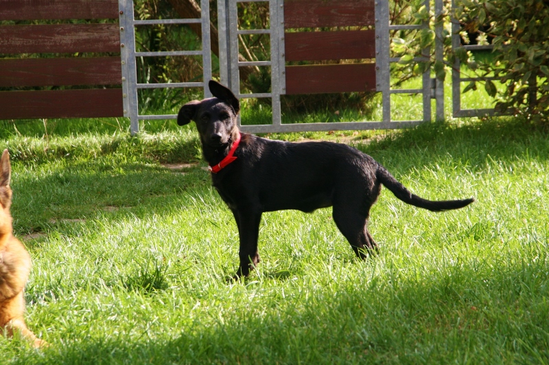 No i Karmel, który bał się niebieskiej smyczy i aparatu a na zdjęciach wyszedł jak model:) Kochany, uczy się że człowiek potrafi być dobry i pożyteczny:) Do psów nie sprawdzany a z Neli raz się kochają a raz kłócą...same życie. Ale z każdym dniem coraz bardziej się lubią. Tylko jest problem z karmieniem, bo on zjada wszystko z szybkością światła a Neli je jak francuzeczka....wybiera i przebiera. Na zdjęciach z Neli:)