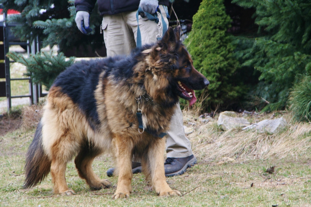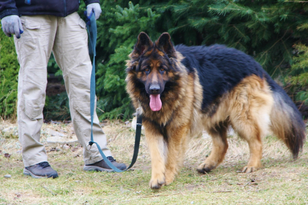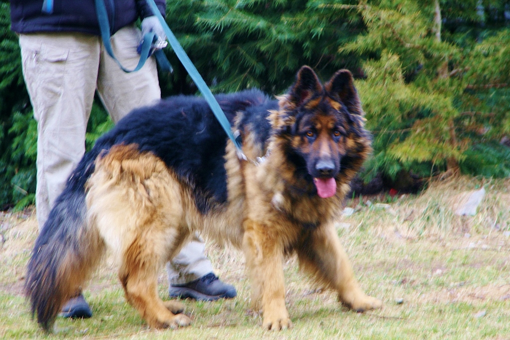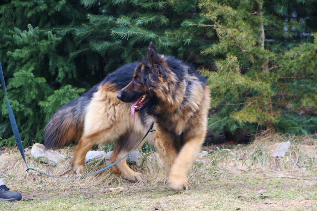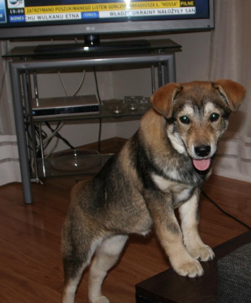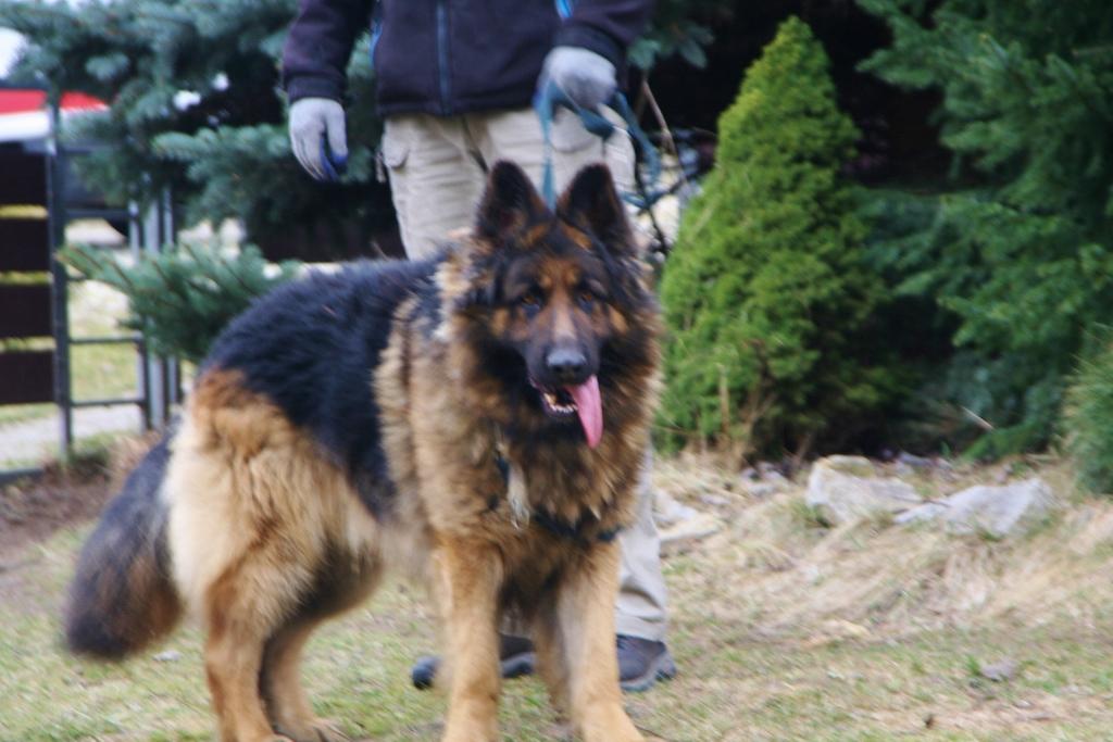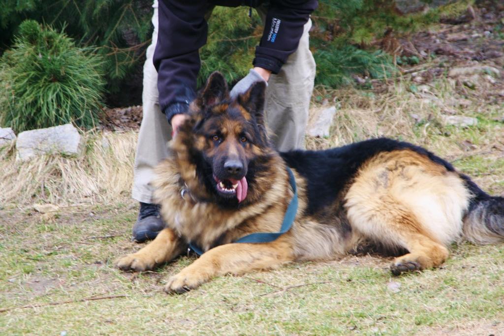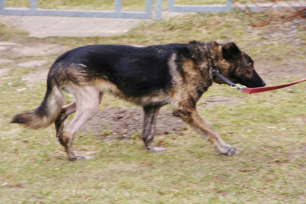 A to już nowy przystojniak. 3 letni Rambo. Jego charakter jest dla mnie zagadką. Na pewno nie nadaje się do małych dzieci. Raz bawi się jak szczeniaczek i jest kochany a drugi raz podwarkuje...np. jak mu się daje przysmaka lub zapina i odpina smycz. Ale też nigdy nikogo nie złapał za rękę a mógłby niejednokrotnie. Na smyczy chodzi dobrze i dziś na dłuższym spacerze był bardzo grzeczny. Reagował nawet na proste polecenia. Zobaczymy....co to za gagatek.