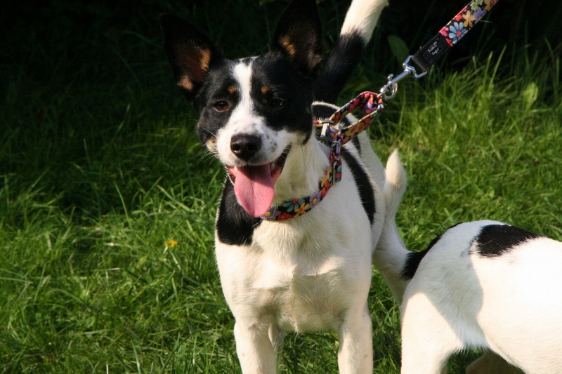 Tak, proszę zaglądajcie do blondynek:) To już Thera:) kiedyś smutna a teraz ...sami zobaczcie:) Jak widać Thera, to prawie gończy lub jakiś inny myśliwy. Do człowieka kochana przylepa, ale na spacerze jak się ją puści, to tylko trop się liczy. Człowieka zauważa i kocha jak jest na smyczy, ale bez smyczy inne rzeczy są ważniejsze. Z psami i suczkami się dogaduje, lecz nie lubi natrętów, nie lubi ustępować. Na zdjęciach z przyjacielem Sekretem:)