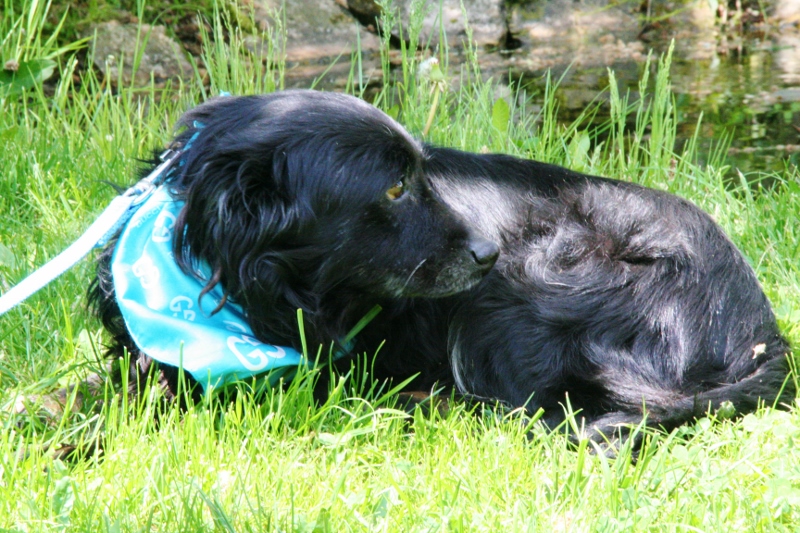 Dziś był przełomowy dzień dla dziadzia Hebana. Może w końcu zrozumie, że spacer to dobro i po spacerku jest znowu boks . Bo przecież dziadzio na spacerach udaje,że go nie ma :( chowa się do budy i trzęsie ze strachu. A dzisiaj został przeze mnie na ch..a wyjęty z budy i wzięty przed dom. Przesiedział kilkanaście minut bez ruchu trzęsąc się jak osika, potem został przeniesiony w inne miejsce i znowu strach. Następnie na rękach poszedł 4 kroki dalej i już siedział bez trzęsawki;) 5min . No i przełom... zrobił kilka kroków, aby schować się pod krzaczkiem;) To znowu poszedł na rękach w inne miejsce i padł:) następnie na rękach pobiegł do swojego ukochanego boksu, gdzie ogon chciał mu się urwać ze szczęścia. Tacy jesteśmy niedobrzy i psiaka męczymy spacerami ...tylko, że zamiast jego łap to moje ręce mnie bolały;) Ale myślę, że kilka takich tortur i Heban się wyluzuje na tyle,że sam będzie chciał spacerować.