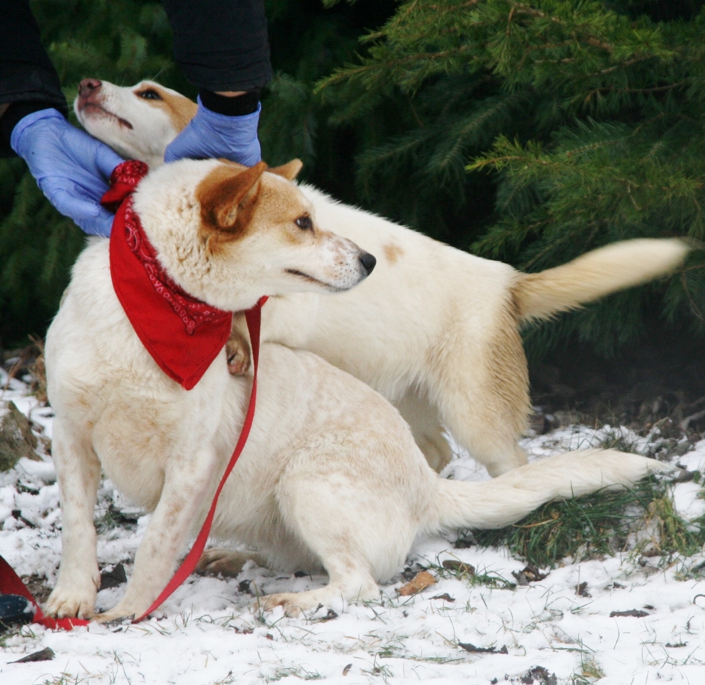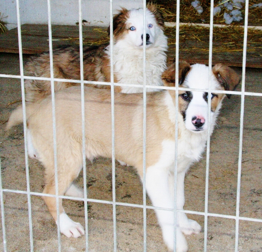 A to już przepiękne szczeniaki, ok 3-4 miesięczne. Trochę wystraszone, ale ciekawskie i pomału dające się przekupić. Dziw, że takie cudeńka ktoś wywalił w lesie:( Nie mogę się doczekać, aby im zrobić ładne zdjęcia. dziewczynka taka troszkę w typie owczarek australijski a brat jak środkowoazjatycki:)