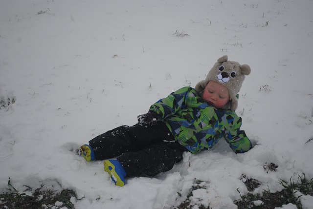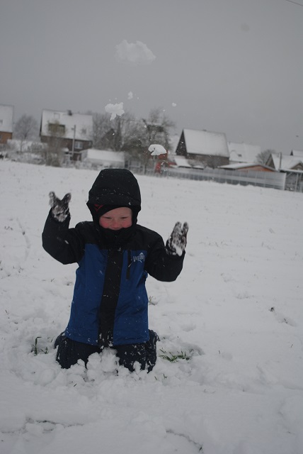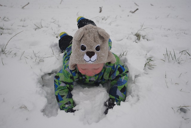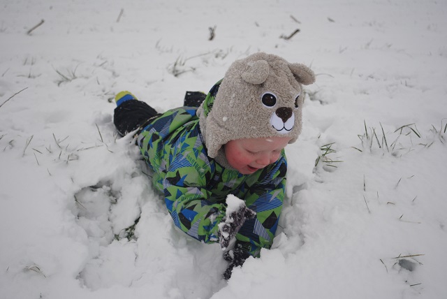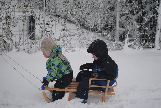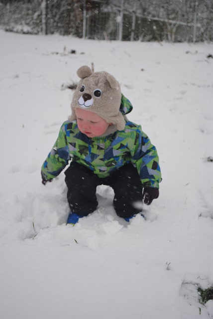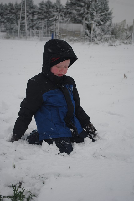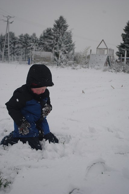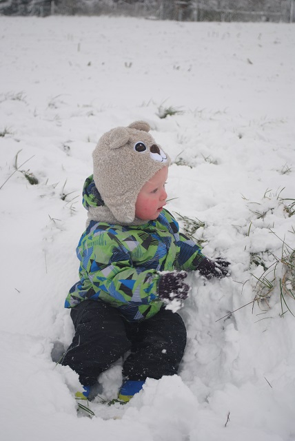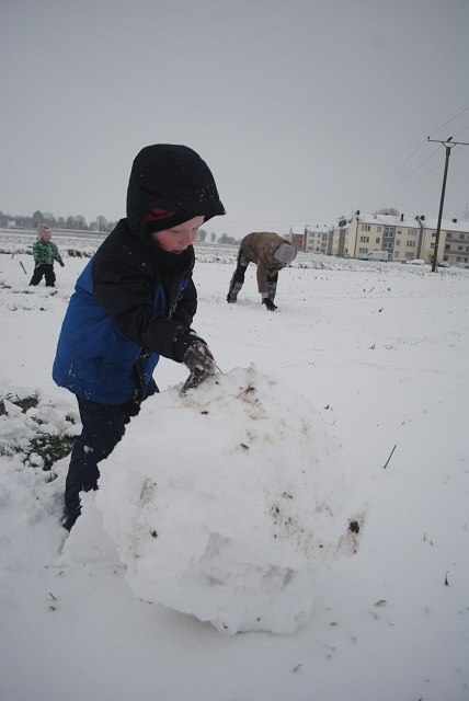 W piątek wieczorem zaczął padać śnieg. Liczyłam na to, że spadnie go tyle, żeby pójść następnego dnia z dziećmi na sanki :) Niestety nie spadło go wystarczająco :/ Na sanki było za mało. Dzieci trochę poszalały w ogrodzie, ulepiliśmy bałwana, a popołudniu po śniegu nie było już śladu :( Dziś przed południem śnieg znowu zaczął padać. Tym razem napadało go wystarczająco, żeby wyciągnąć ze strychu sanki :) Więc łapcie fotki, bo miałam ze sobą aparat :) -
