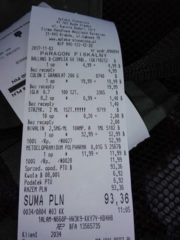 Aniu Skarpeta opłaciła wszystko,kolejną wizytę za około 10 dni też zapłacimy.Już nie chciałam mieszać Tobie przelać,Ty mnie ...niepotrzebne zamieszanie :) Tu nie ma co operować :( pielęgnacja,leki wspomagające jelita.Nivalin to na próbę,ma za zadanie wspomaganie chorób nerwowo-mięśniowych i rdzenia. Wej tej chwili nie ma po co konsultować gdziekolwiek,to nic nie da. Dt najlepiej niezapsiony,jak uda się ruszyć jelita byłoby normalniej,odsikiwać koniecznie !żeby nie uszkodzić nerek i nie ma problemu z kropelkowaniem a to już sporo mniej roboty. Jeszcze myślę nad elekrostymulacją ,pogadam ze znajomą fizykoterapeutką.