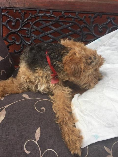 Ja też tak myślę,że los się do Atilki bardzo uśmiechną i teraz do pełni szczęścia brakuje tylko udanej operacji i powrotu do zdrowia.Kciuki Elu będą bardzo potrzebne i bardzo za nie dziękuję,ponieważ to jednak nie zwykły zabieg,a operacja.Jeszcze pewnie termin nie ustalony bo nie mam wiadomości od od p.Wandy.Teraz jest sezon urlopowy i mogą być jakieś przesunięcia w czasie. Wczorajsze zdjęcie Atilki po kąpieli :)