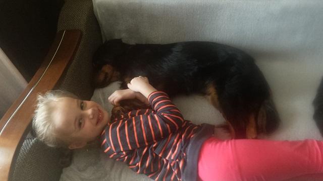Izuniu,rodzina robi co może, ale Kolia na nic nie reaguje....Może też dlatego,że nie należy do łakomczuchów trudno ją czymś przekupić.Ten świat po za mieszkaniem jest dla niej tak obcy i przerażający,że strach i panika bierze górę nad wszystkim :( Starają się ją wyprowadzać o spokojniejszych godzinach w ruchu i z dala od ulicy, ale nie sposób uniknąć zupełnie auta, ludzi czy też różnych odgłosów.Zobaczymy co przyniosą kolejne dni.Gdybym wiedziała,że tak reaguje na ulicę, to na pewno nie trafiła by do takiego domu, bo w sumie ona nie jest gotowa do adopcji.Nikt jednak tego nie wiedział i jest jak jest.Może nastąpi jakiś przełom i oby tak było.... W domu jest przekochana i dzisiaj już wywalała się brzusiem do góry,pozwalając się po nim głaskać i pod paszkami.Widać było,że bardzo to lubi i czuje się już odprężona i ufna.Podchodzi po głaski i ciekawa jest co każdy z domowników robi.Czasami też pobawi się z Amikiem.