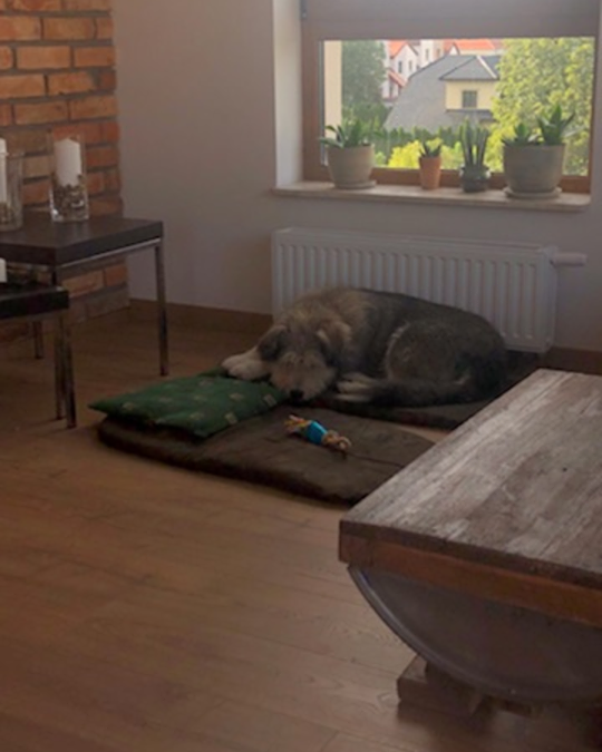 Dziekujemy za wiesci i tak piekne zdjecia. Kapselek domowy :) cudnie sie prezentuje. Stolik kawowy i mi przypadl do gustu, jest naprawde swietny, mam nadzieje ze bardzo nie ucierpial. Wiem ze to znaczenie potrafi byc uciazliwe nawet przy malych pieskach ale naprawe jutro juz powinno byc lepiej a nawet duzo lepiej, on tylko potrzebuje zrozumiec ze jest u siebie. Jestem i tak pozytywnie zaskoczona bo dobrze sobie radzi. Nic nie piszecie np o blokadzie przy klatce, windzie, schodach- tzn ze sam wszedl? Legowisko tez ma eleganckie, wyglada jakby wlasnie takie mialo byc :) Ciesze sie ogromnie ze tu jestescie i ze Kapsel tak dobrze trafil. Mam nadzieje ze bedzie mu sie dobrze spalo. ps. w sumie dobrze ze na lozko jednak nie wskakuje ;) niech ma jakies "nie" - to tez potrzebne ;)