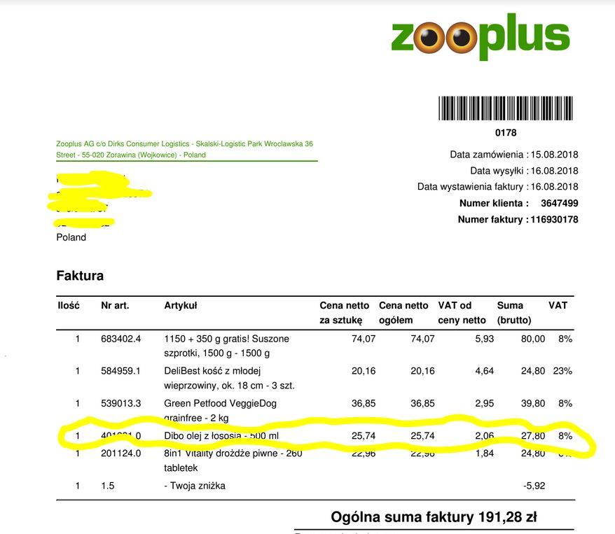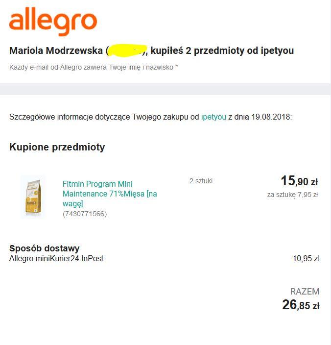 14. Na konto Frezji wpłynęły deklaracje od: 60zł-teresaa118/24.08.2018/stała IX + bonus 20zł -Alicja Mizera /24.08.2018/stała VIII Bardzo pięknie dziękuję <3. Jednocześnie zrobiłam przelew za hotelik za VIII. Dodatkowo dla Frezji została zakupiona próbka (1kg) karmy Fitmin Mini Maintenance oraz pół litra oleju z łososia. Samej karmy firmin panna jeść nie chce ale pokropionej olejem z łososia już tak. Czy trend nadal się będzie utrzymywał, zobaczymy.