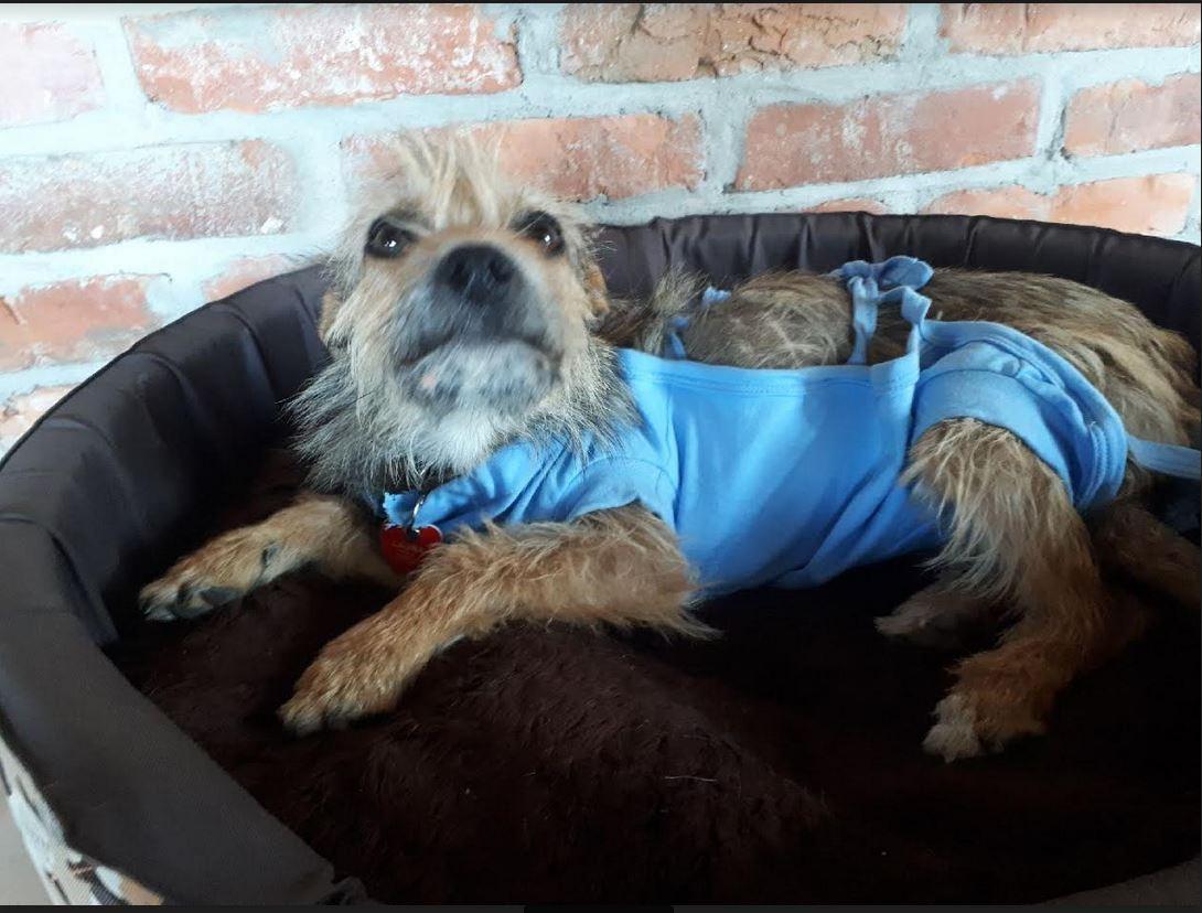 Wszystko jest dobrze, już po sterylce, Roxi czuje się dobrze. Jedynie obrażona jest bardzo na niebieski fartuszek, najwidoczniej liczyła na różowy :). Przy okazji Roxi została zaczipowana. -