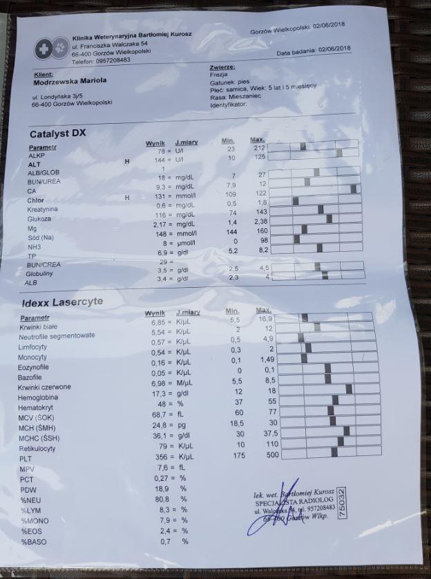 125zł -wizyta u weta + koszt badan krwi